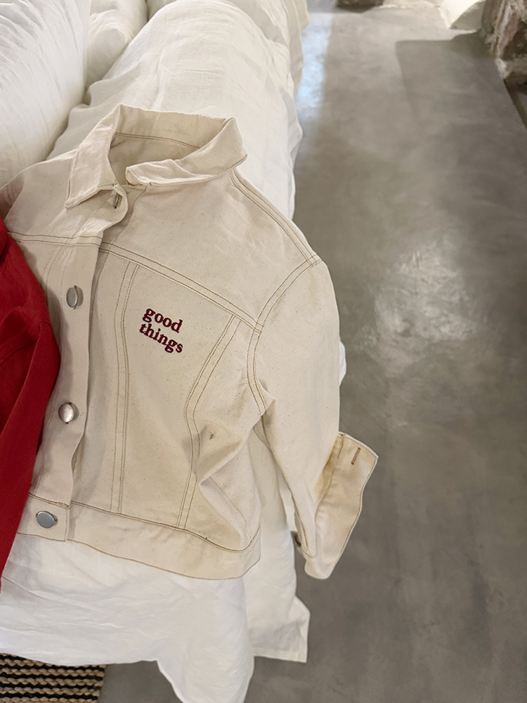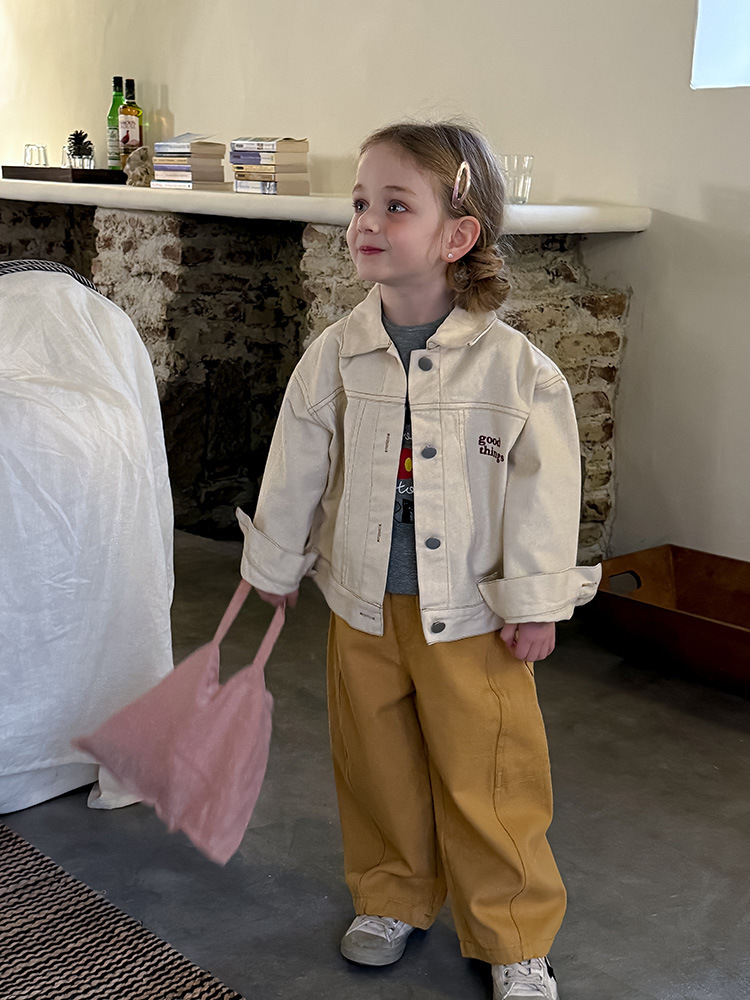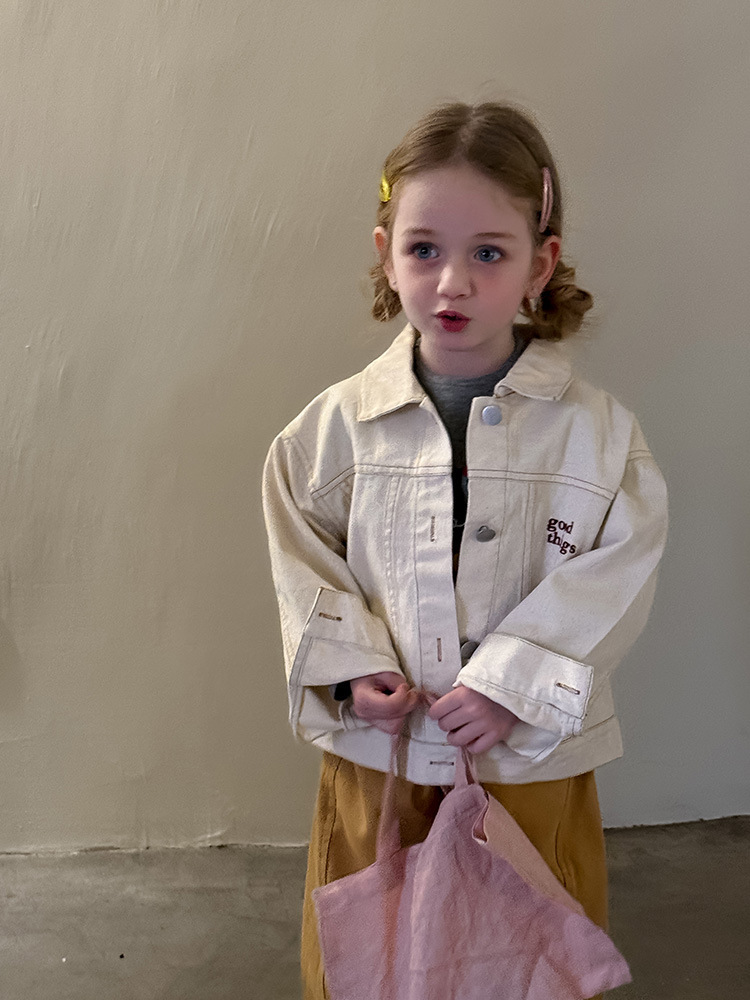 어린이 성향 편지 코트 2025 봄과 가을 데님 자수 편지 싱글 가슴 재킷 코트 긴 소매스토어 가기