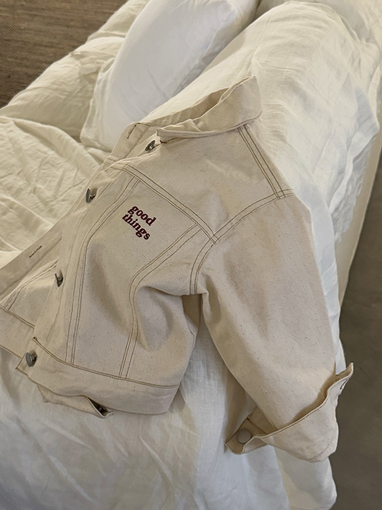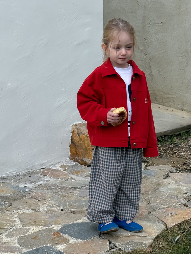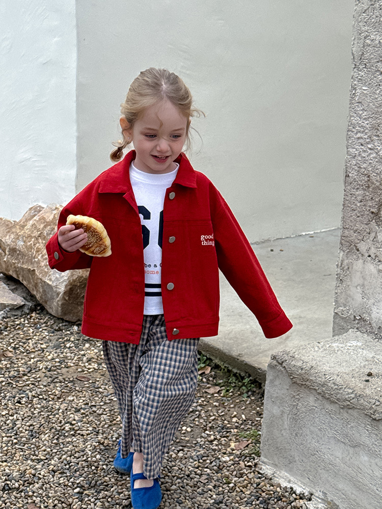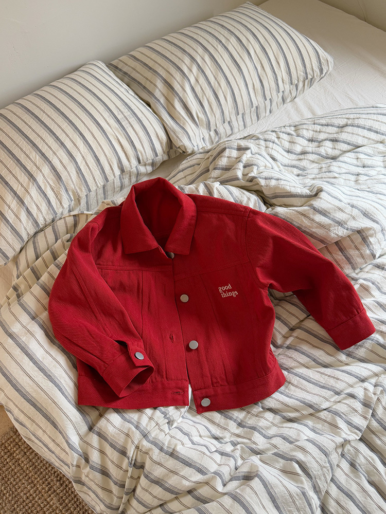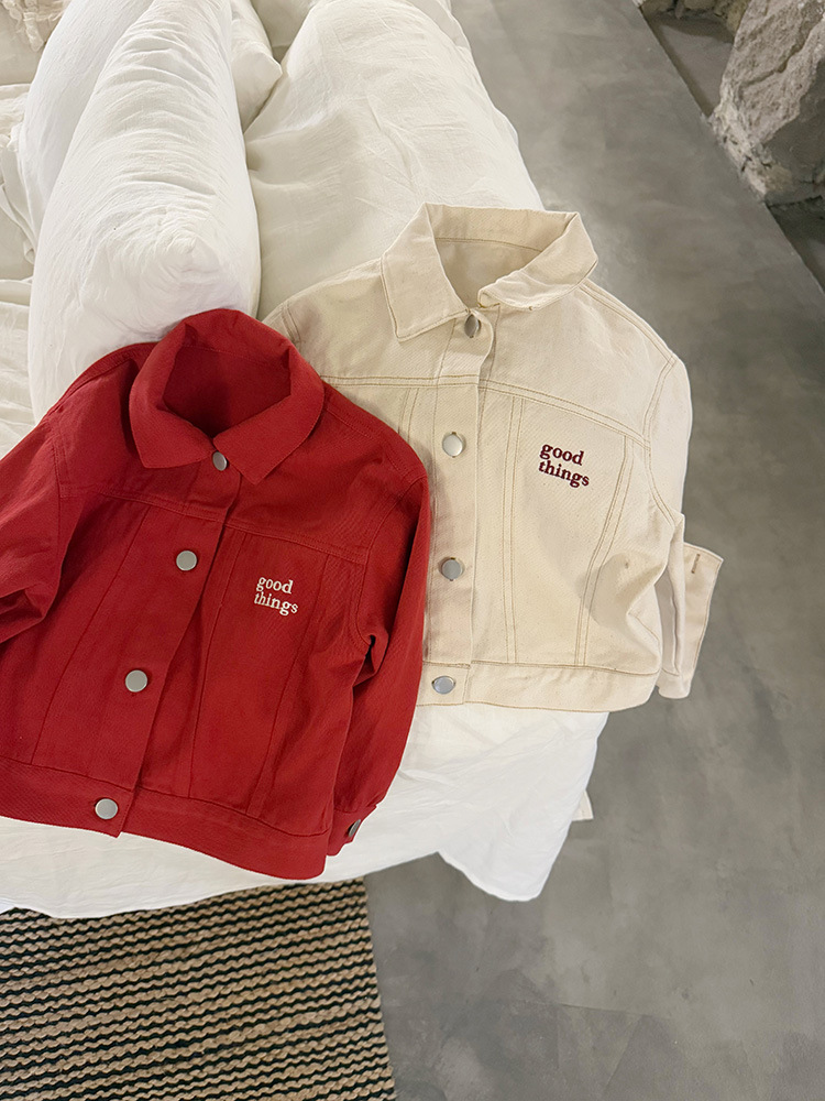 어린이 성향 편지 코트 2025 봄과 가을 데님 자수 편지 싱글 가슴 재킷 코트 긴 소매