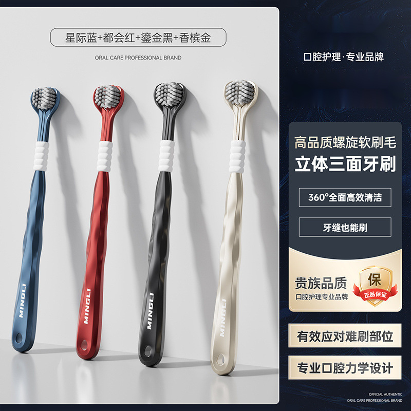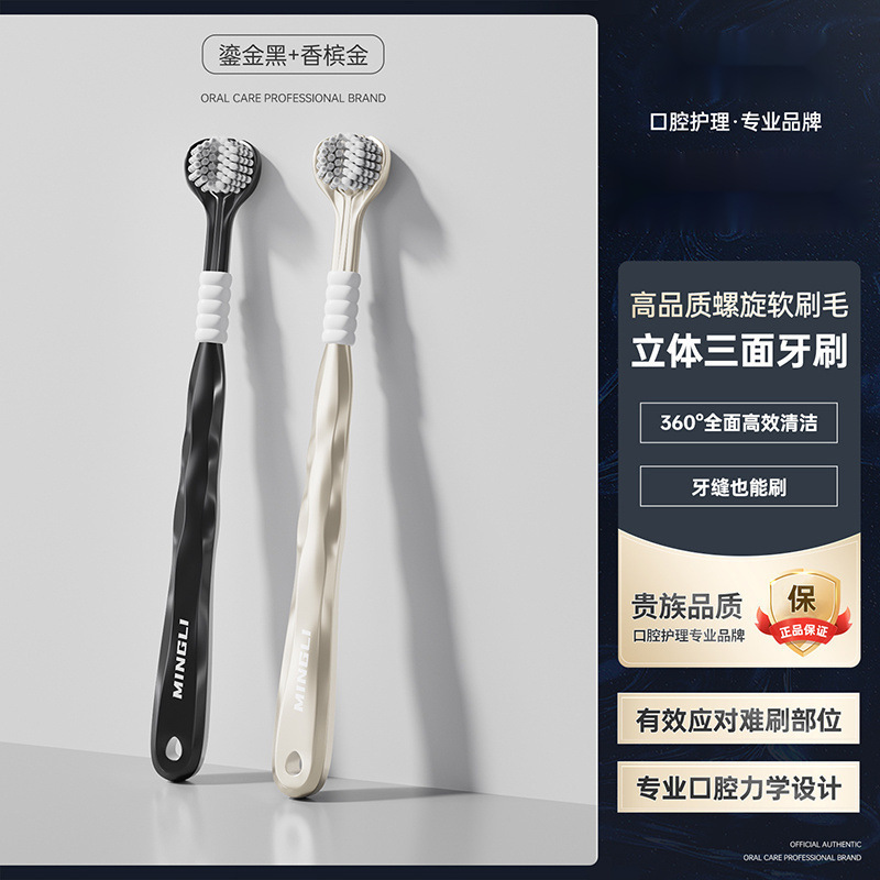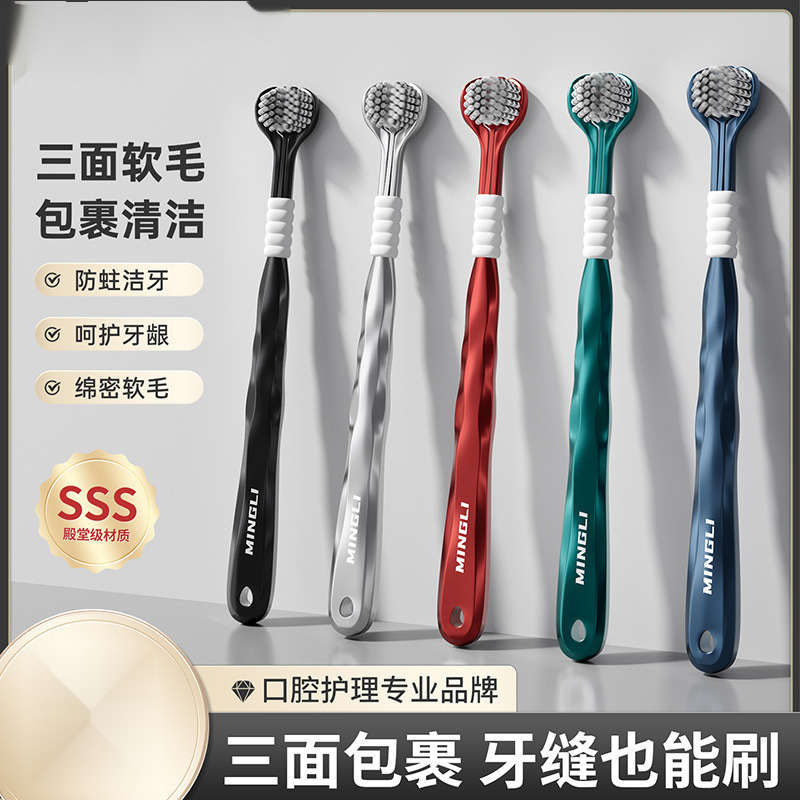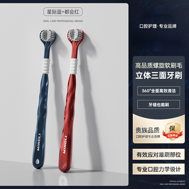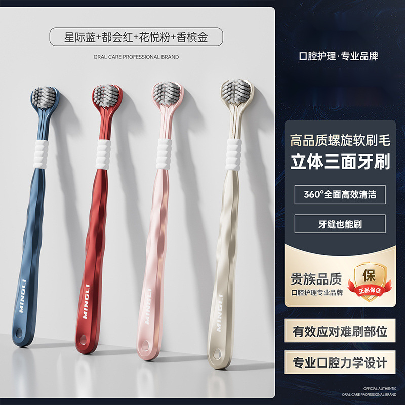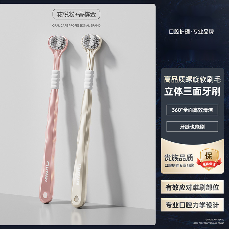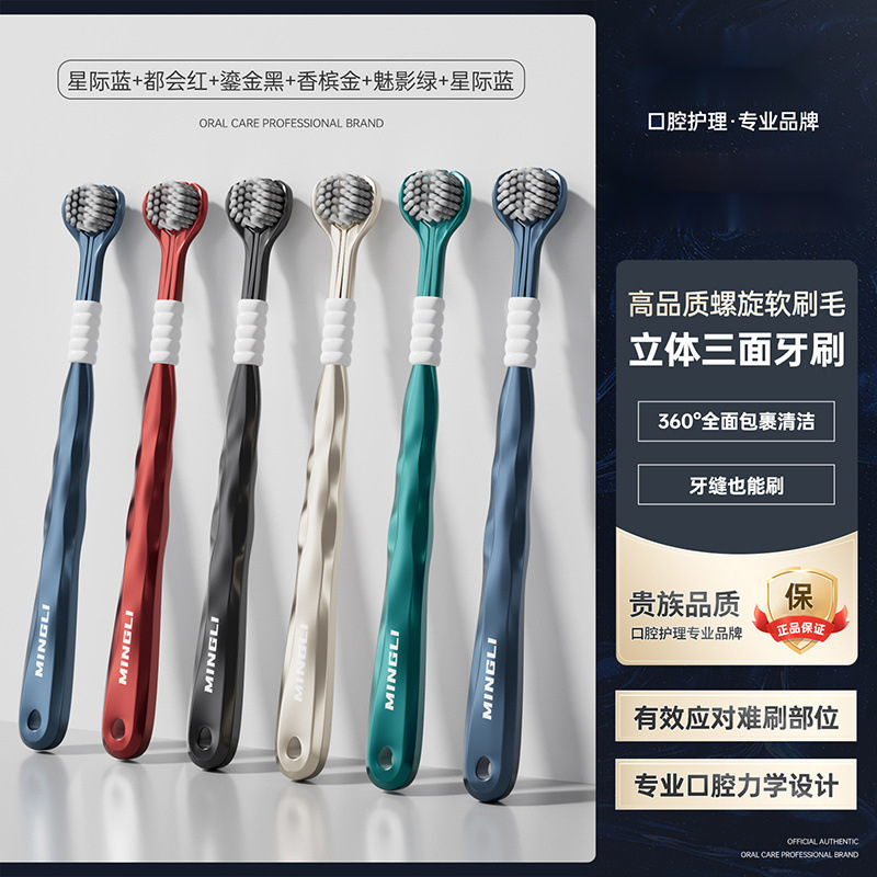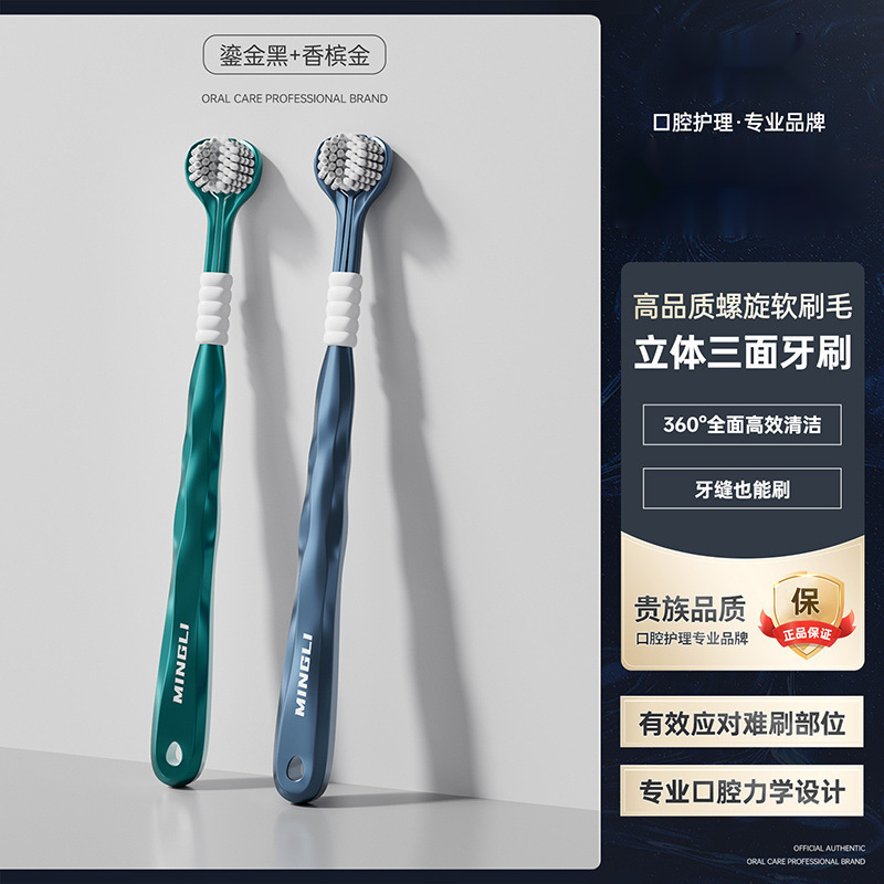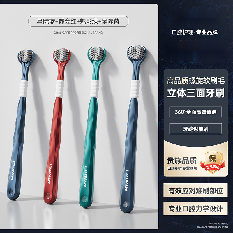 학위 3 면 칫솔 성인 소프트 헤어 3 헤드 블루투스 공동 혀 코팅 학생 가정 가정 기숙사 마카롱 무료 배송