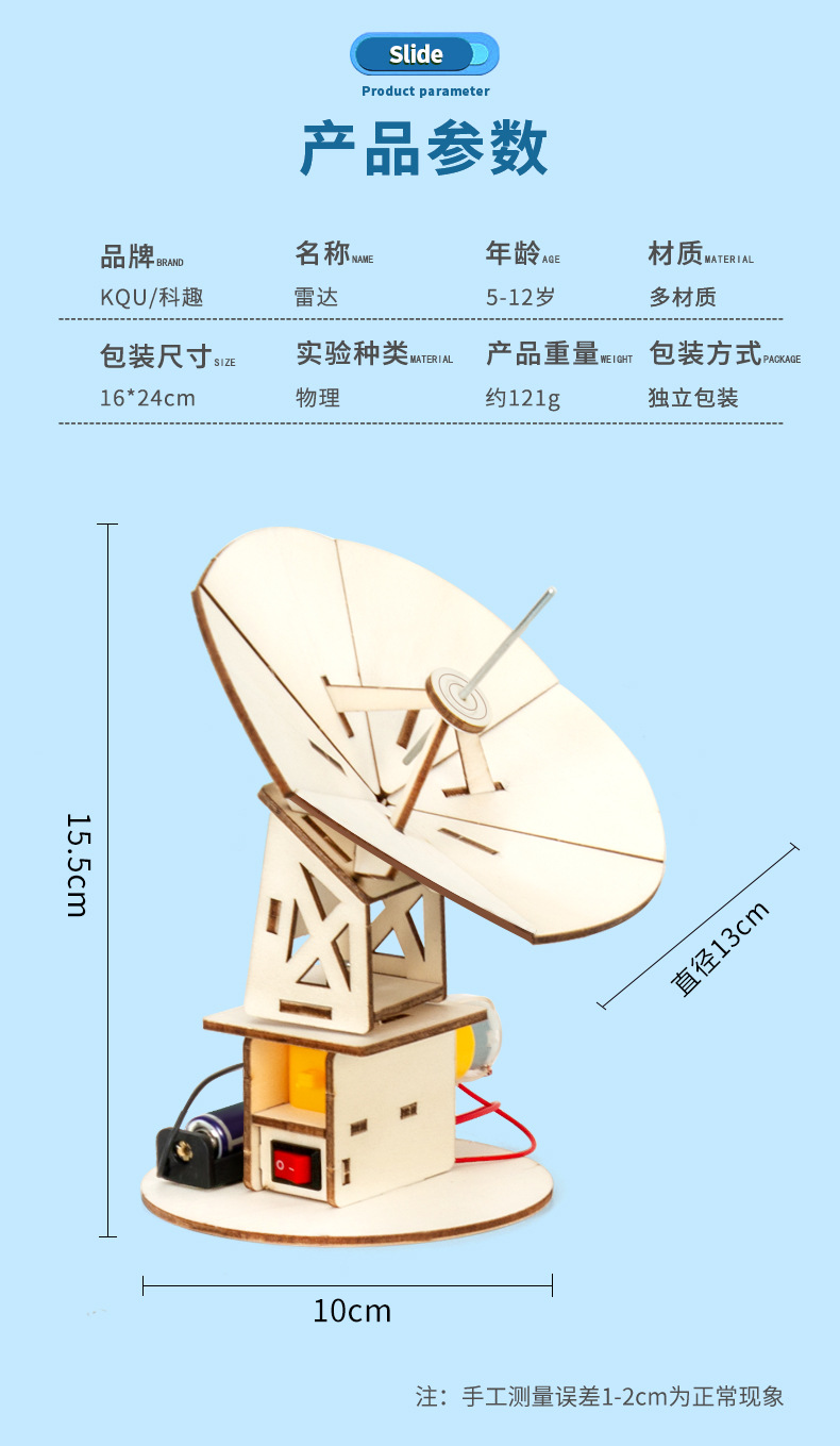 기술 소규모 생산 diy 전기 레이더 탐지기 증기 어린이 수제 교육 장난감 과학 실험 모델