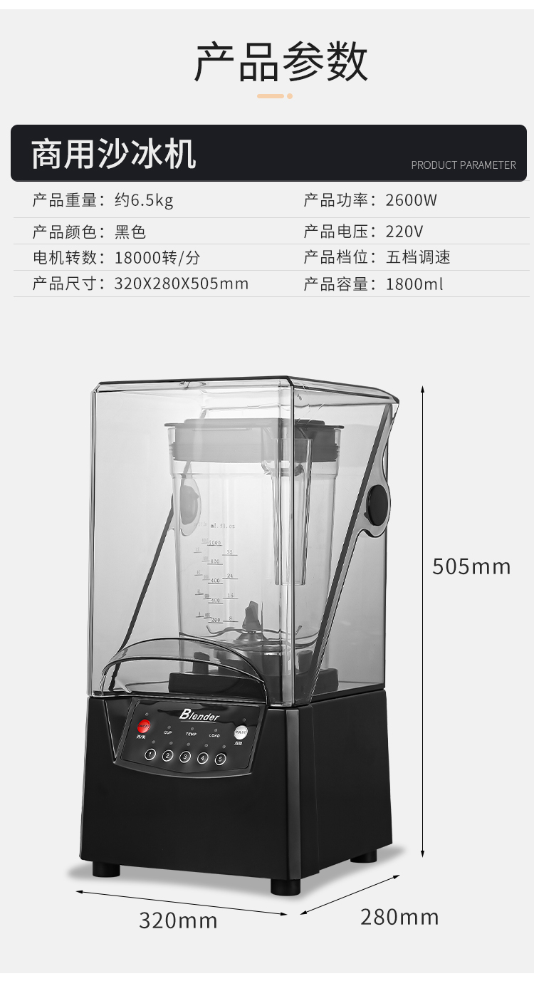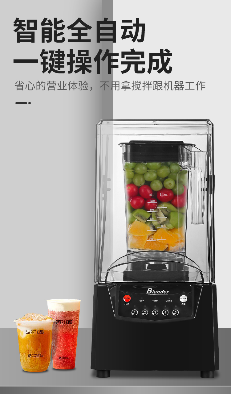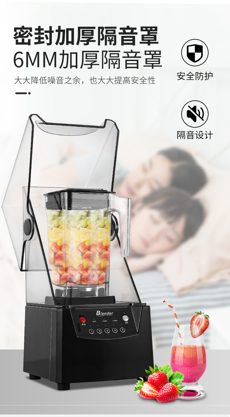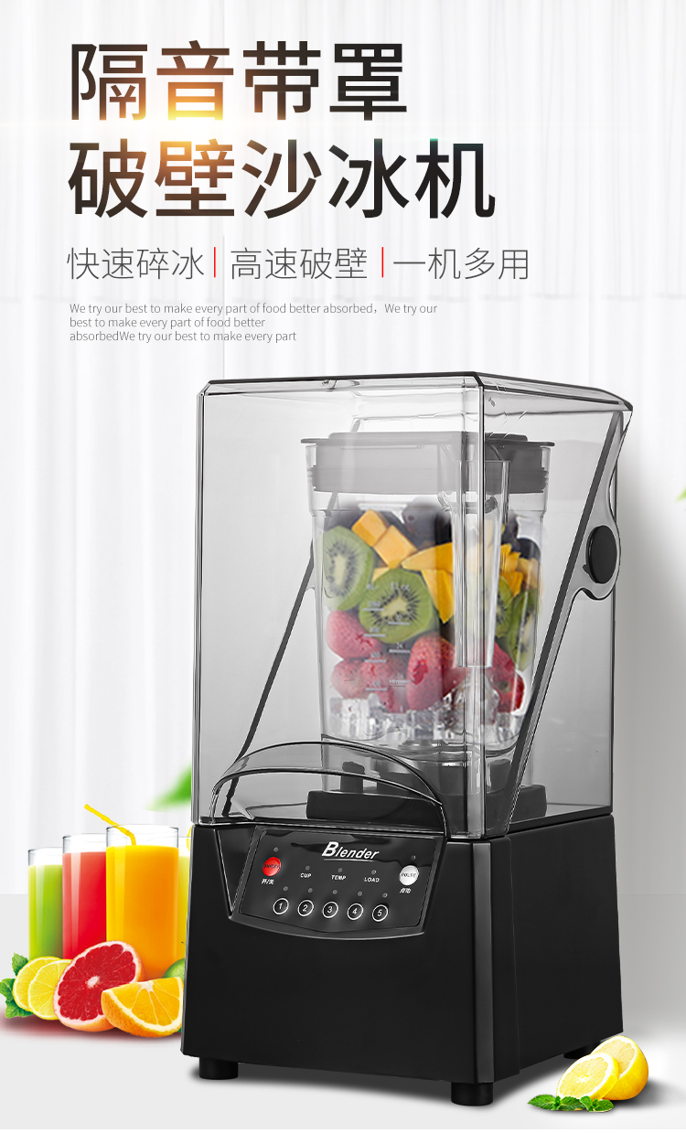 모래 얼음 기계 상업 방음 요리 기계 음소거 믹서 우유 차 가게 커버 스무디 얼음 분쇄기 주스 압착기