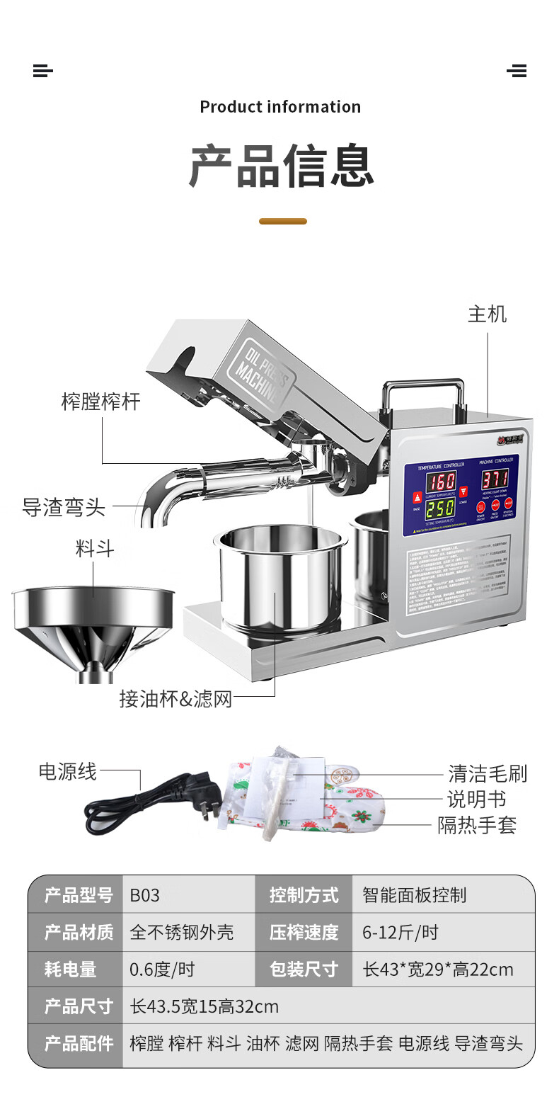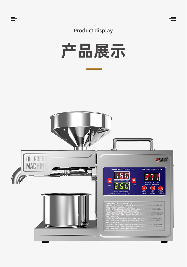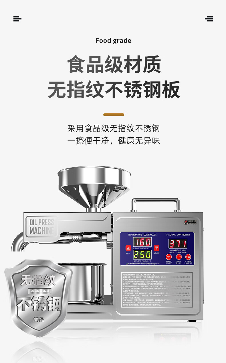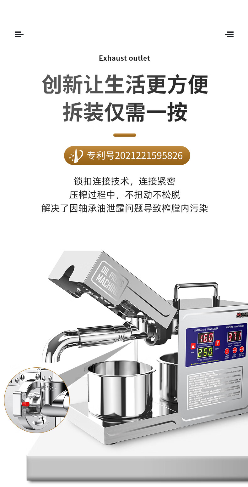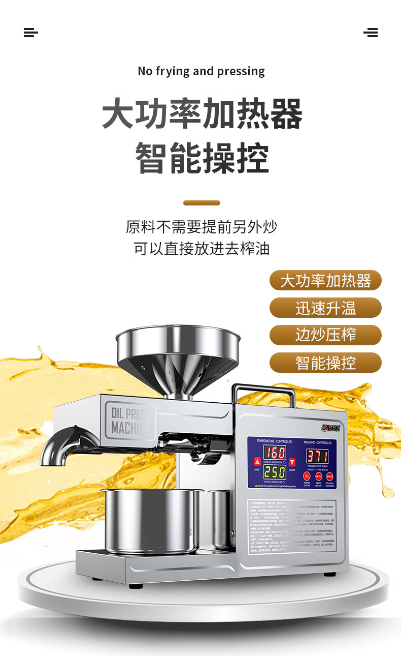 좋은 주방 뷰 오일 프레스 자동 가정용 작은 식물성 기름 프라이어 지능형 스테인레스 스틸 오일 프레스
