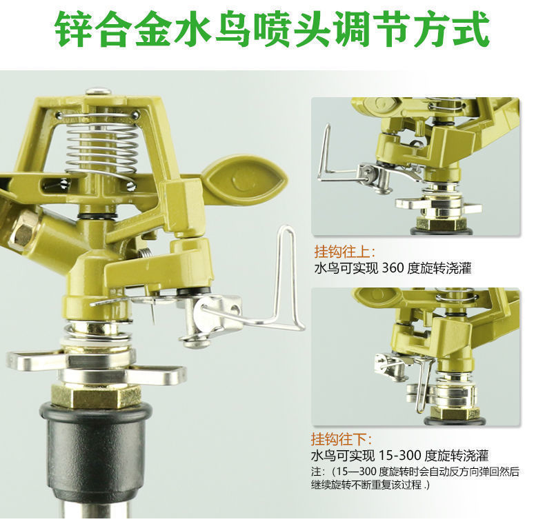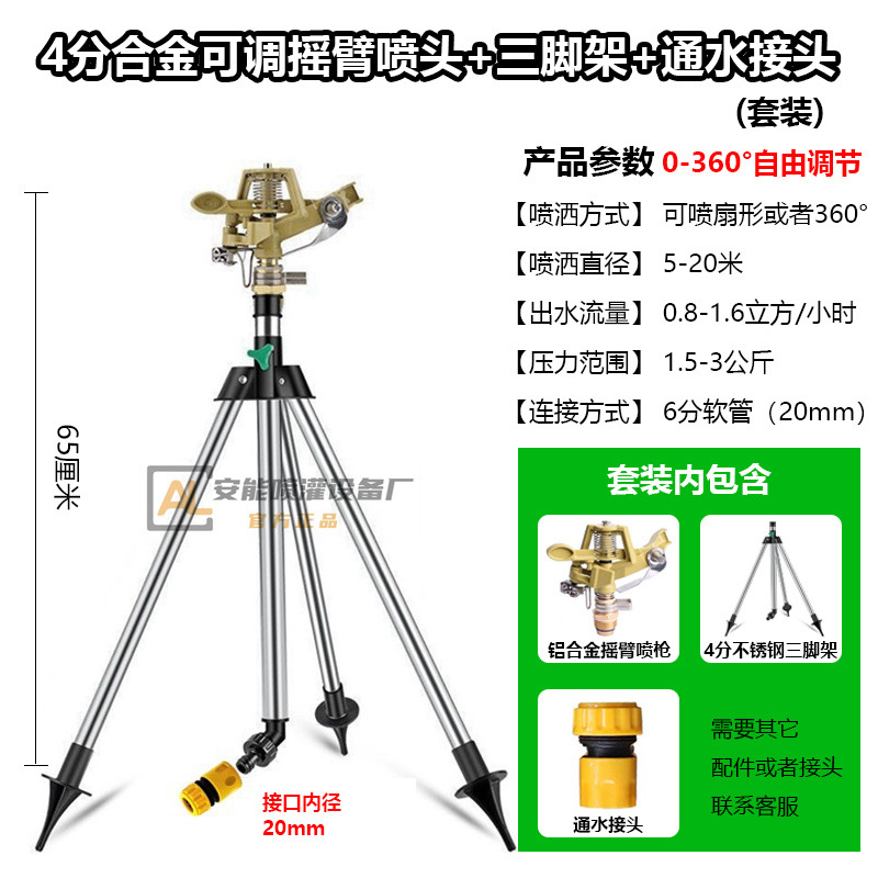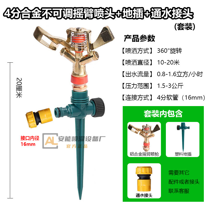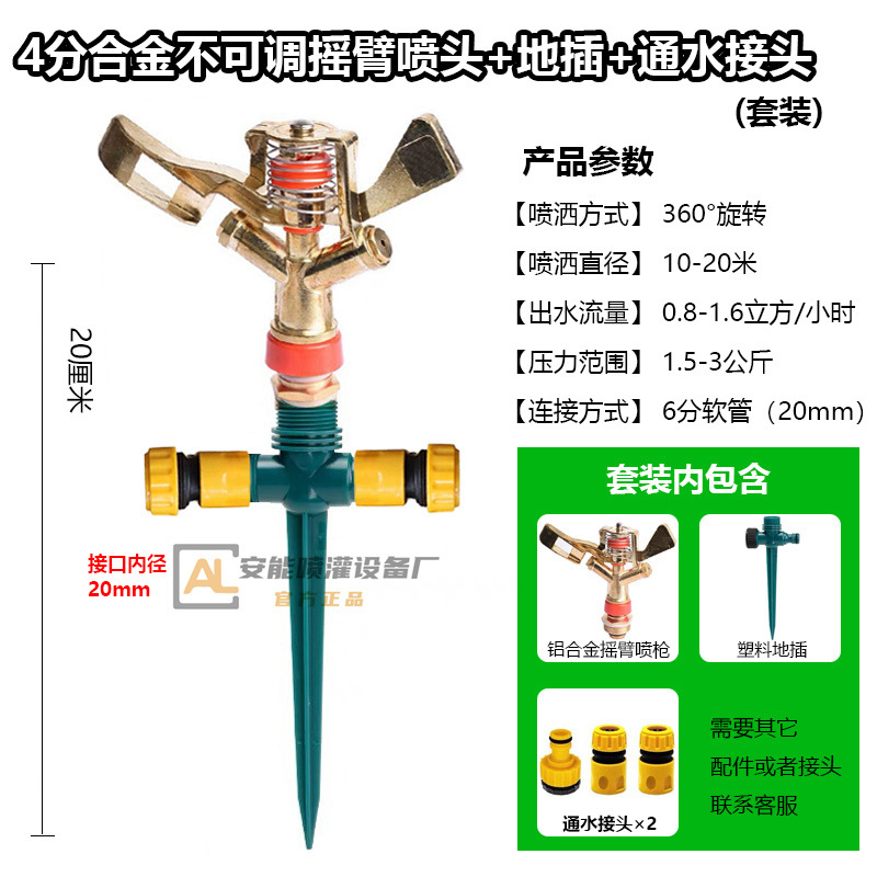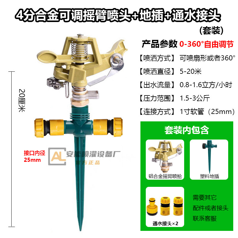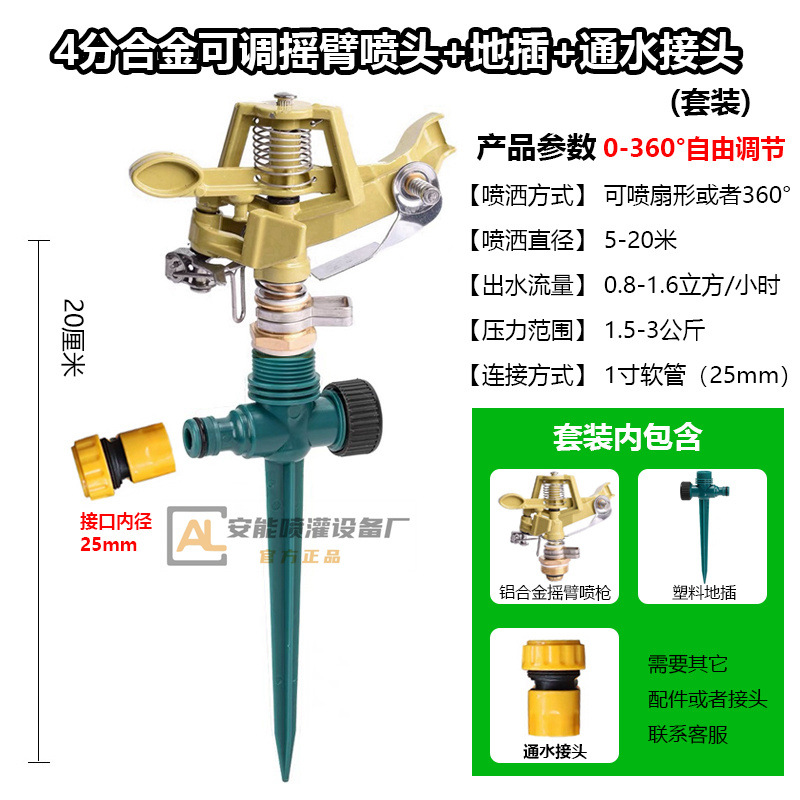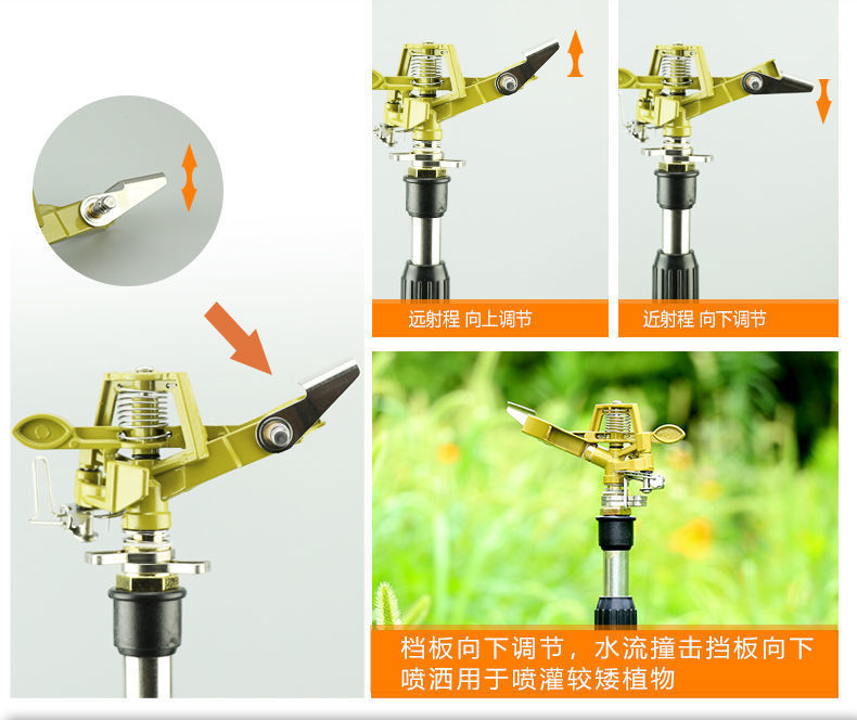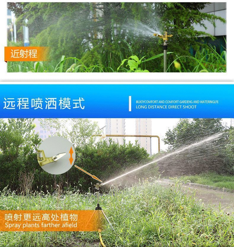 핑 가든 정원 스프링클러 관개 노즐 합금 조정 가능한 로커 팔 노즐 자동 350 ° 회전 공장 도매