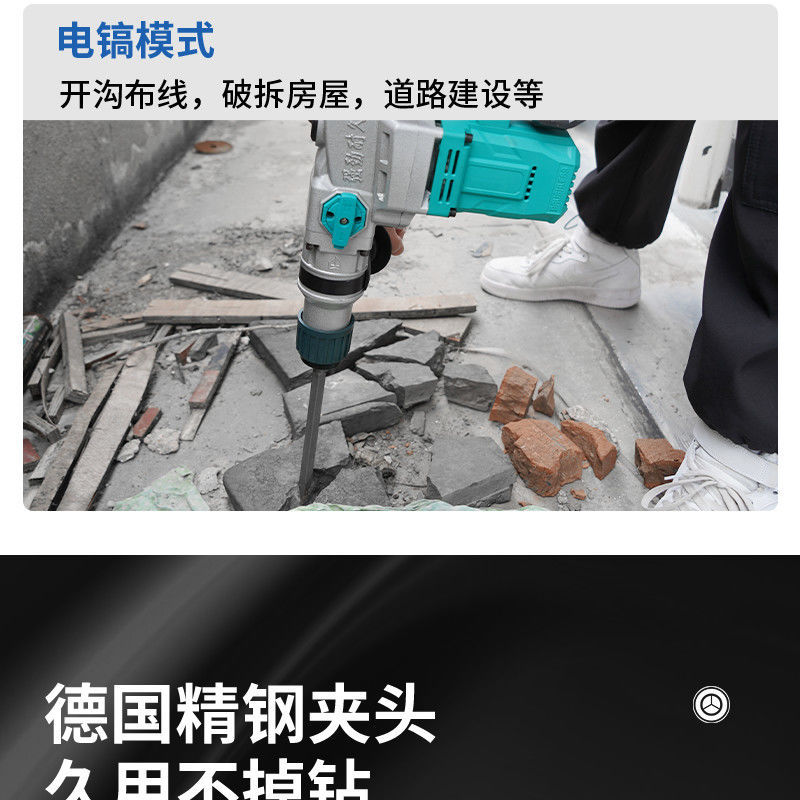 5 피스 브러시리스 충전식 전기 해머 전기 선택 이중 목적 산업 충격 전기 드릴 콘크리트 리튬 전기 해머스토어 가기