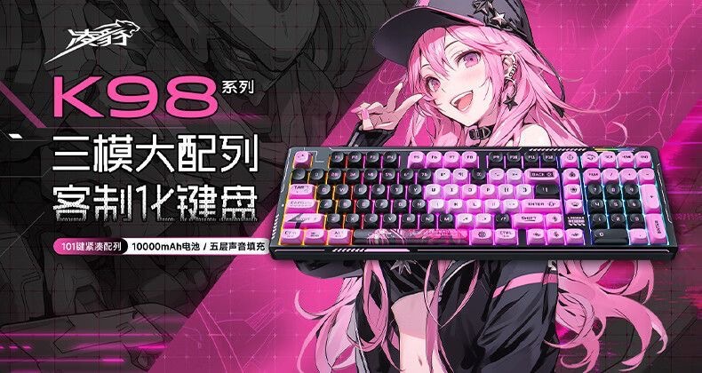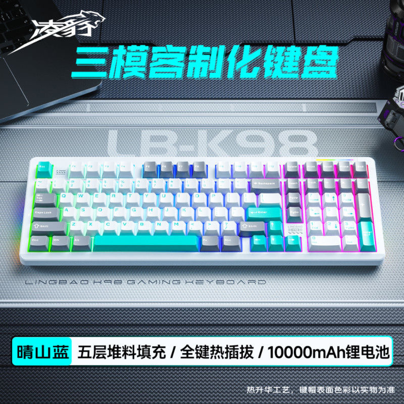 Lingbao K98 맞춤형 무선 3 모드 기계식 키보드 3 모드 풀 키 핫 스왑 가능 e-스포츠 게임용 키보드 101 키스토어 가기