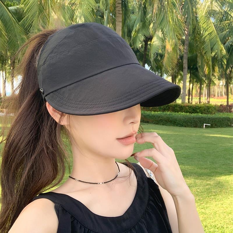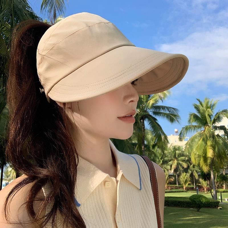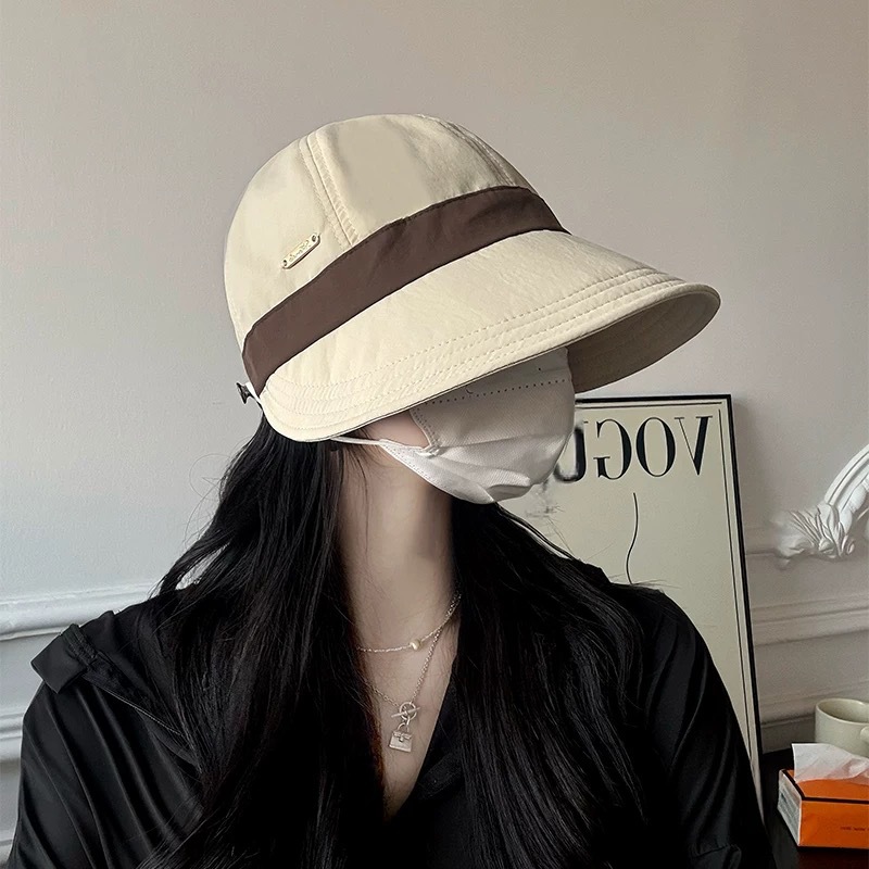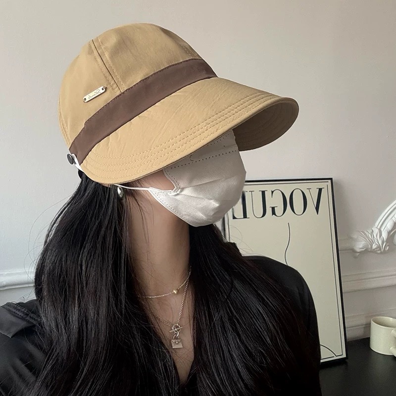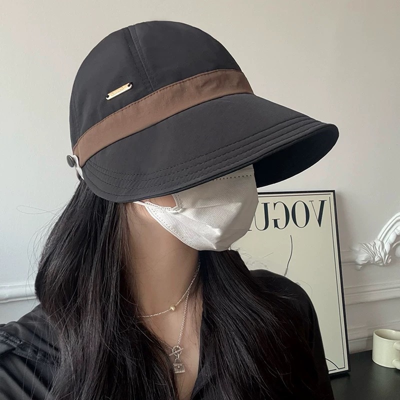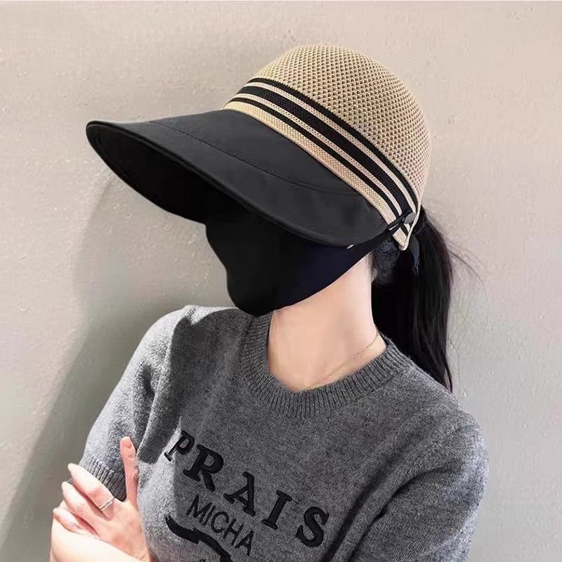 인터넷 유명인과 같은 스타일의 여성용 속건성 여름 모자, 얼굴을 더 작아 보이게 하는 야외용 햇빛 가리개, 마스크 걸이 가능한 챙 넓은 자외선 차단 모자