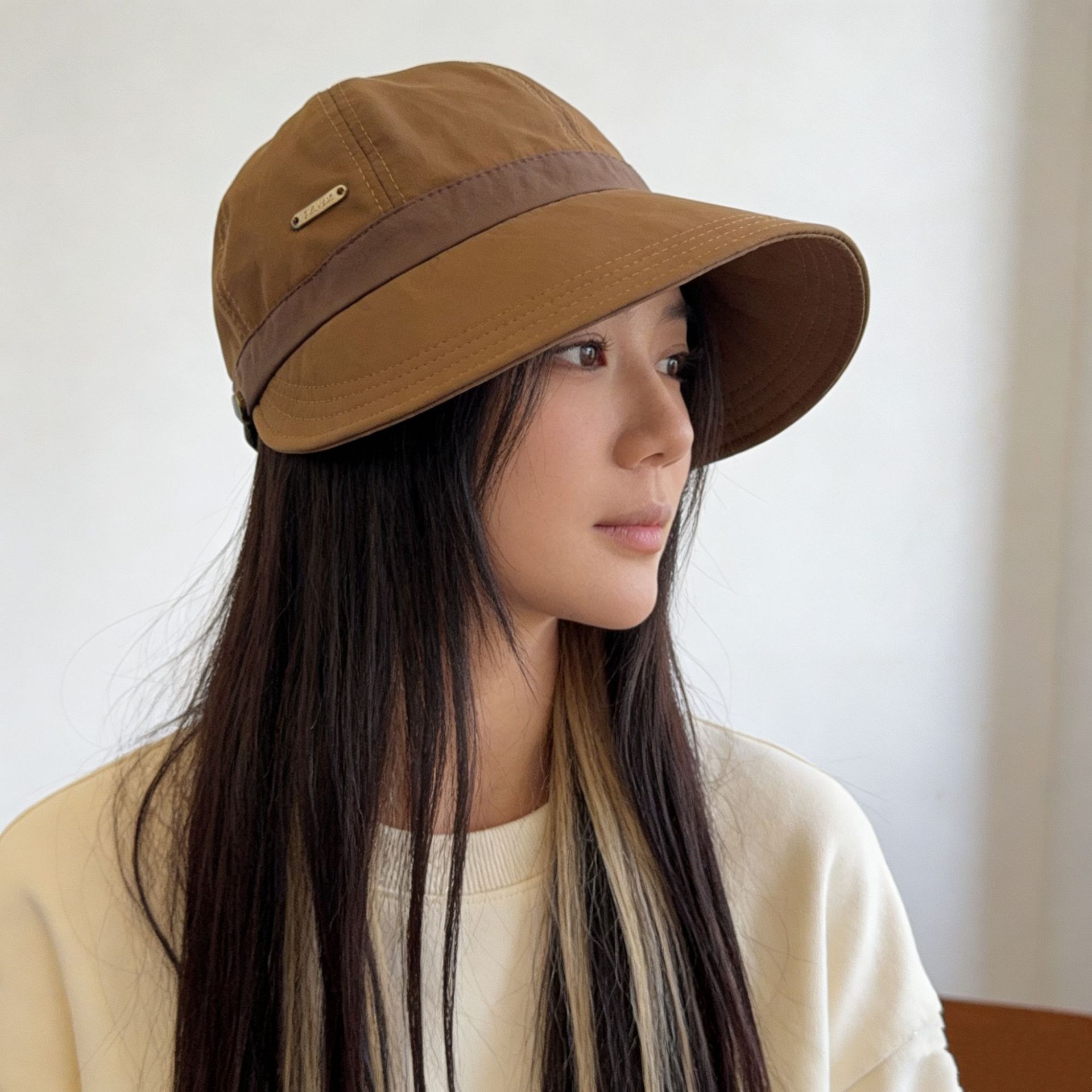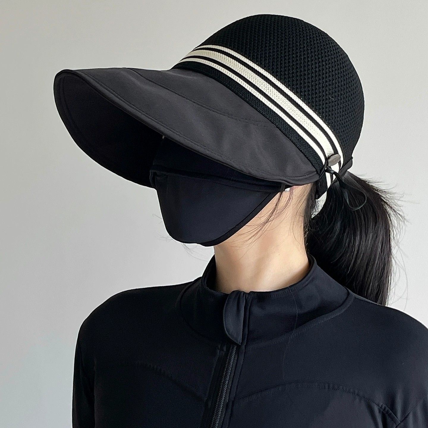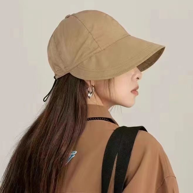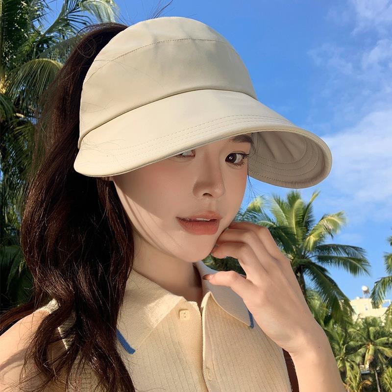 인터넷 유명인과 같은 스타일의 여성용 속건성 여름 모자, 얼굴을 더 작아 보이게 하는 야외용 햇빛 가리개, 마스크 걸이 가능한 챙 넓은 자외선 차단 모자