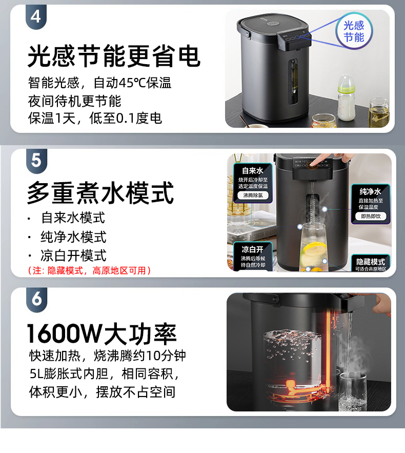 일정한 온도 지능형 주전자 가정용 전기 온수 병 절연 통합 주전자 5L 자동 대용량