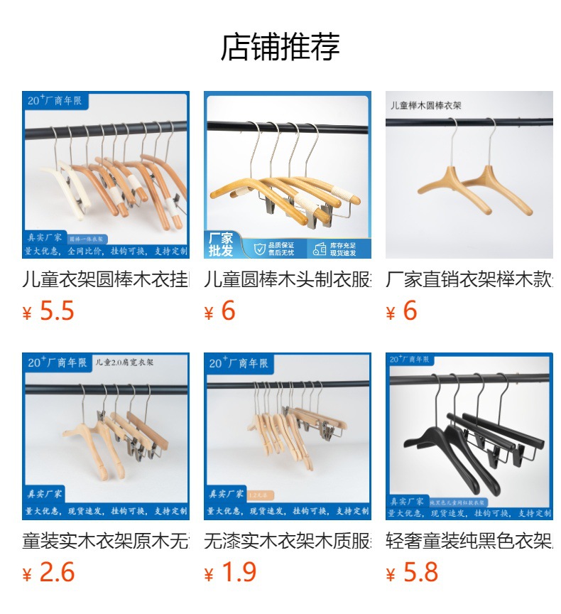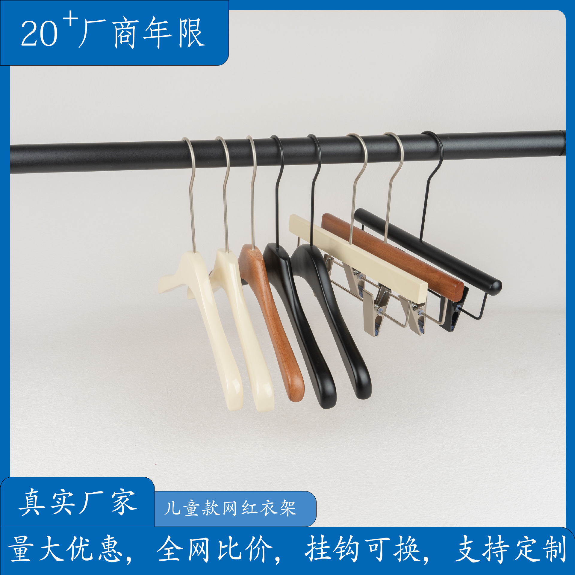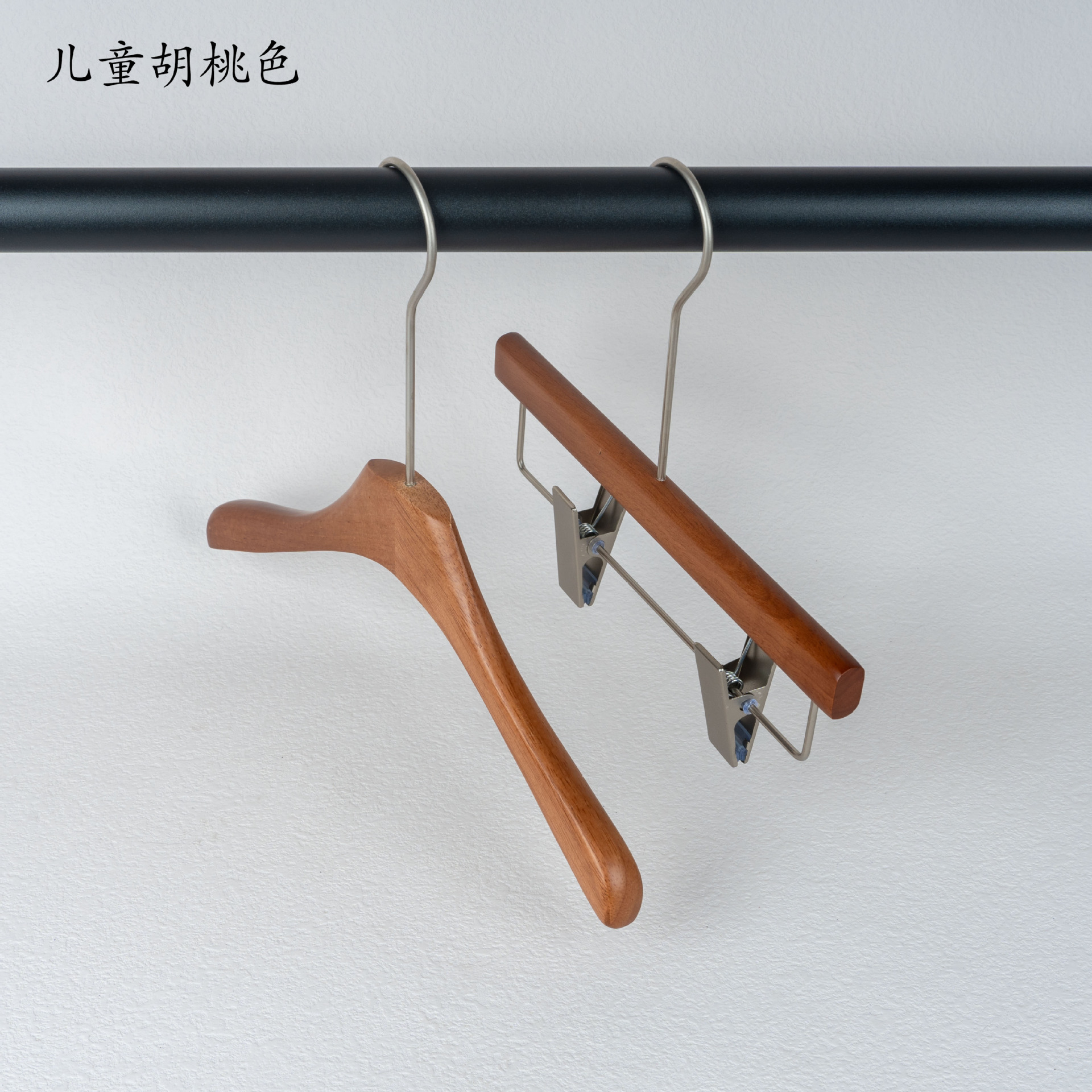 어린이용 원목 밀색 옷걸이, 밀색 호두색 아동복 걸이, 의류 매장용 특수 옷 지지대, 어린이용 바지 걸이 확장스토어 가기