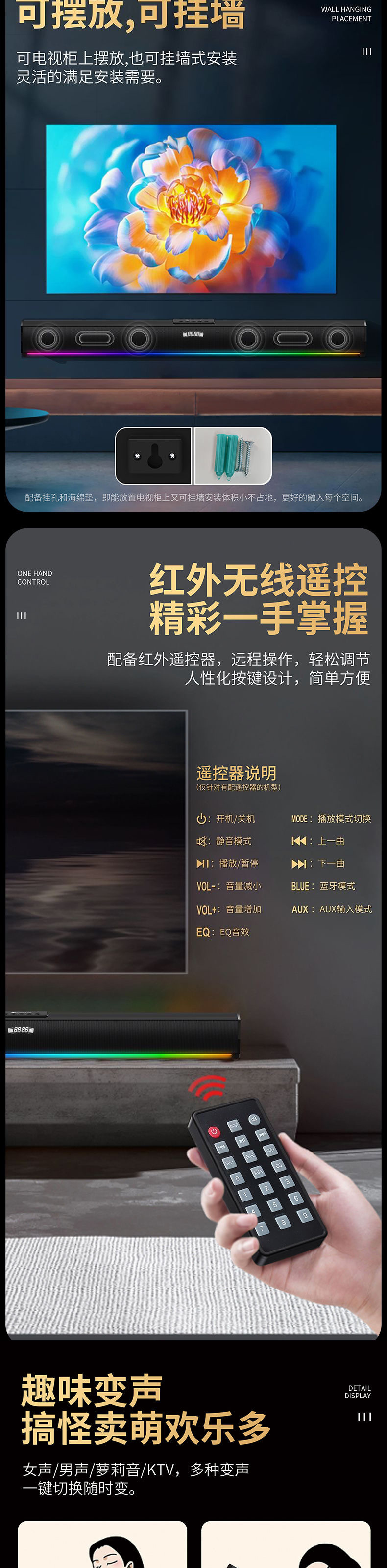 TV HFI 서브 우퍼 긴 사운드 바 블루투스 스피커 거실 에코 벽 3D 서라운드 사운드 컴퓨터 데스크탑 스테레오