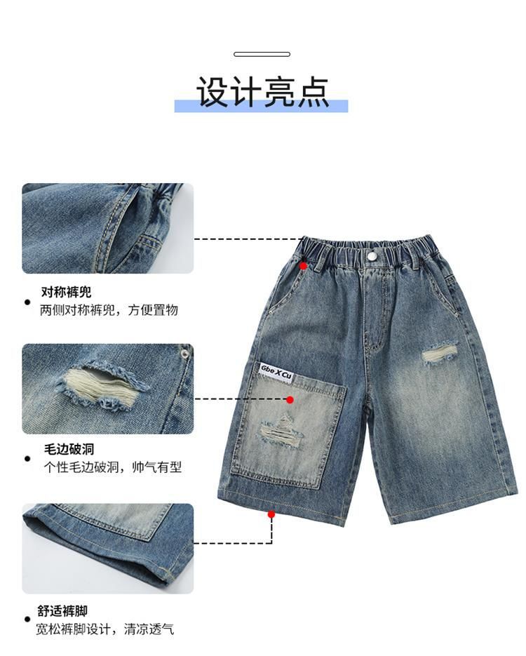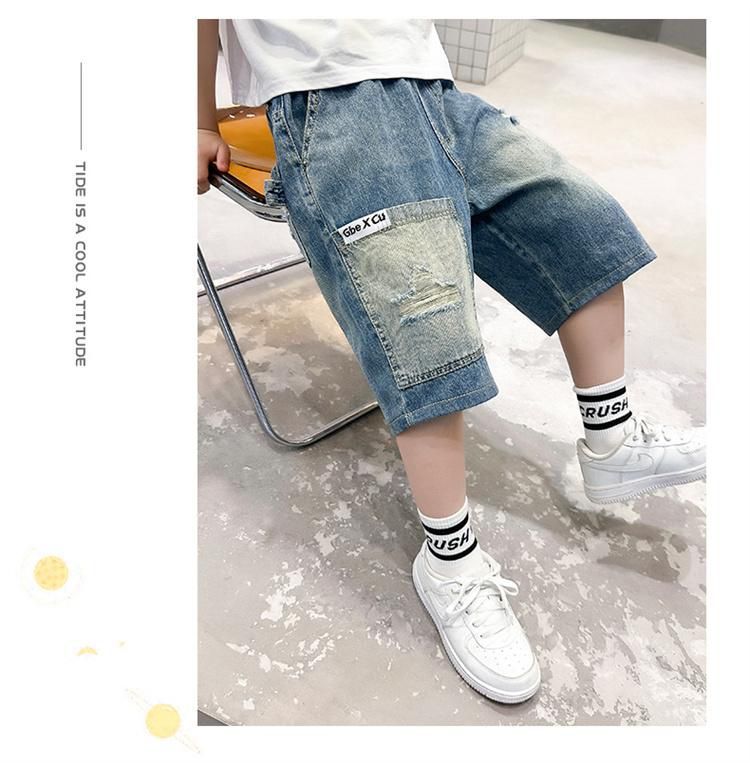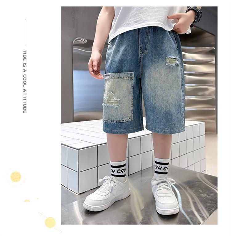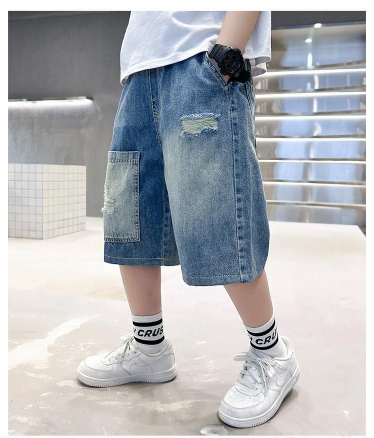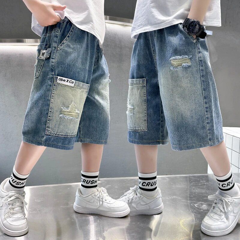 소년들 '여름 새 하이스트리트 찢어진 청바지 2025 한국 잘 생긴 데님 반바지 유행스토어 가기