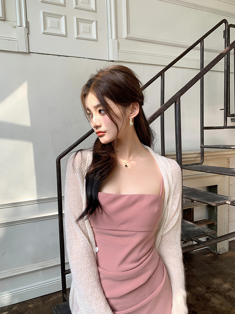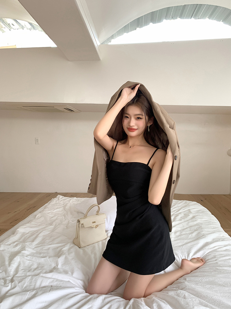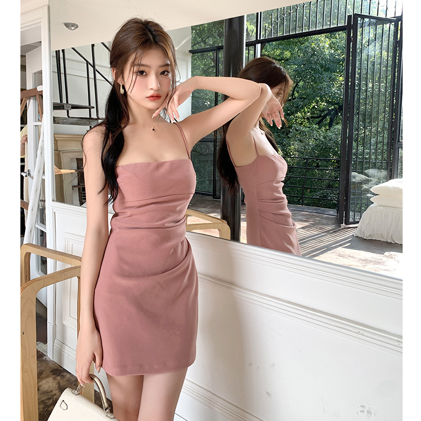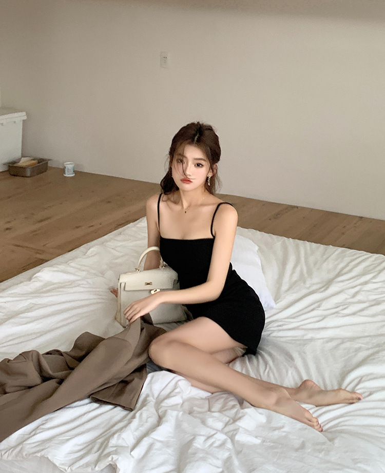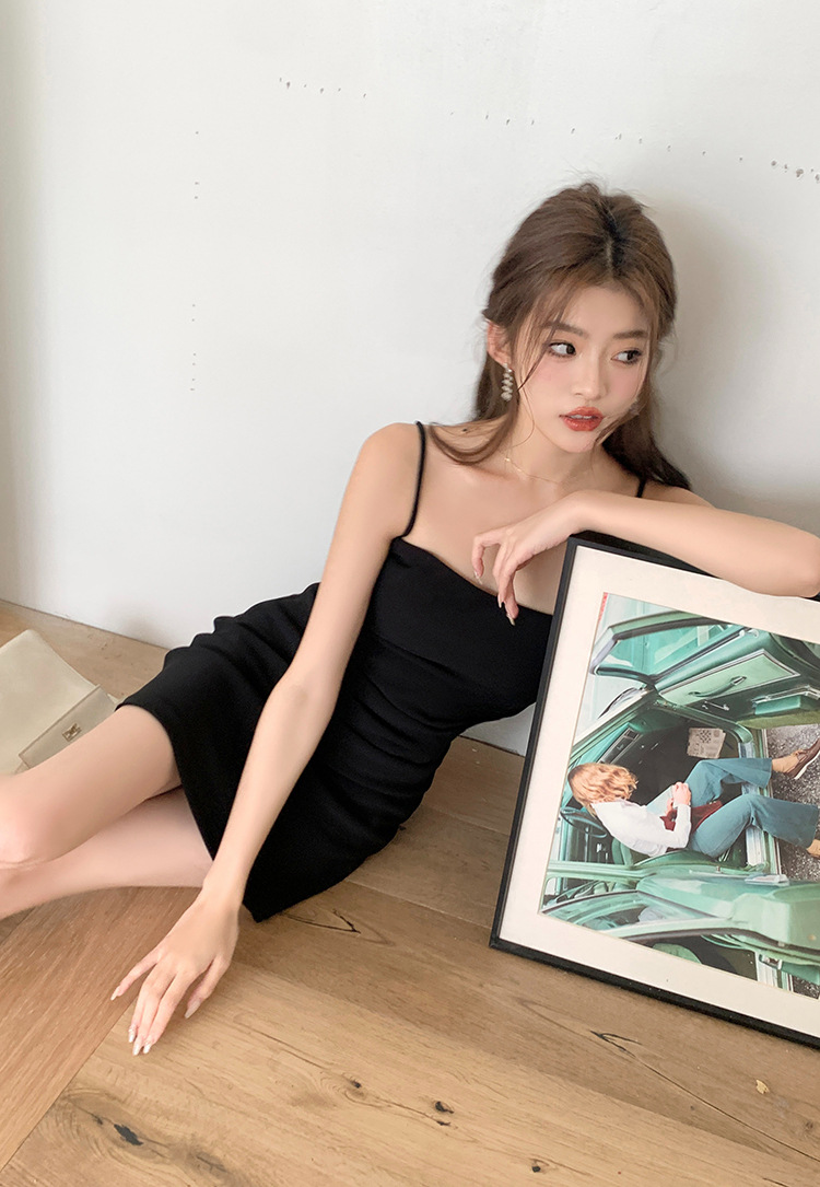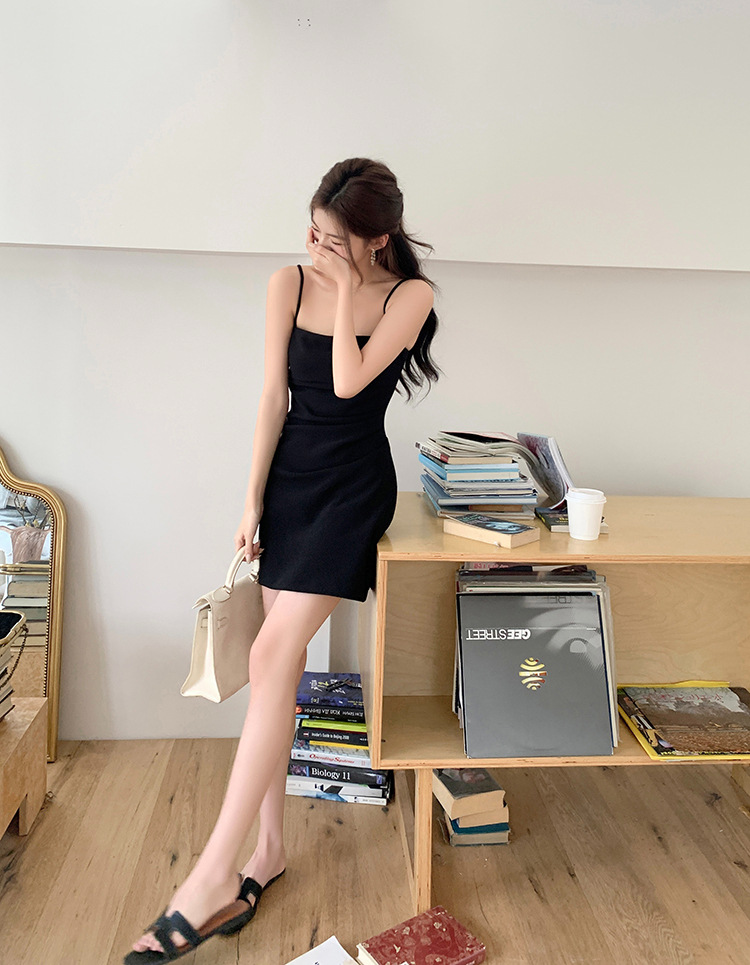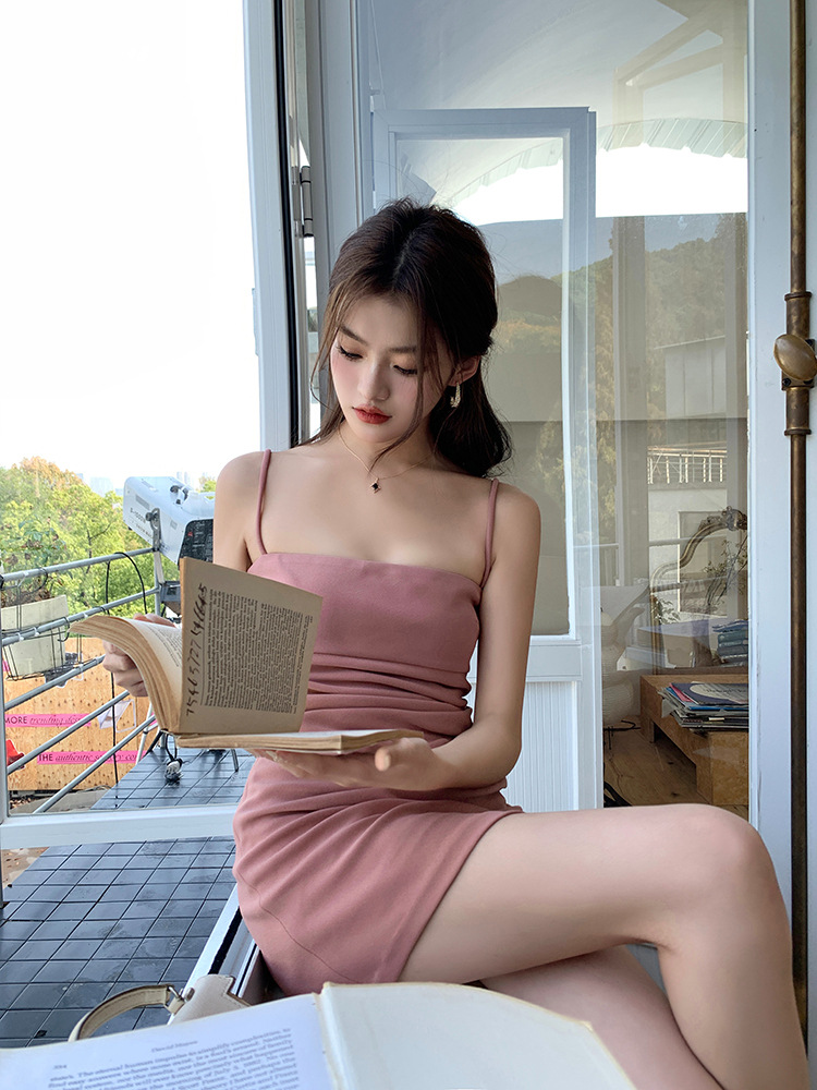 가슴 패드가 달린 뒤 지퍼 | 순수한 욕망 슬링 원피스 여성의 여름 틈새 우아한 타이트 허리 엉덩이 스커트스토어 가기