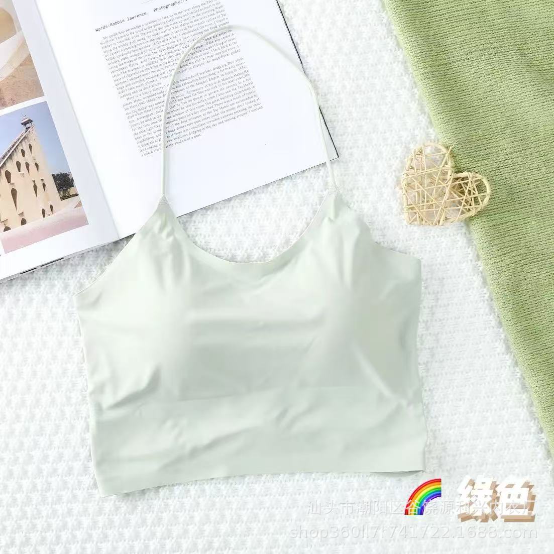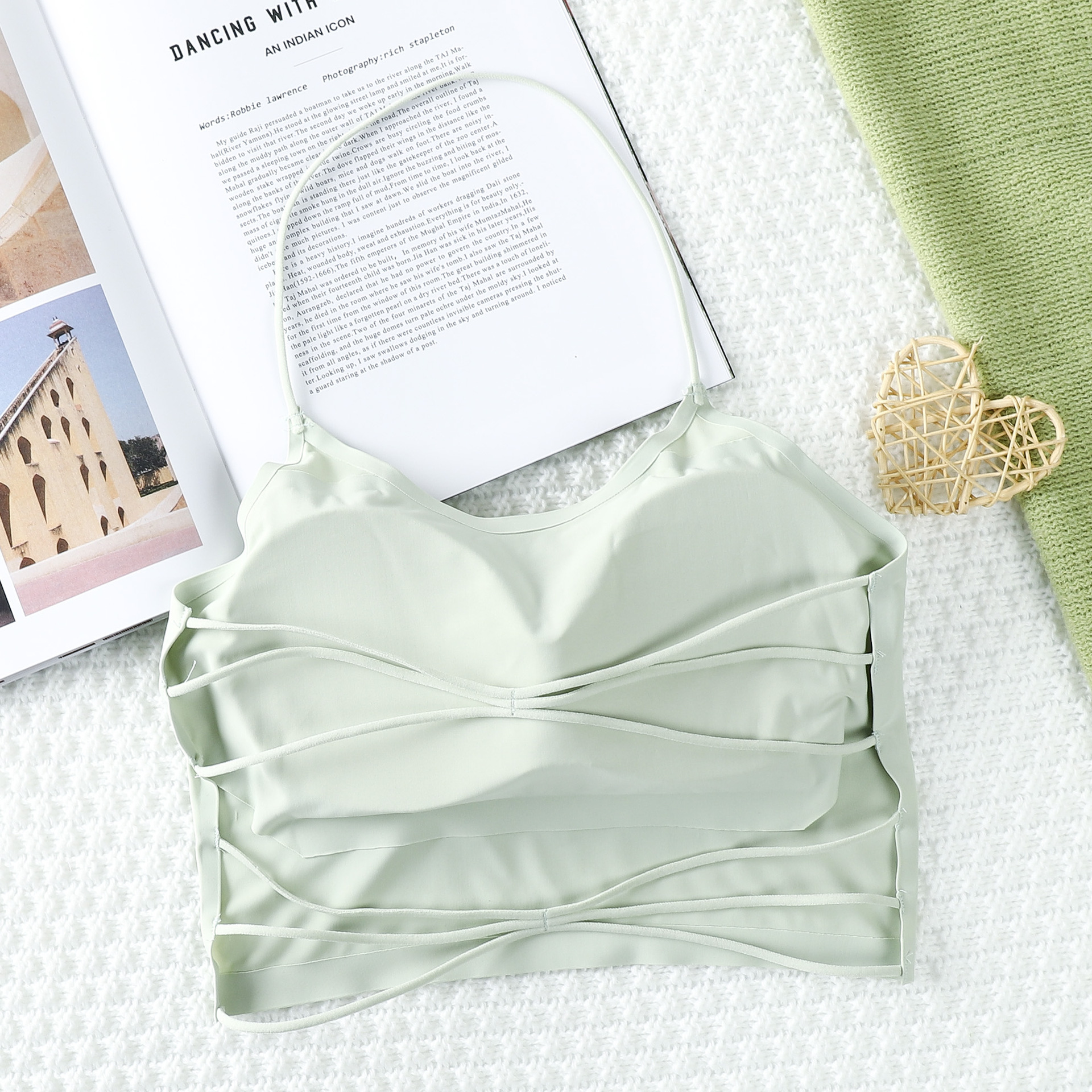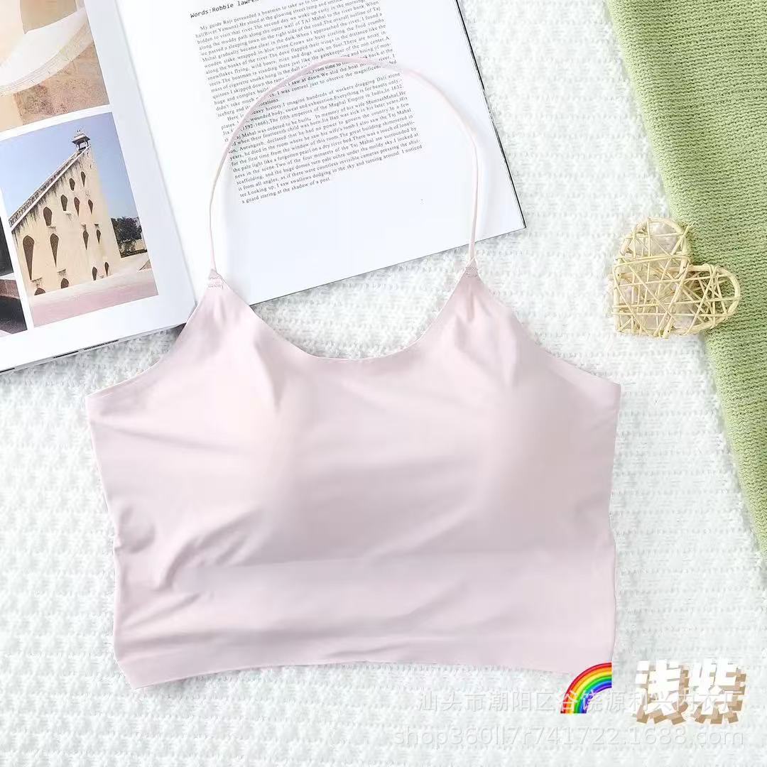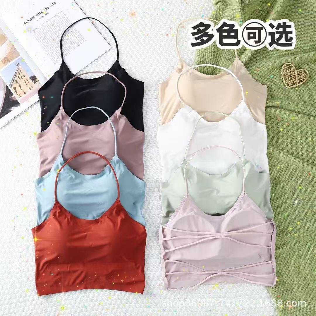 裹胸无痕冰丝交叉美背抹胸内衣无钢圈带胸垫防走光内搭打底吊带女