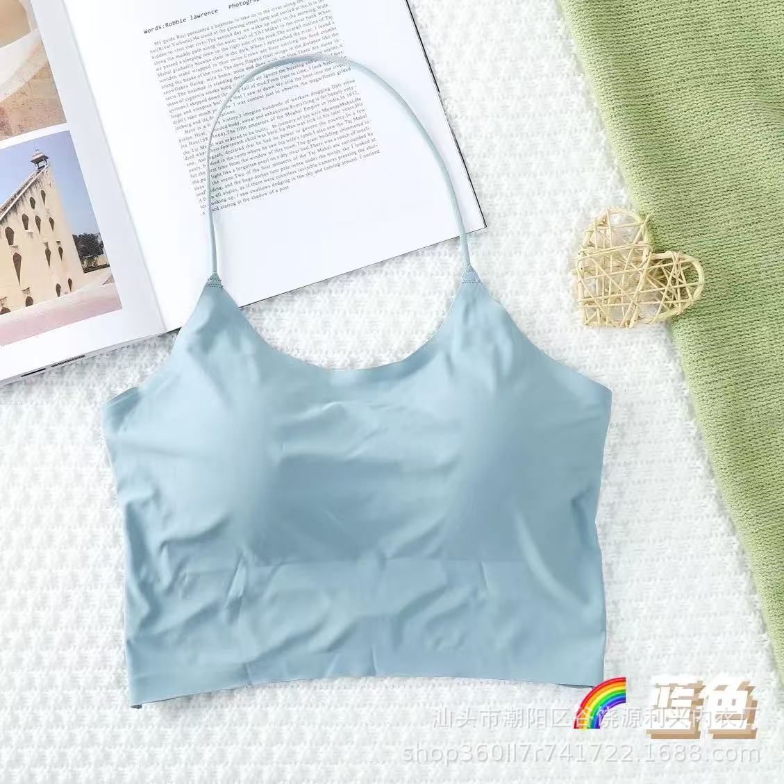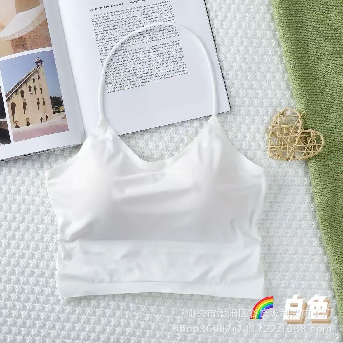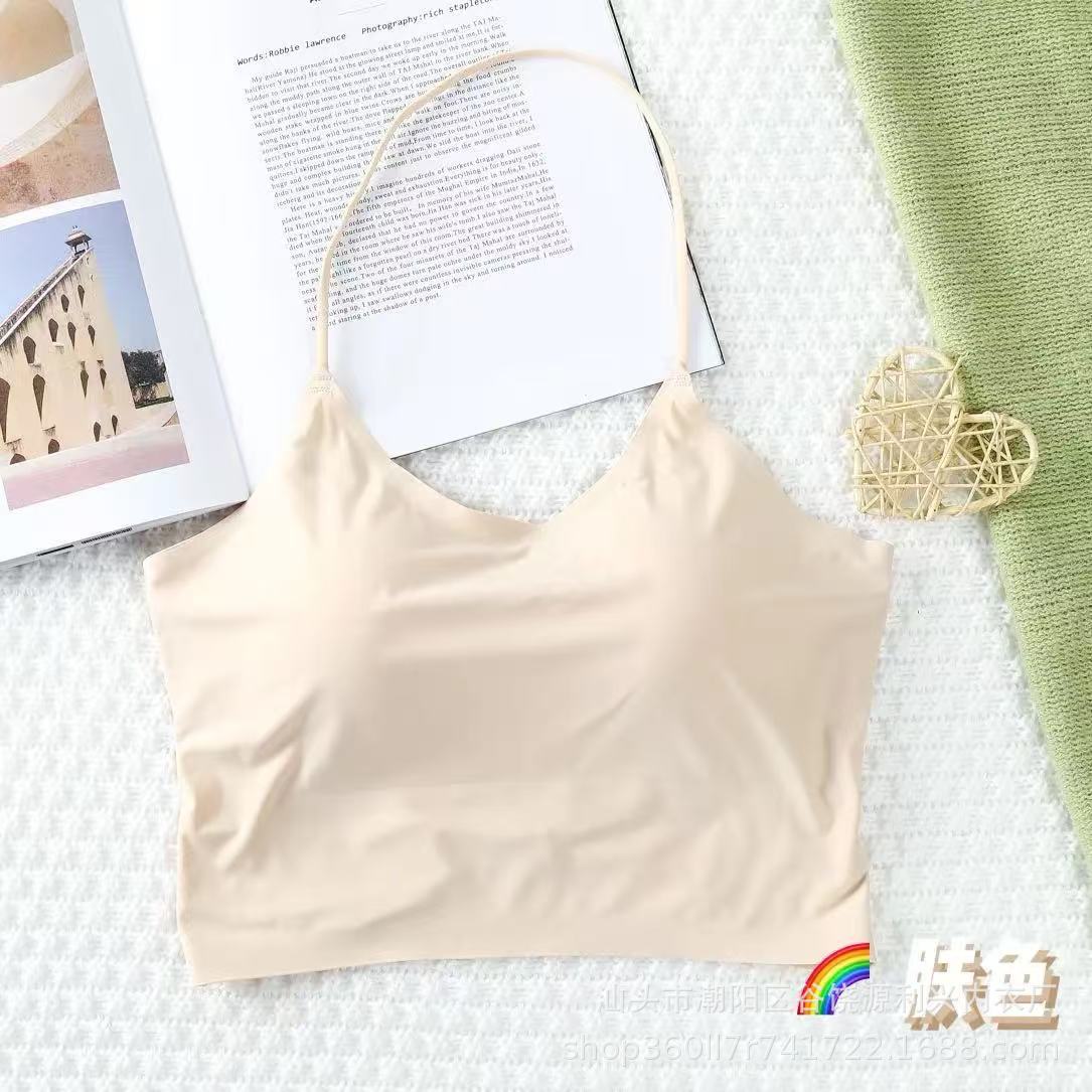 裹胸无痕冰丝交叉美背抹胸内衣无钢圈带胸垫防走光内搭打底吊带女