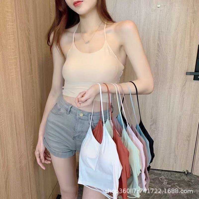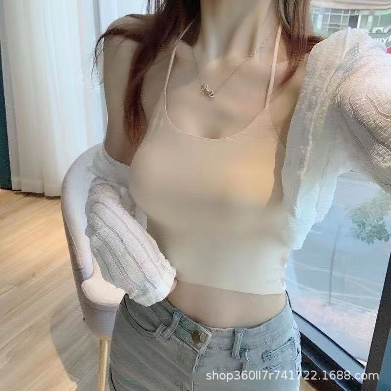 여름 아이스 실크 교수형 목 포장 가슴 아름다운 뒷면 Tracless Bottoming 내부 스트랩리스 외부 착용 크로스 디자인 여성용 짧은 속옷
