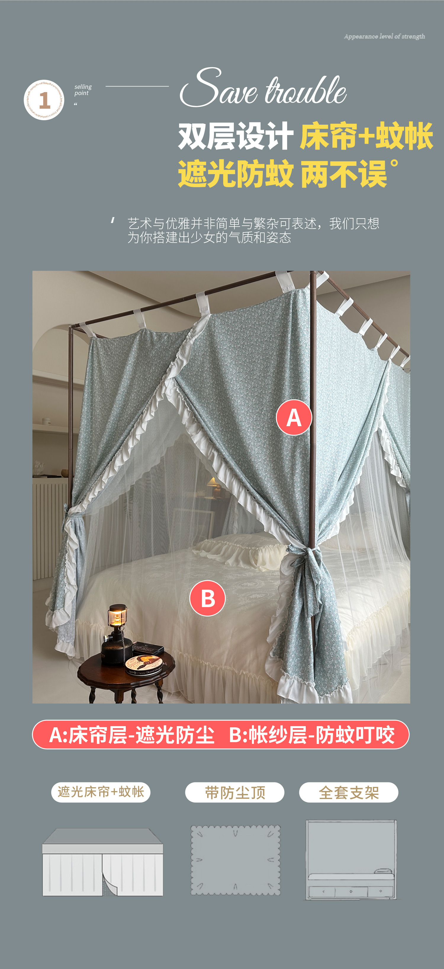 2025 더블 레이어 가정용 침실 모기장 1.8m 침대 통합 음영 침대 커튼 먼지 탑 요정 바람 공주 바람스토어 가기