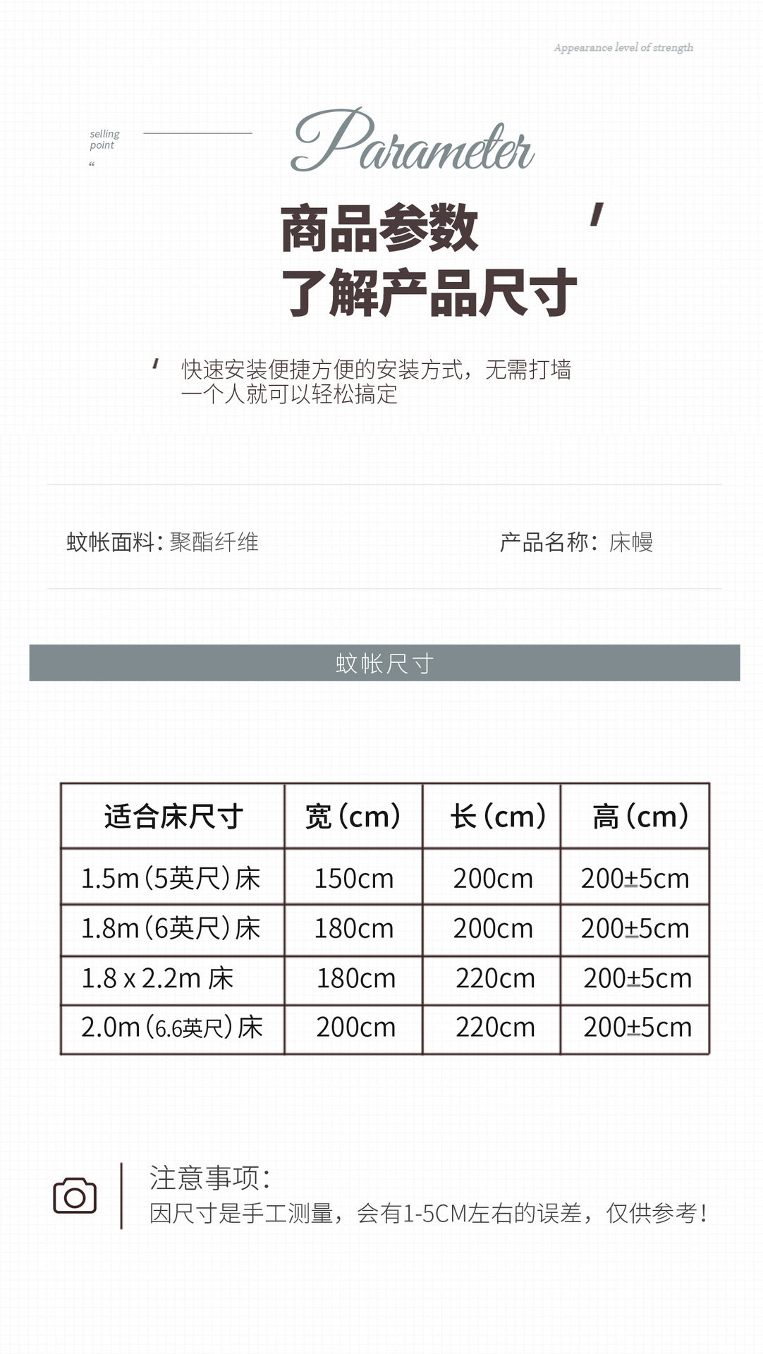 • 180*200cm [모기장 + 블랙 알루미늄 합금 브라켓]