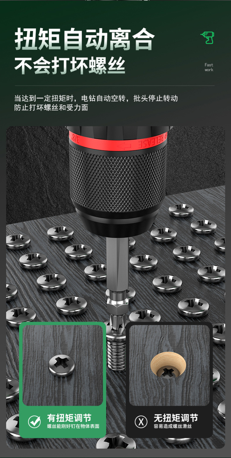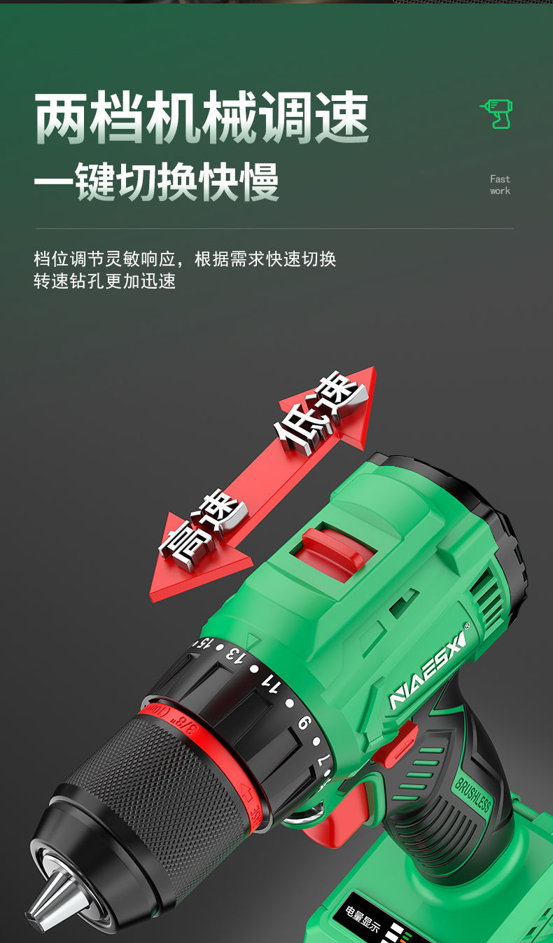 • 브러시리스 2단 전기 드릴 모델 16.8V + 배터리 1개 및 충전기 1개 + 고급 선물 액세서리