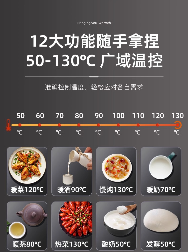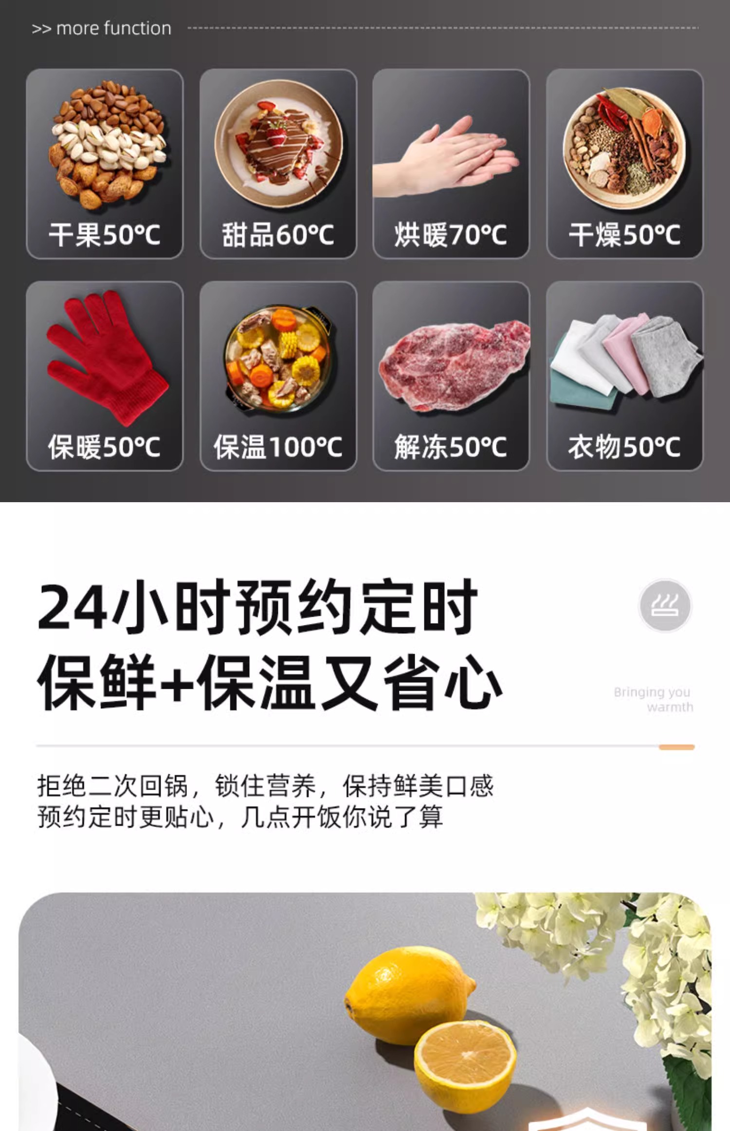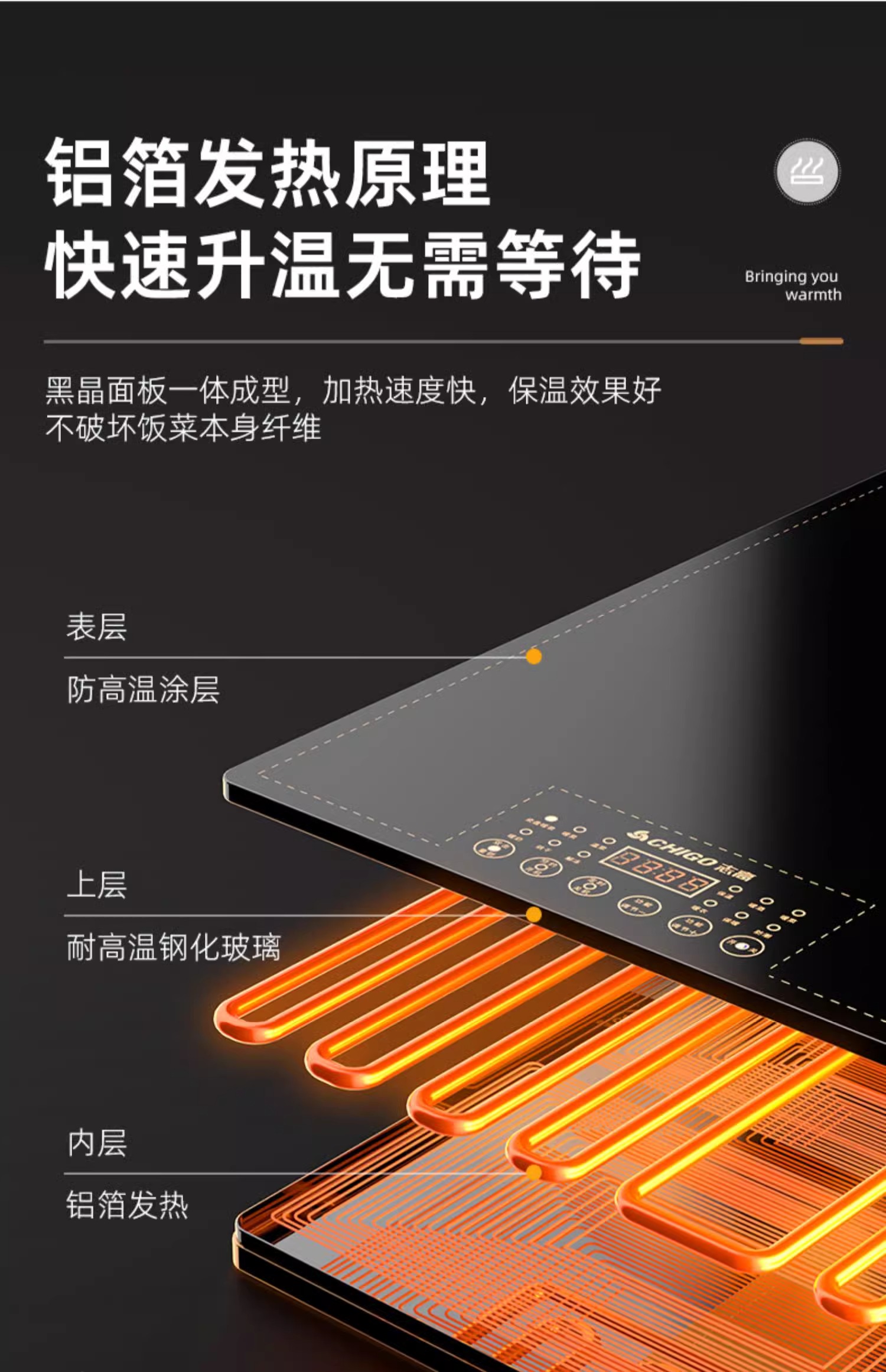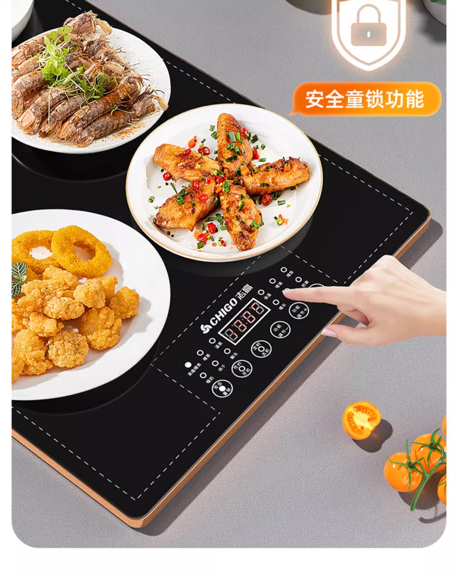 • [60*40CM] 접시 6개, 온도 조절 8단계 + 예약 타이머 + 어린이 잠금 장치
