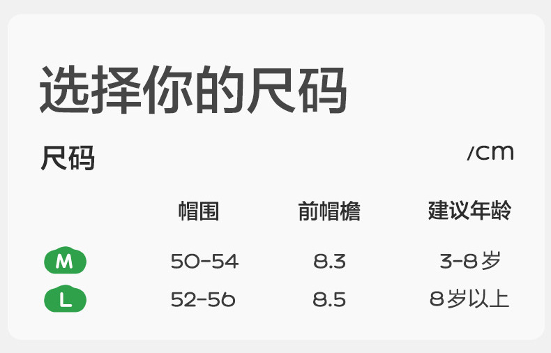 • M 사이즈: 권장 머리 둘레 50-54cm