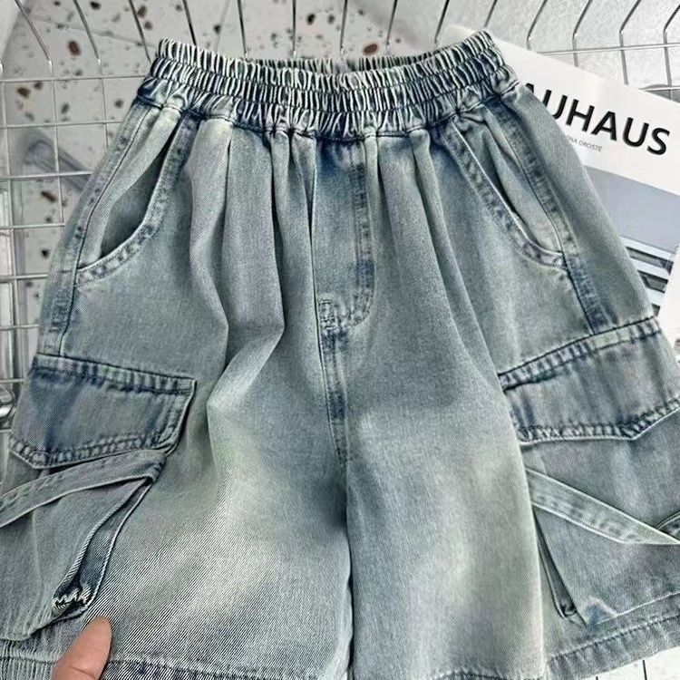 남학생 바지 여름 소년 잘 생긴 데님 반바지 2025 새로운 중소 어린이 유행 작업복 바지 학생 에디션스토어 가기