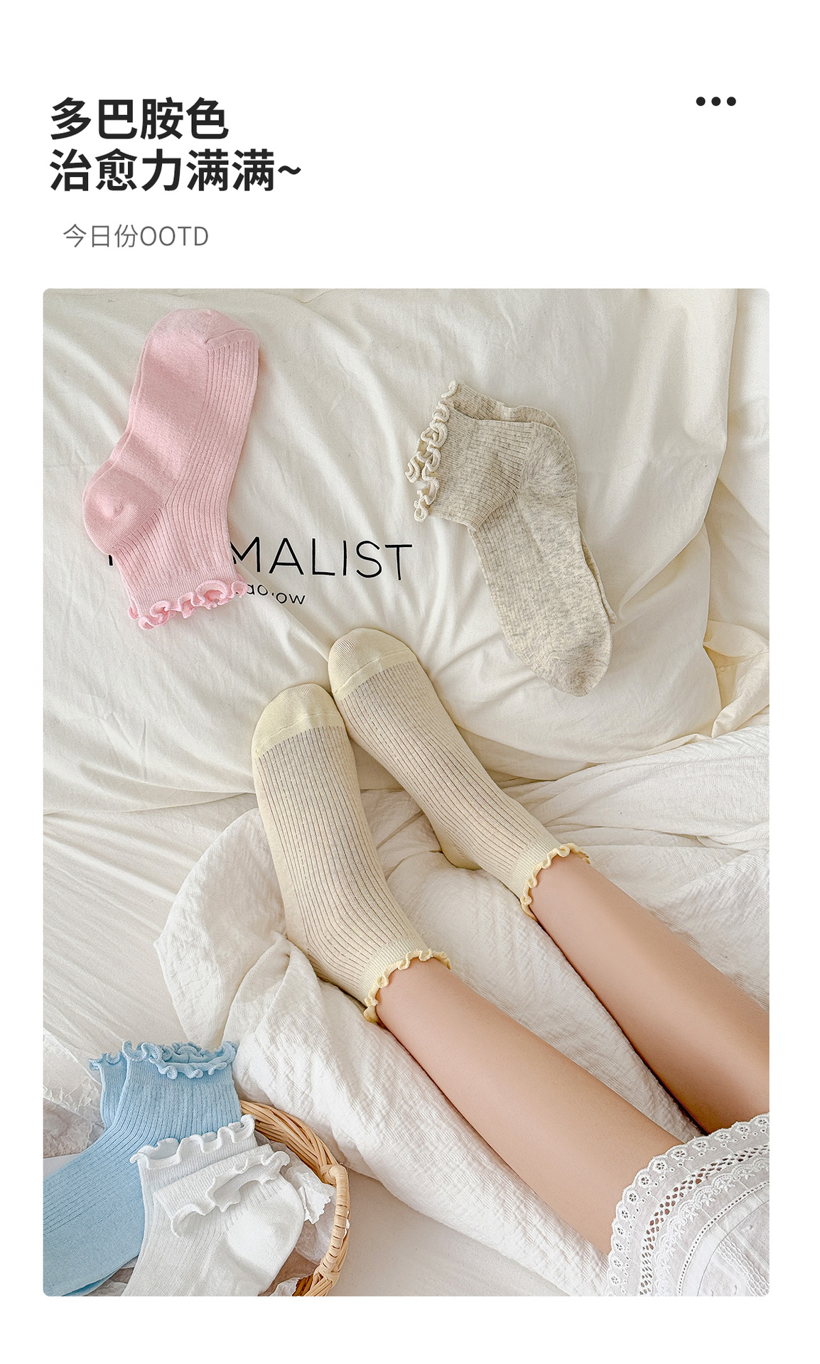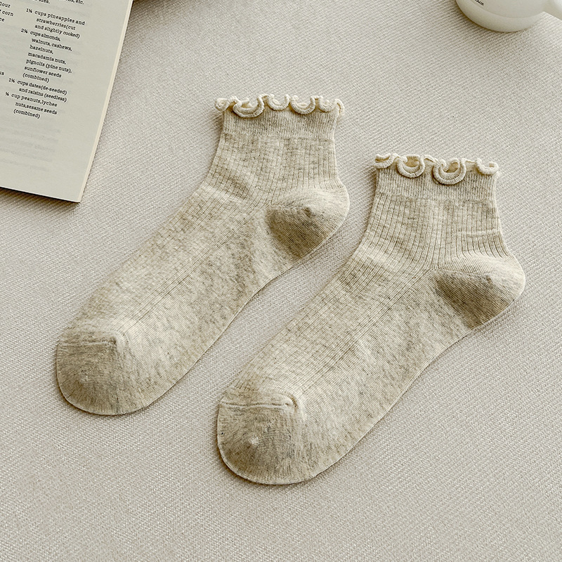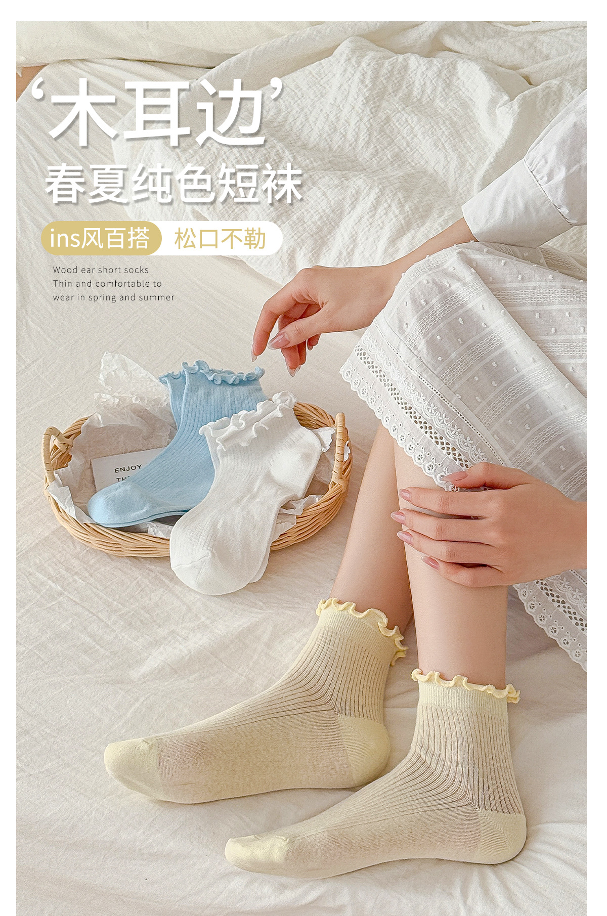 나무 귀 양말 여성의 봄과 여름 얇은 짧은 튜브 양말 일본식 바람 레이스 양말 단색 달 양말 여성 양말 도매스토어 가기