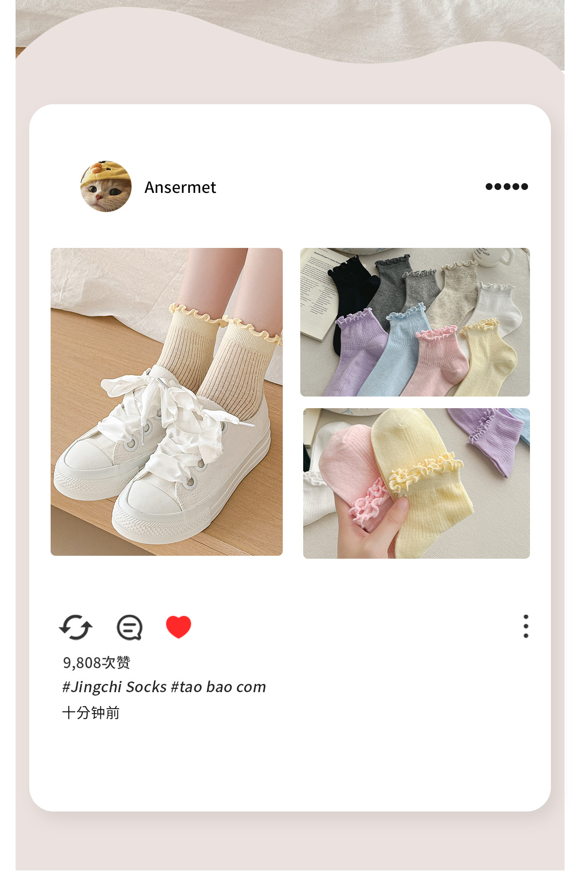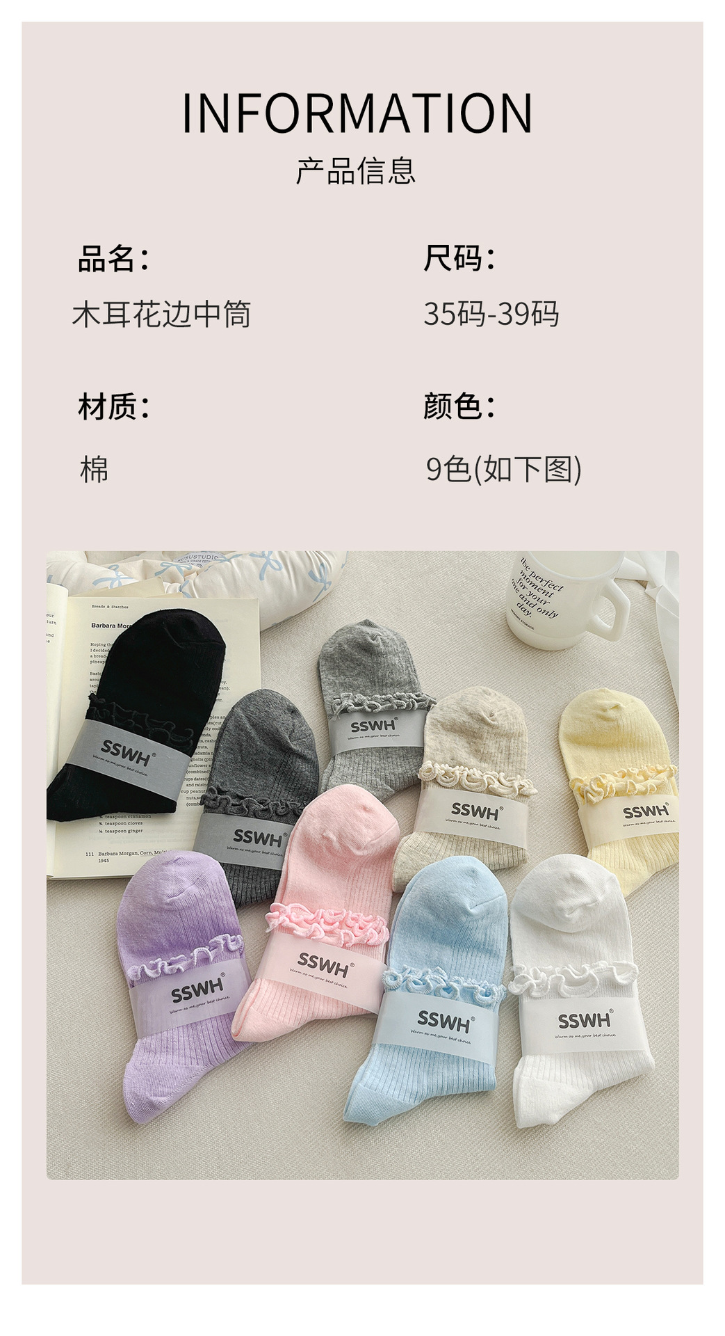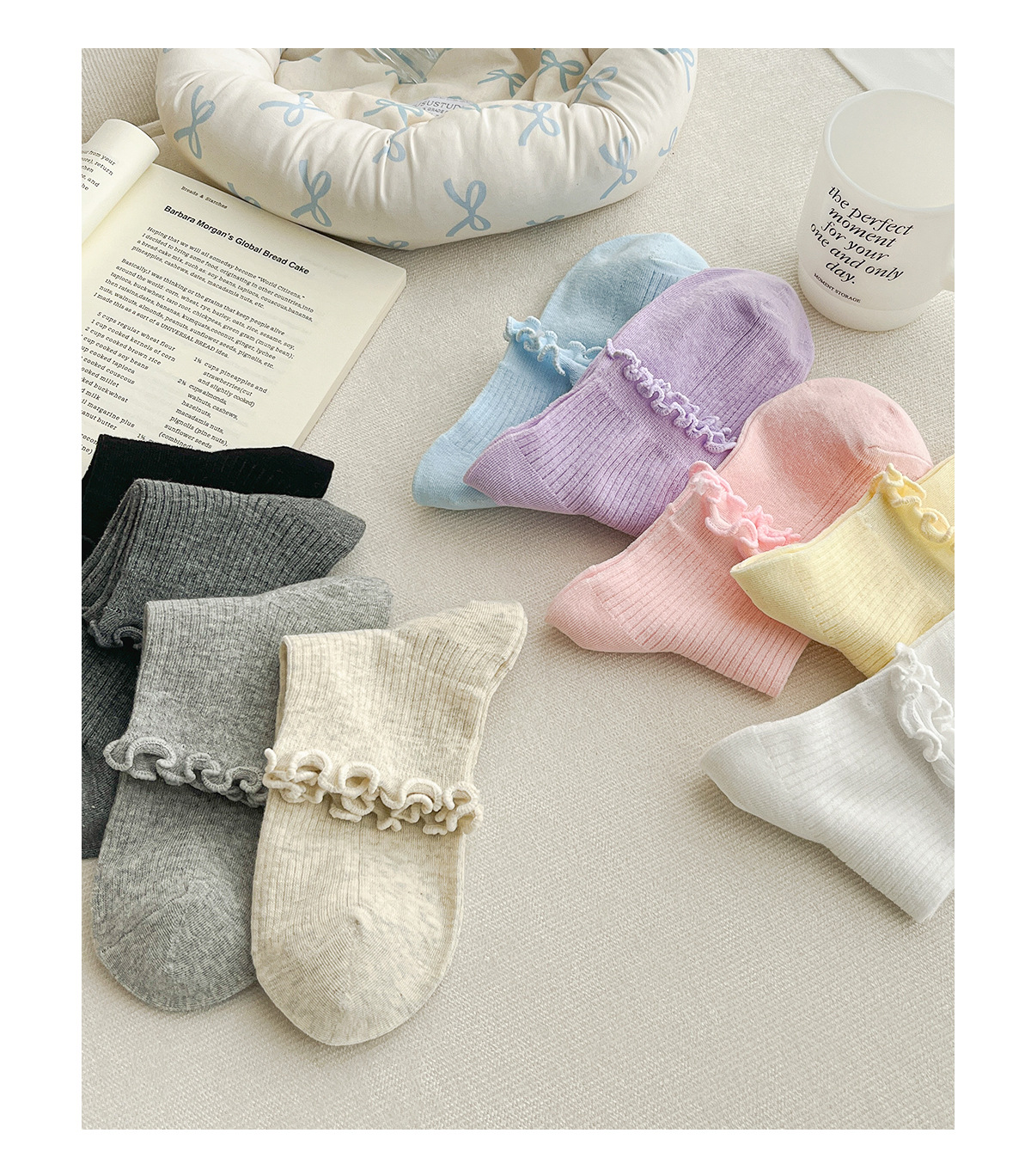 나무 귀 양말 여성의 봄과 여름 얇은 짧은 튜브 양말 일본식 바람 레이스 양말 단색 달 양말 여성 양말 도매스토어 가기