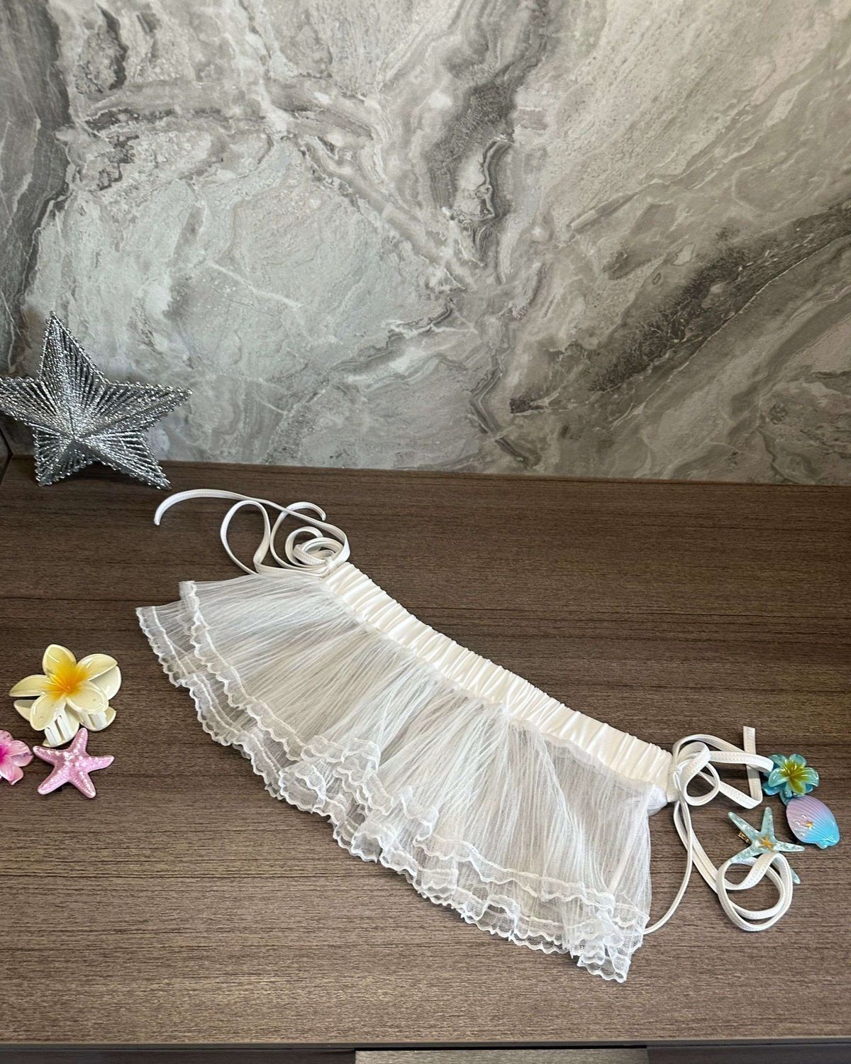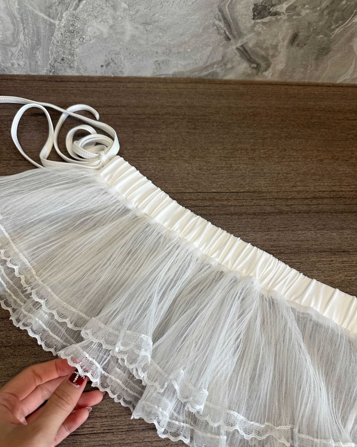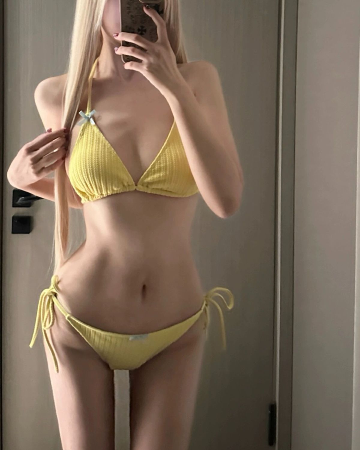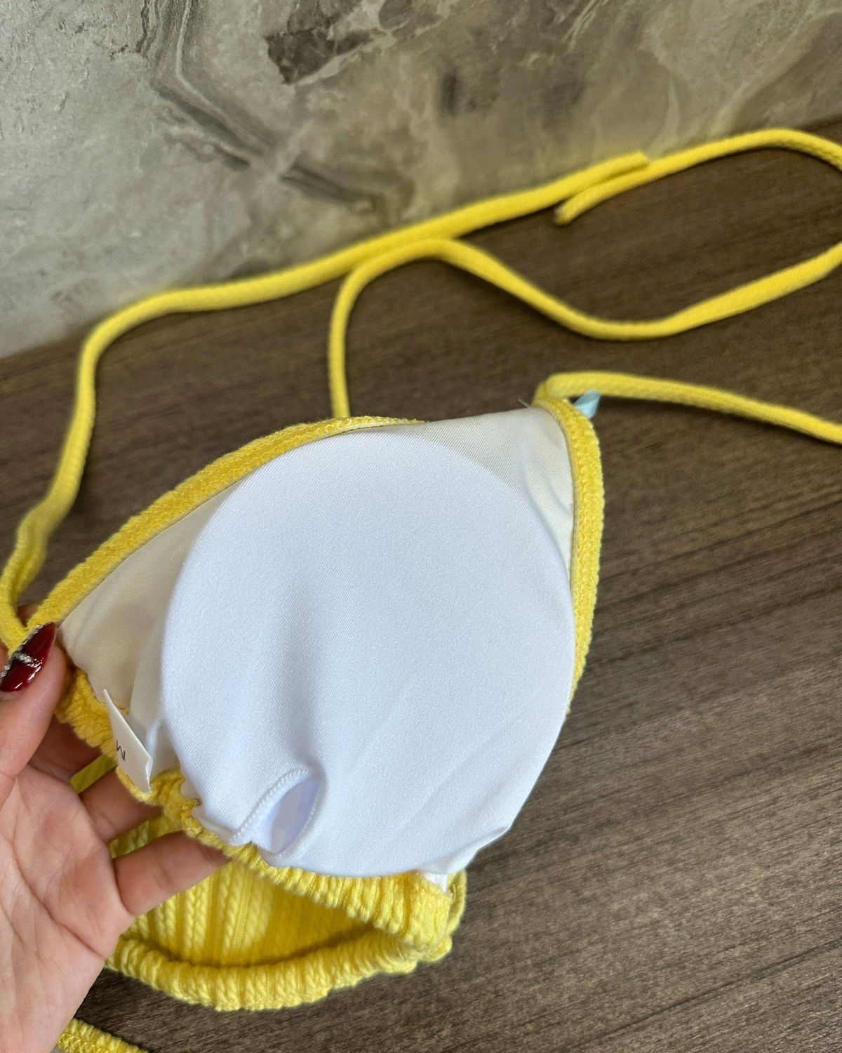 [작은 밀크 푸] 귀여운 노란색 주름진 소녀 순수한 섹시한 수영복 비키니 3 점 스플릿 온천