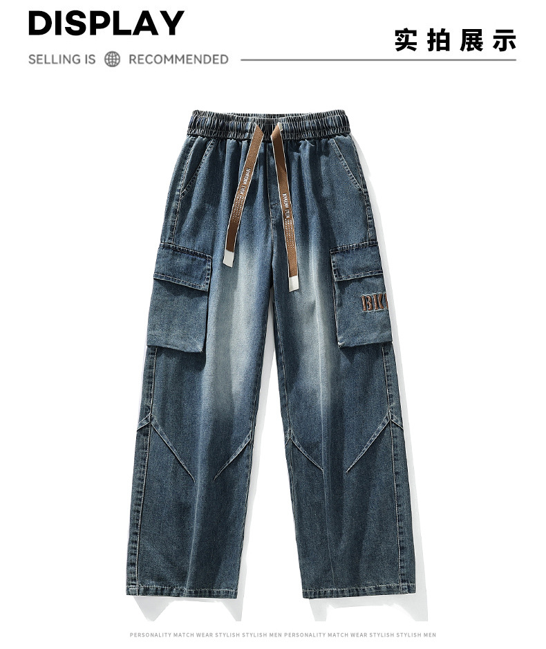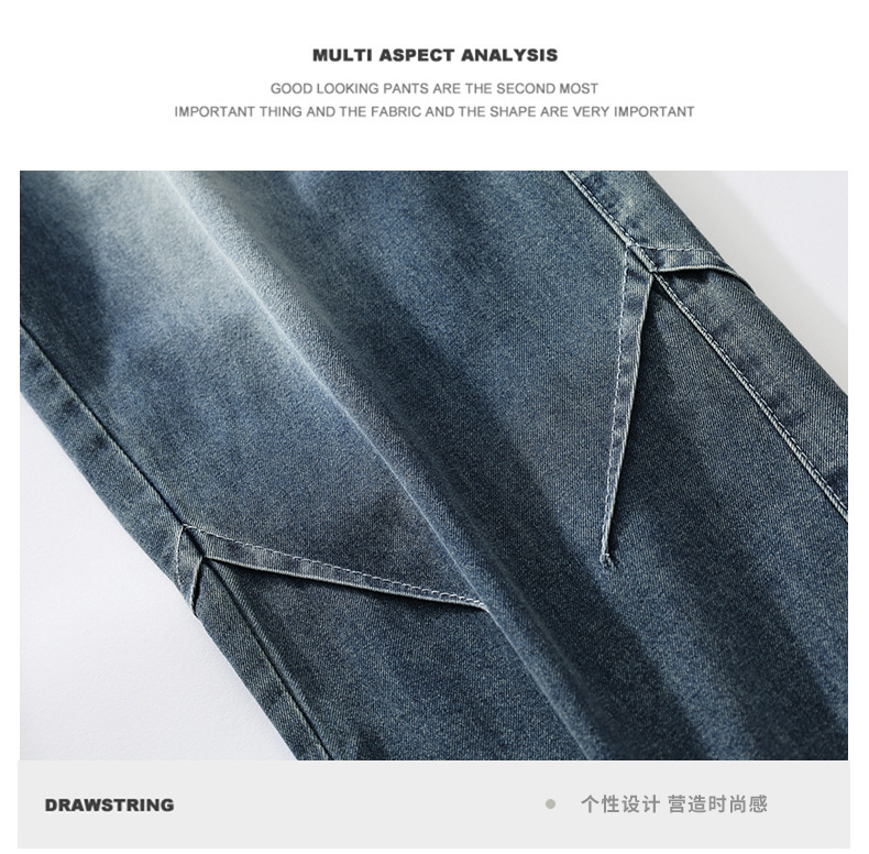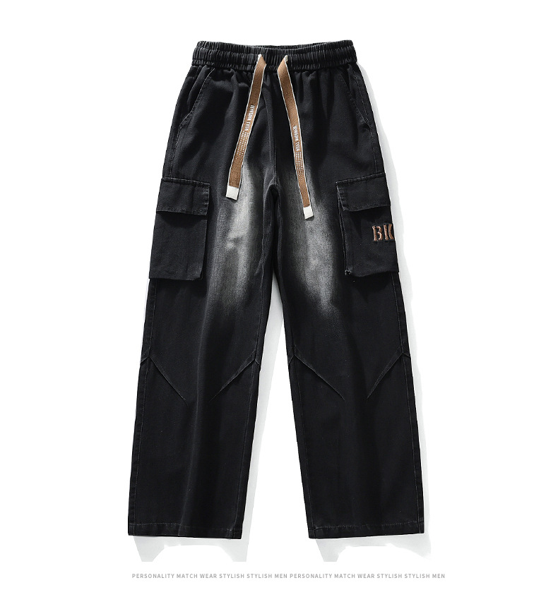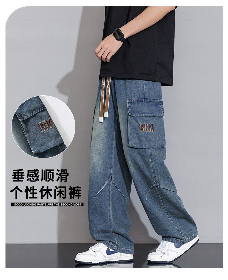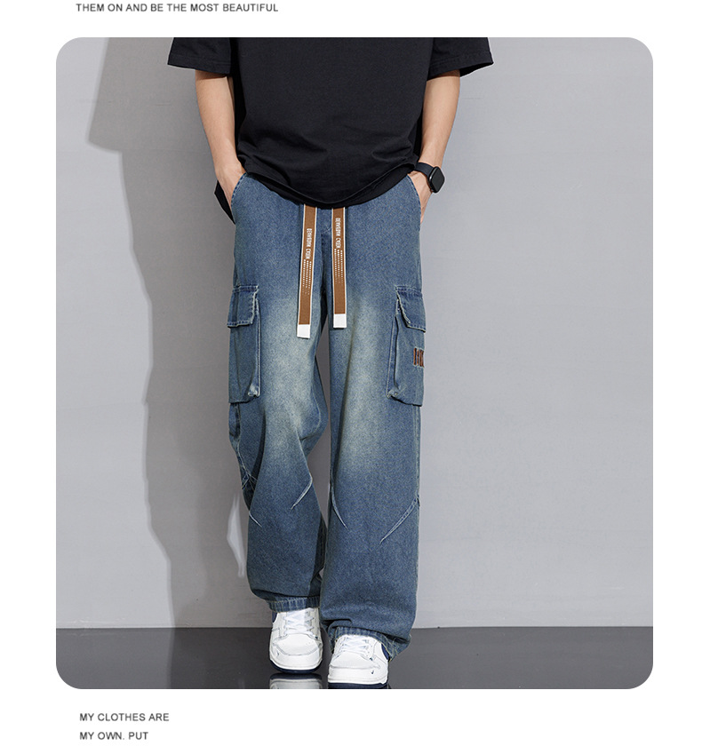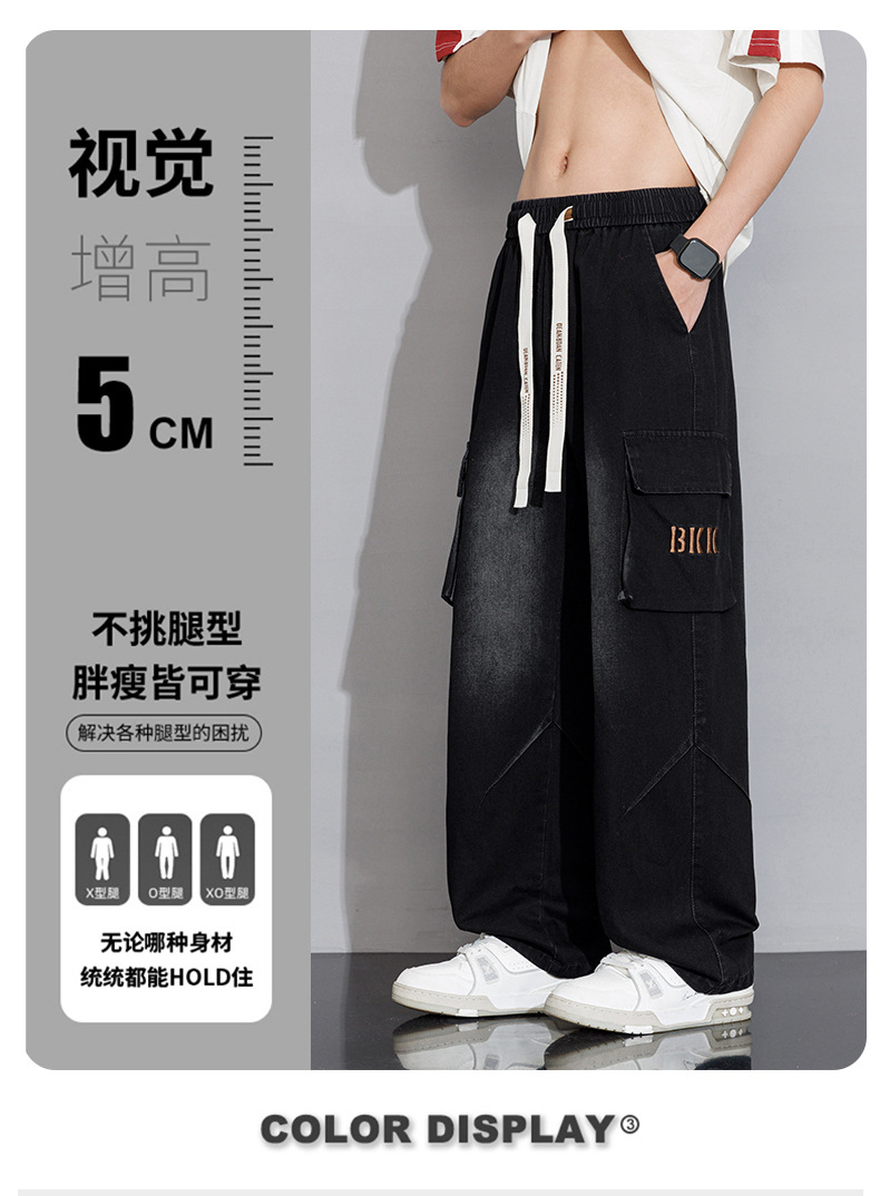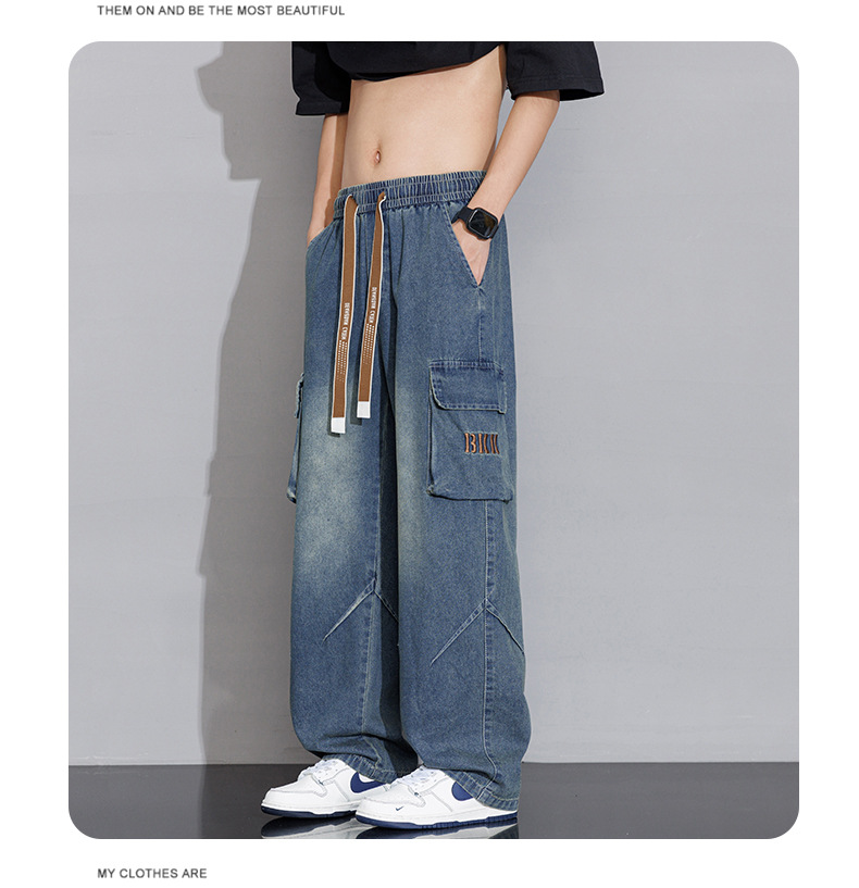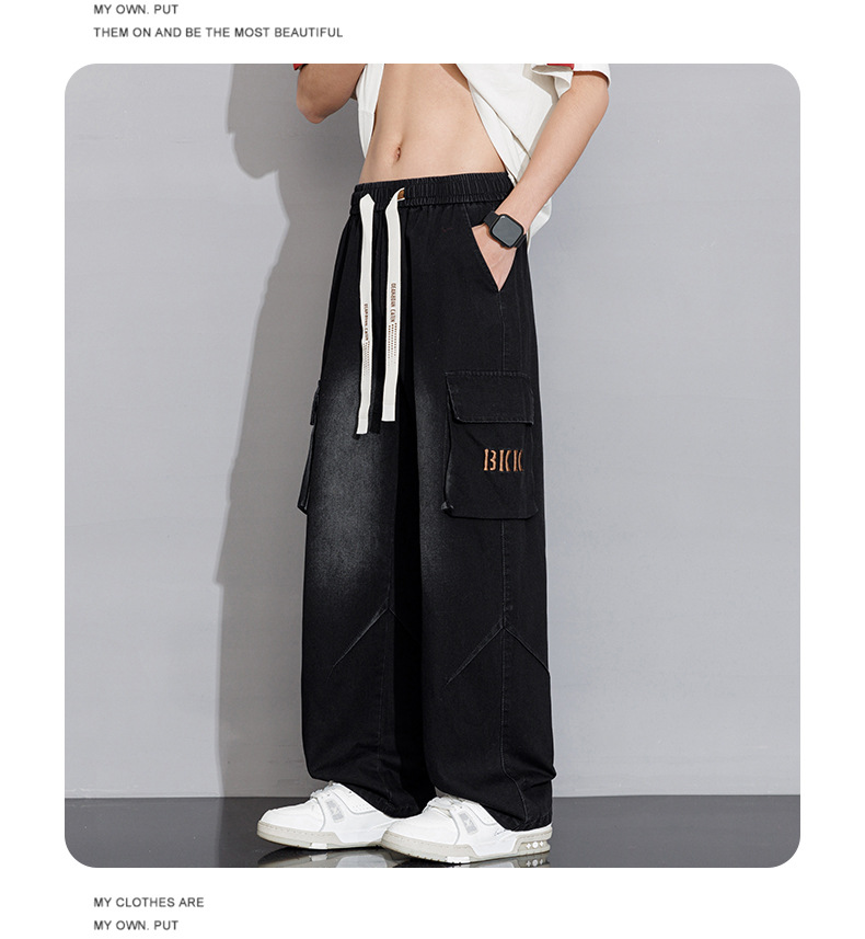 트렌디 한 브랜드 느슨한 스트레이트 플러스 사이즈 청바지 유행 하이 드로우 스트링 플러스 대형 대형 남성용 주술 바지스토어 가기