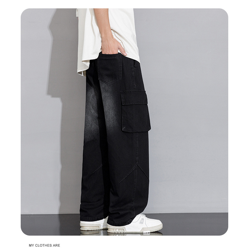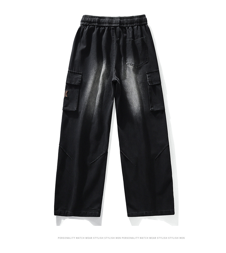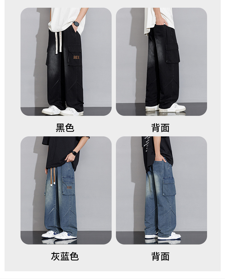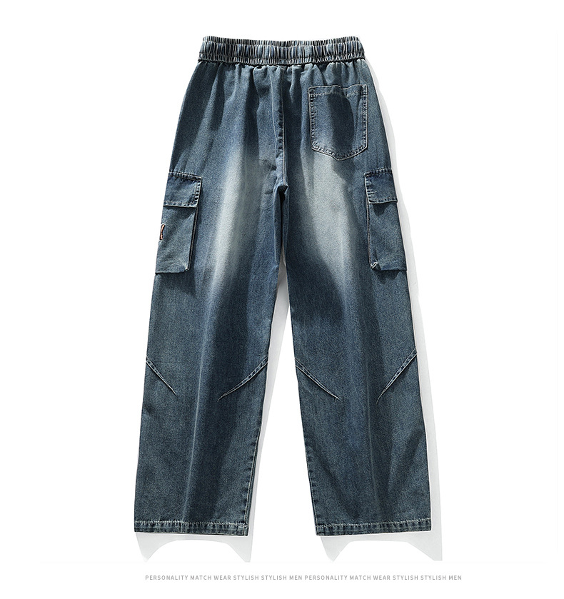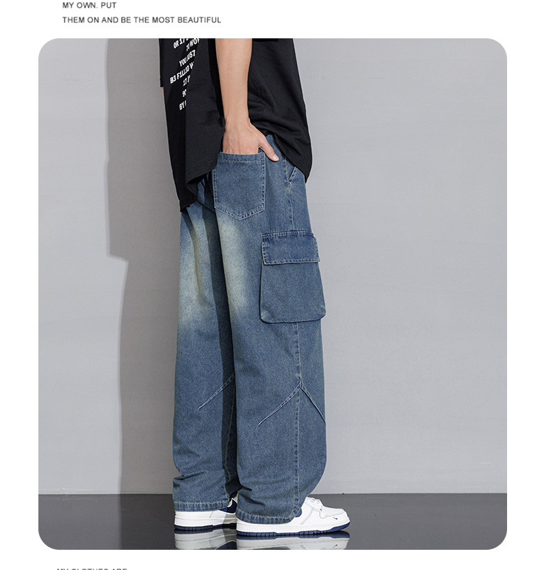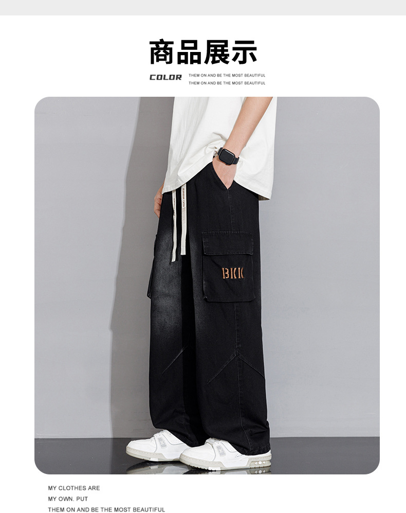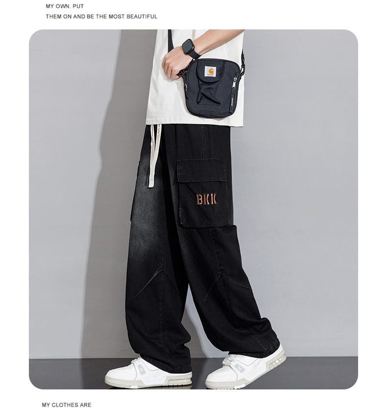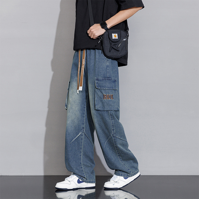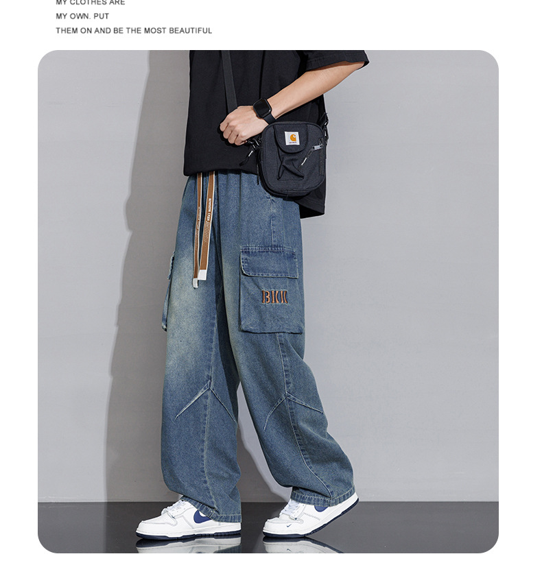 트렌디 한 브랜드 느슨한 스트레이트 플러스 사이즈 청바지 유행 하이 드로우 스트링 플러스 대형 대형 남성용 주술 바지스토어 가기