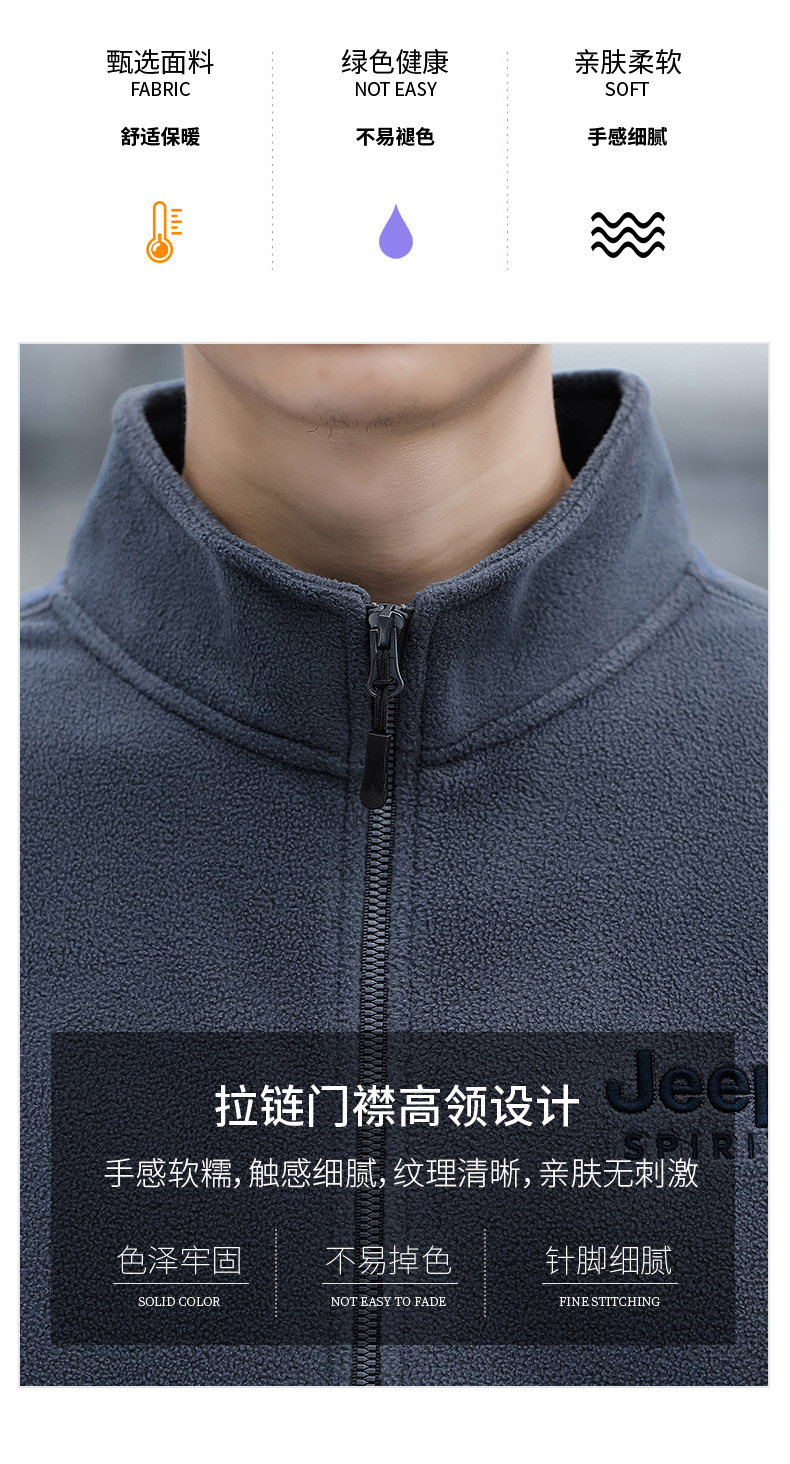 남자를위한 JEEP SPIRIT 양털 스웨터 가을 기모 모든 경기 단색 캐주얼 스포츠 느슨한 카디건스토어 가기