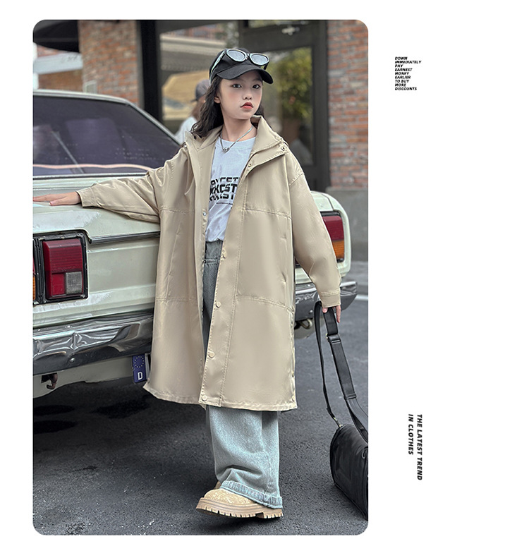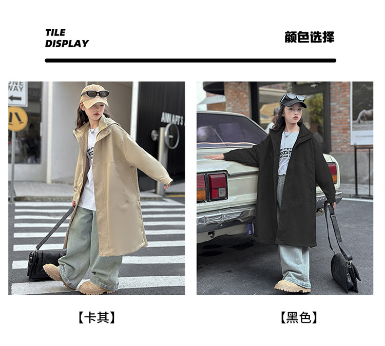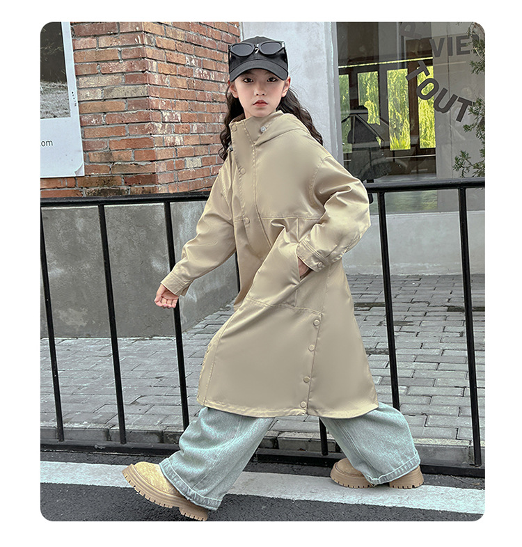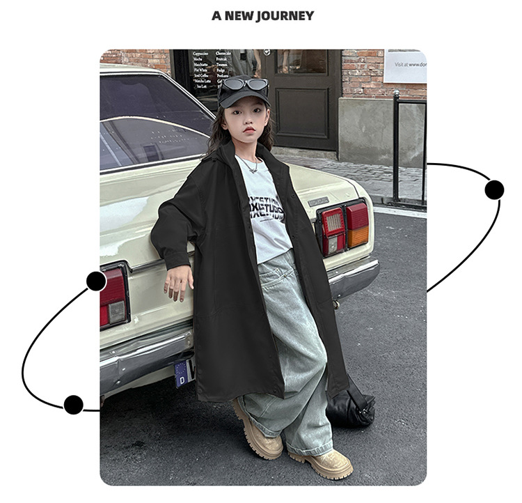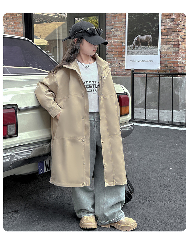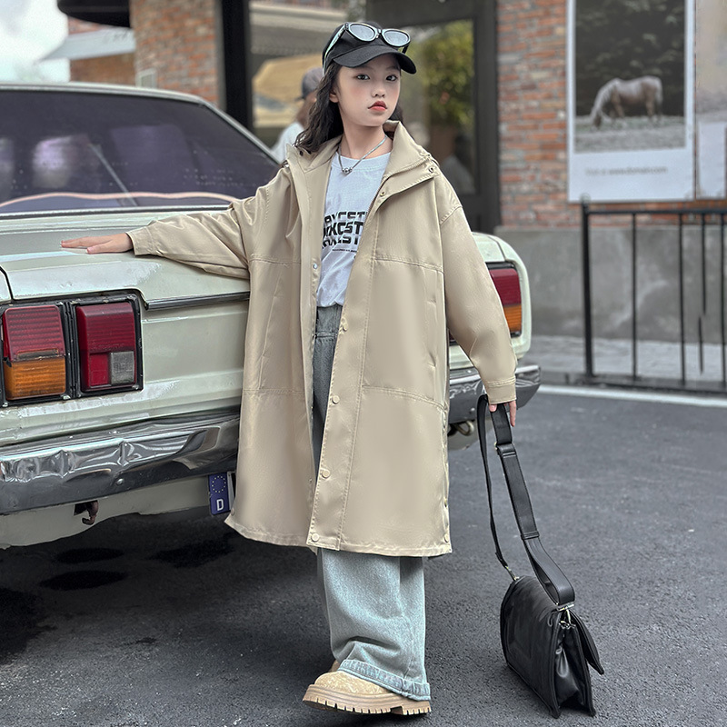 소녀 중간 길이의 코트 봄 2025 새로운 어린이 단색 유행 서양식 코트 유행 루즈 코트스토어 가기