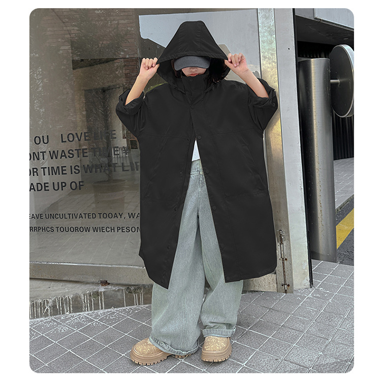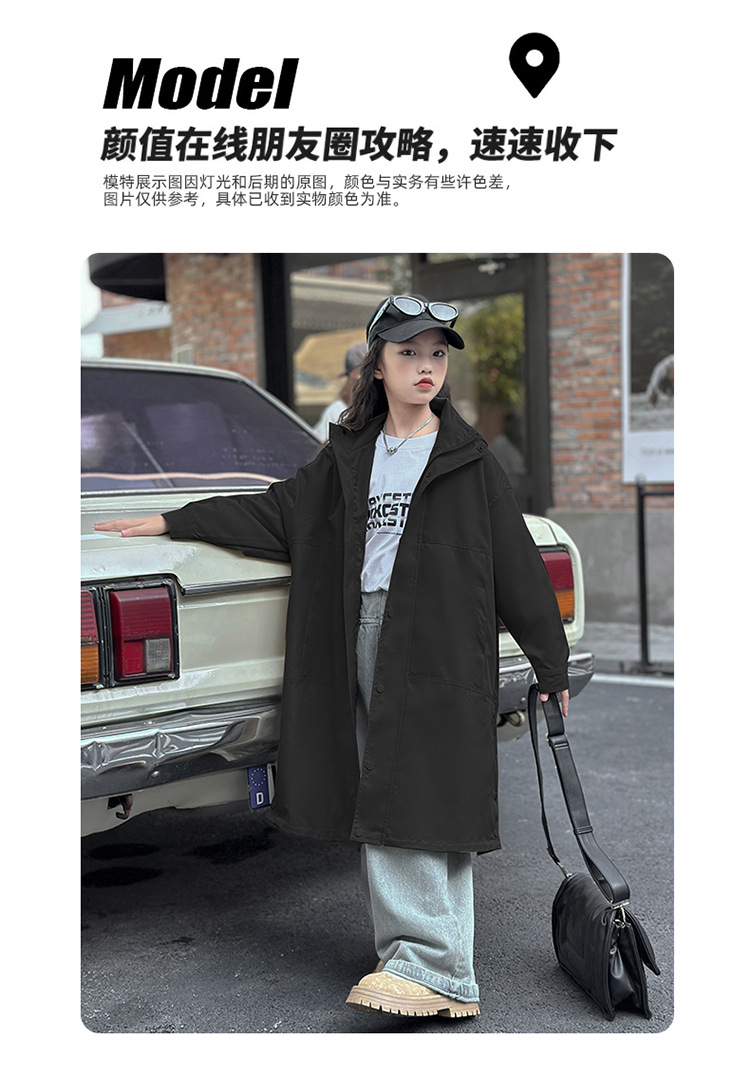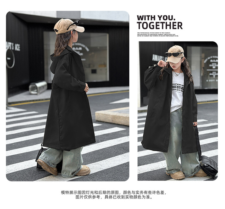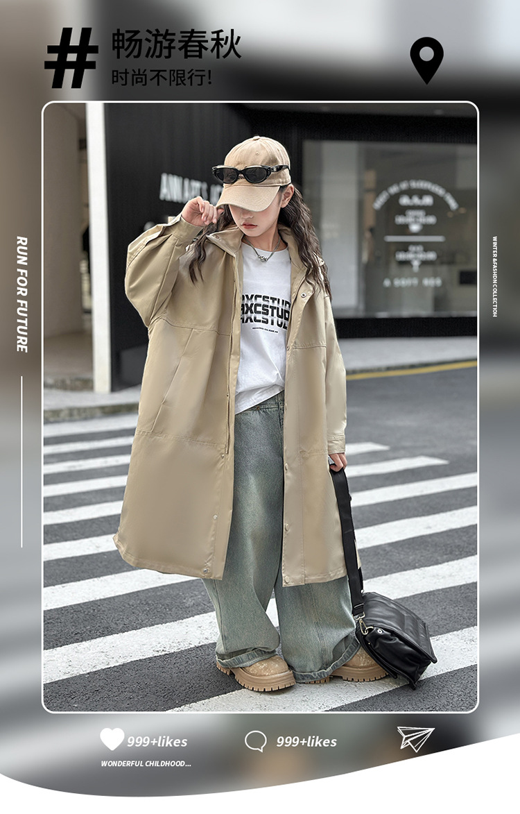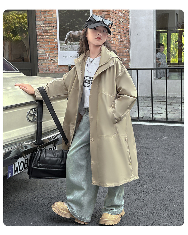소녀 중간 길이의 코트 봄 2025 새로운 어린이 단색 유행 서양식 코트 유행 루즈 코트스토어 가기