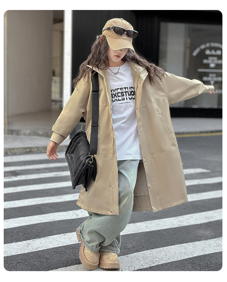 소녀 중간 길이의 코트 봄 2025 새로운 어린이 단색 유행 서양식 코트 유행 루즈 코트