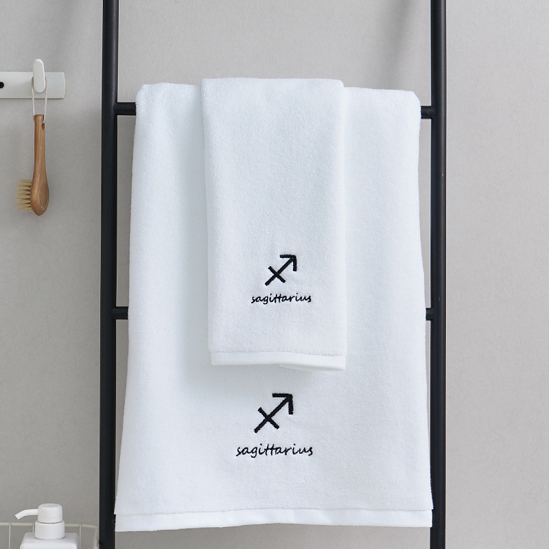 별자리 세트 수건 성격 자수 커플 수건 목욕 타월 흰색 자수 로고