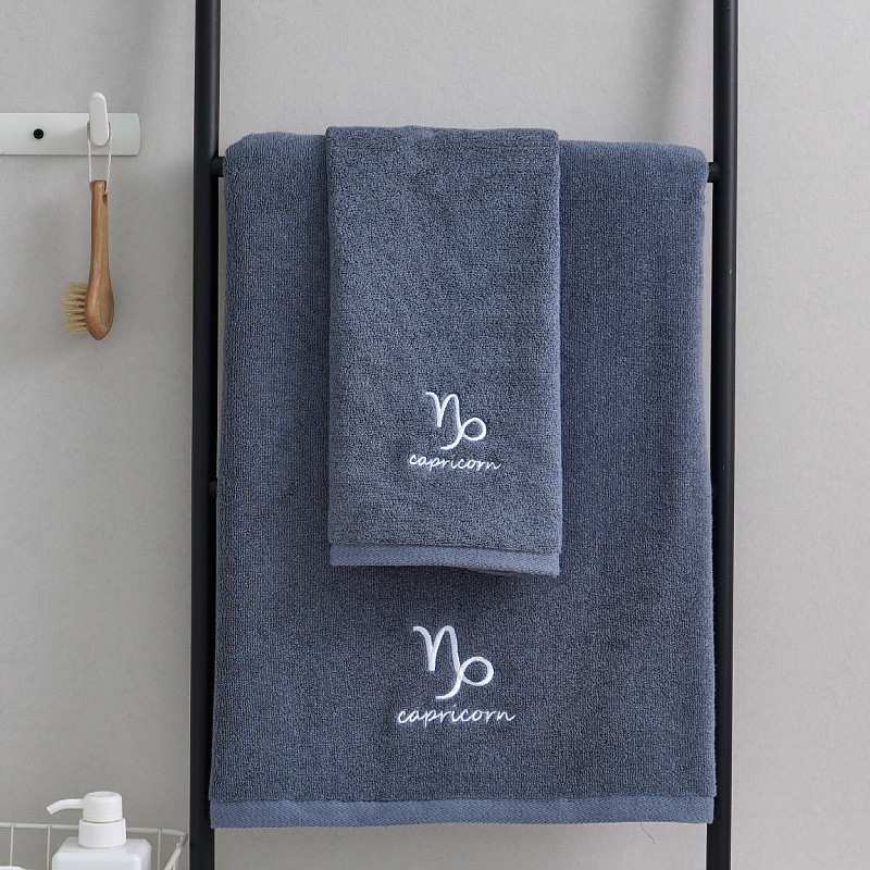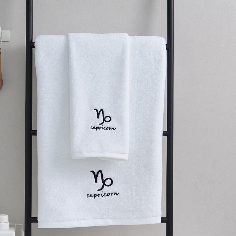 별자리 세트 수건 성격 자수 커플 수건 목욕 타월 흰색 자수 로고스토어 가기