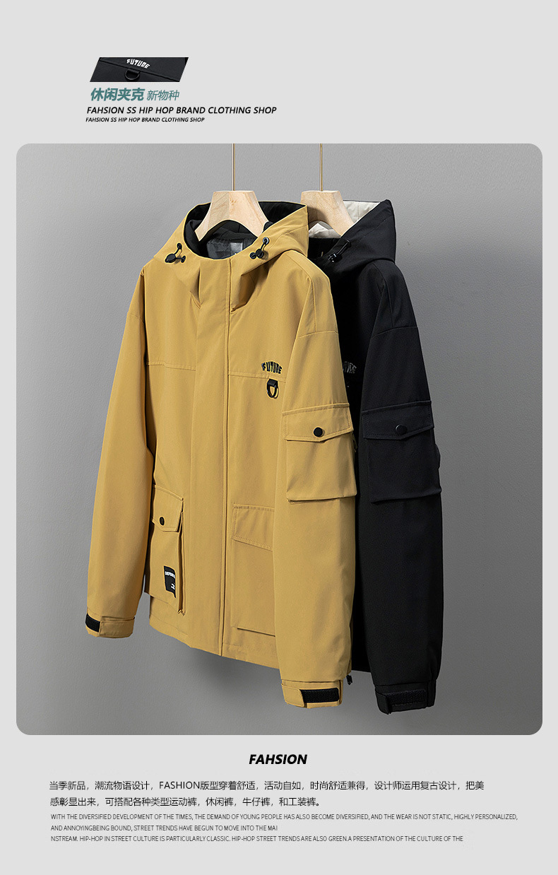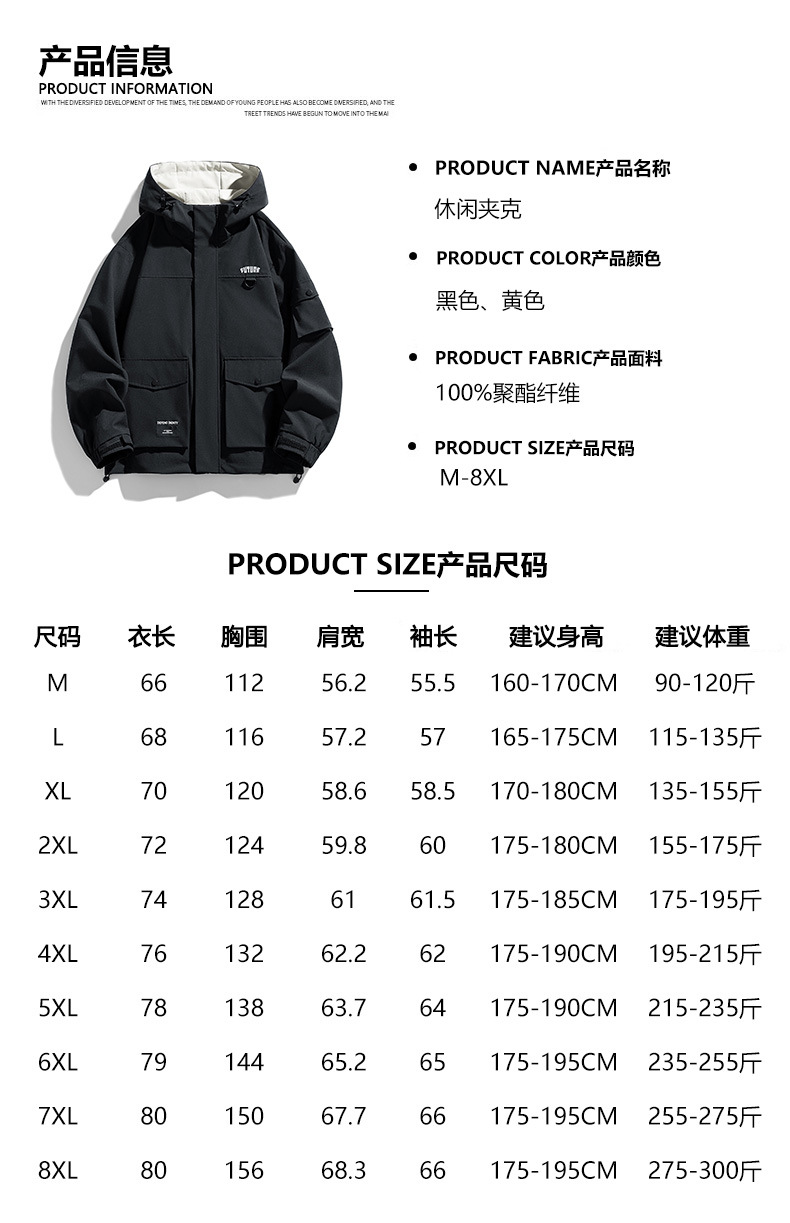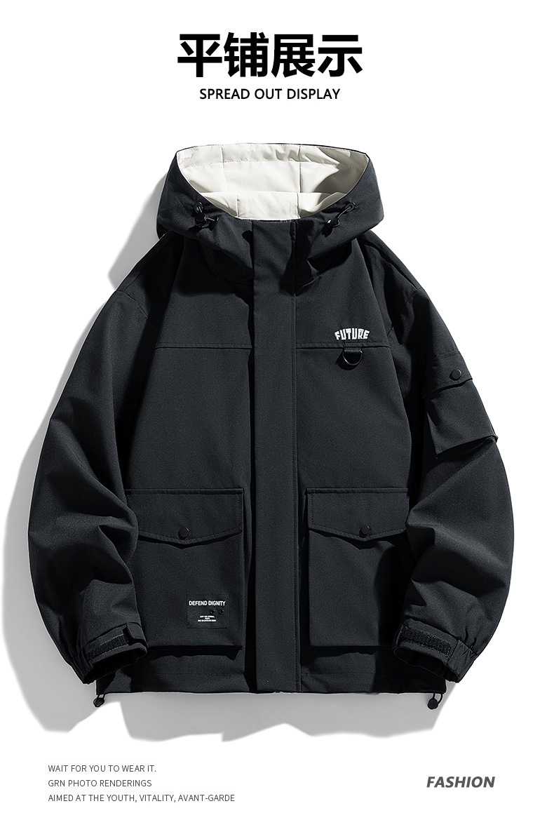 남자 충전 옷 2025 봄과 가을 새 M-8XL 느슨한 작업복 방수 재킷 후드 등산 세트스토어 가기