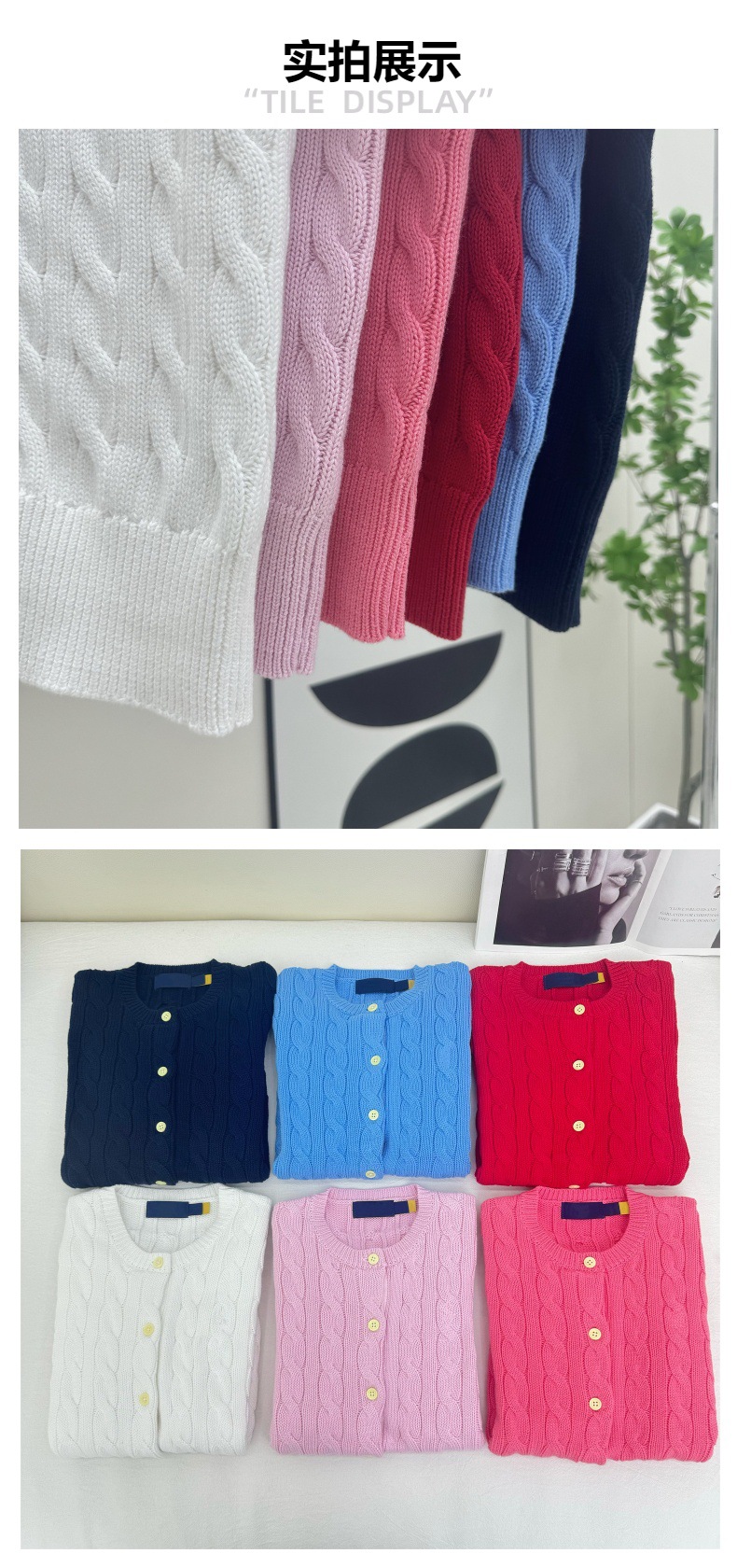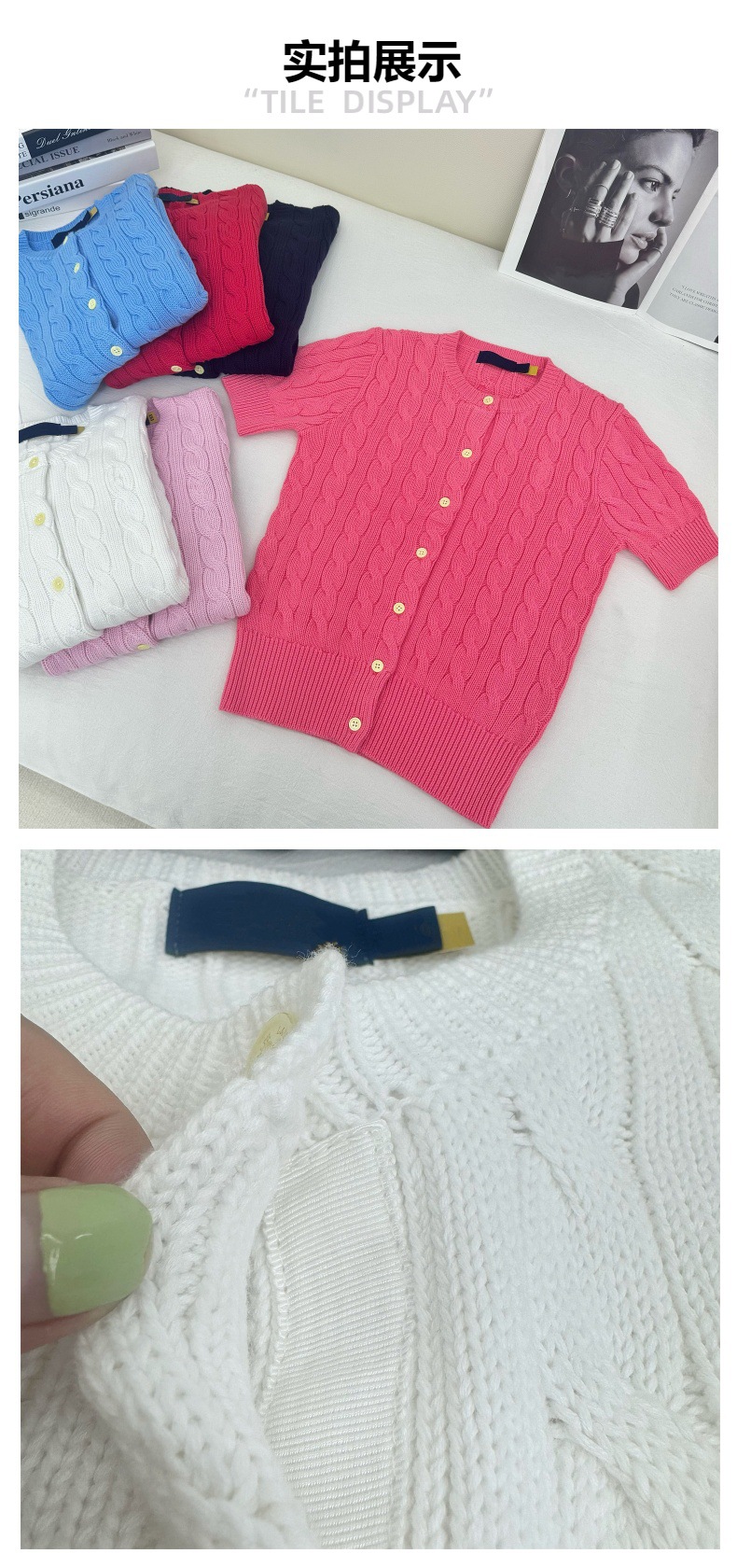 RL 러프 포니 자수 코튼 라운드 넥 트위스트 니트 반팔 카디건 여성용 슬림 핏스토어 가기