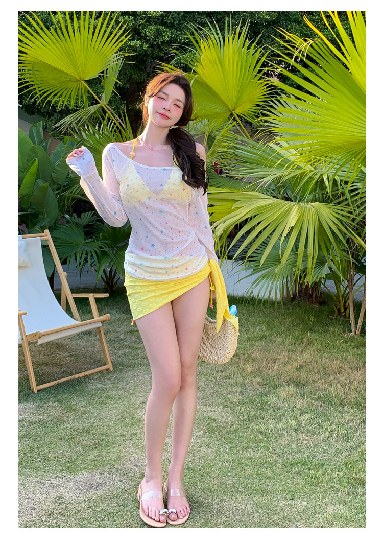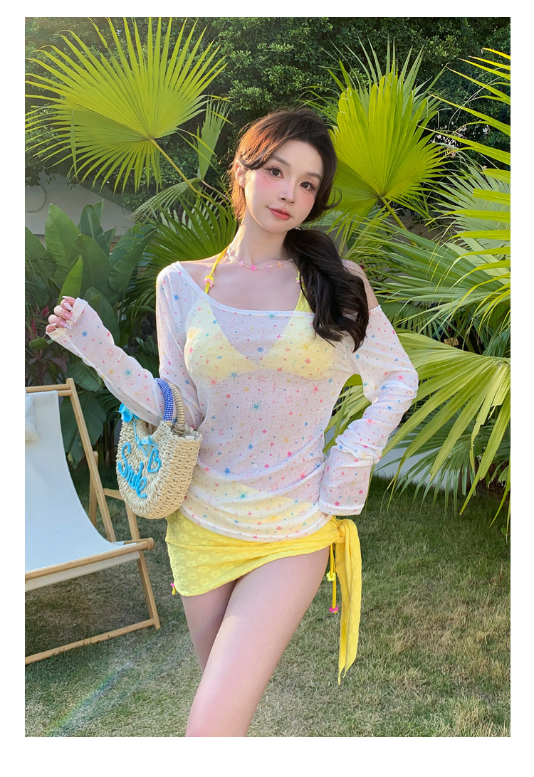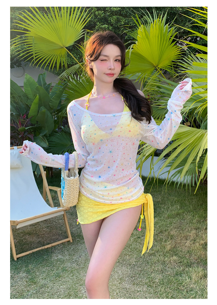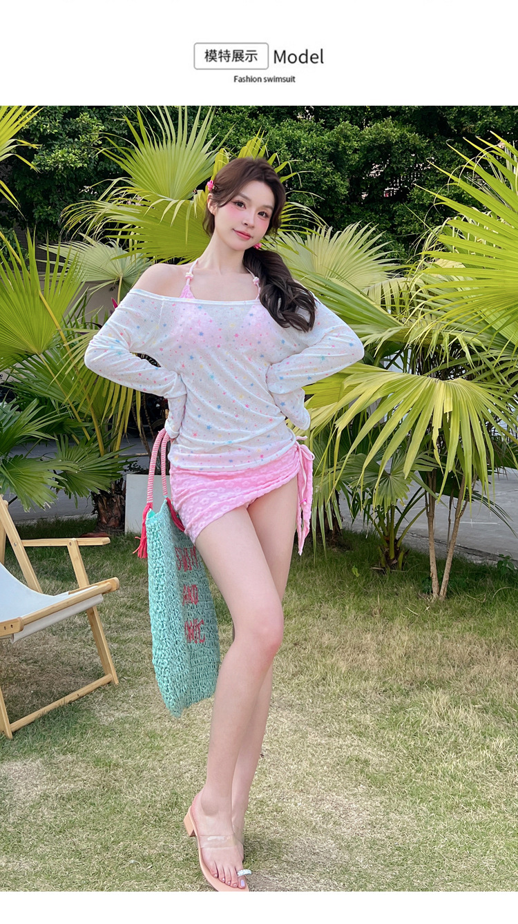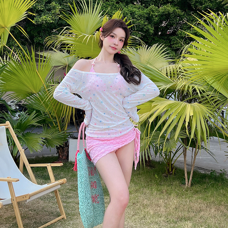 2025 새로운 비키니 수영복 여성 4 피스 세트 연인 스파이스 걸스 순수 욕망 인터넷 축하 휴가 작은 가슴 슬림 수영복