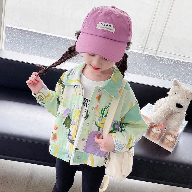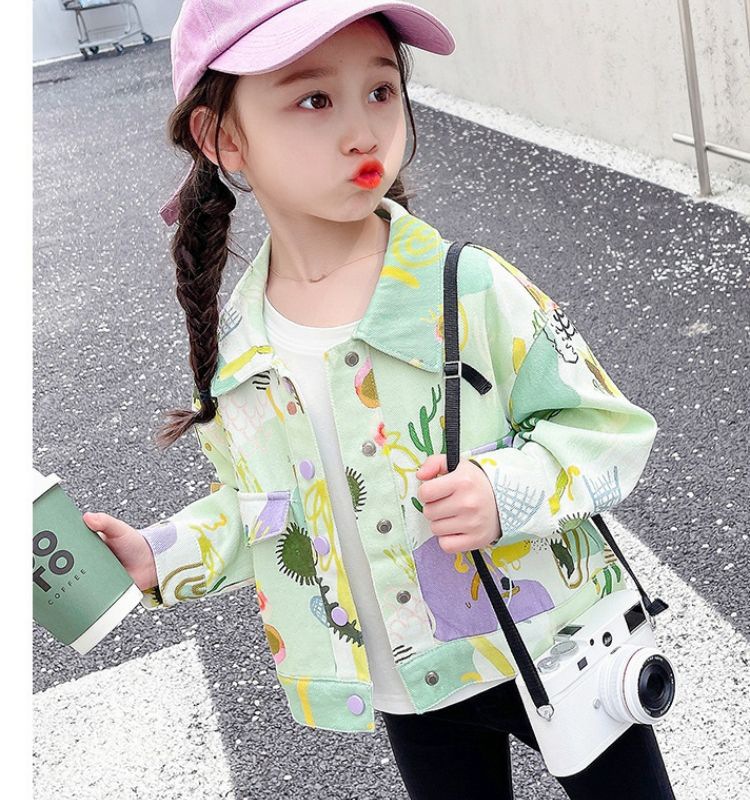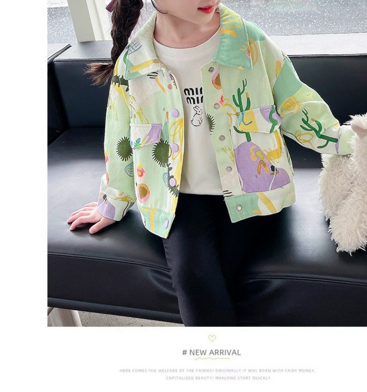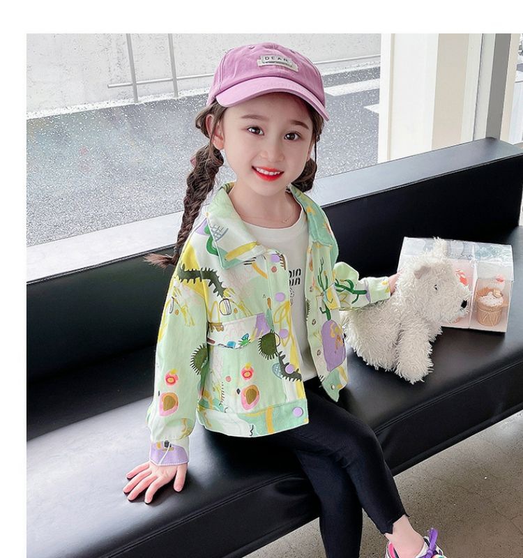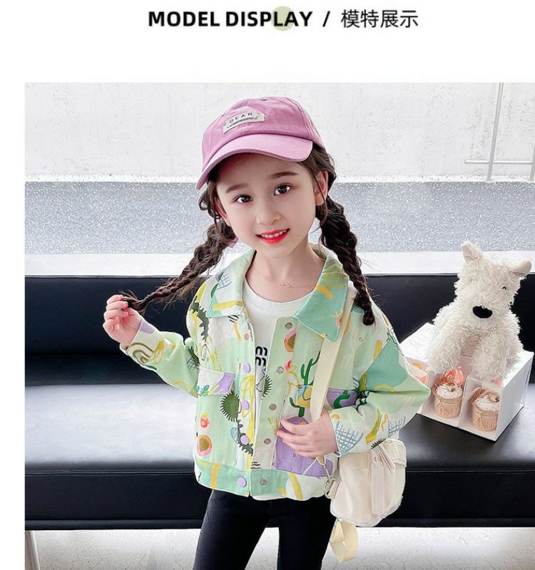 소녀 봄 코트 어린이 한국 스타일 인터넷 연예인 거리 최고 봄과 가을 어린이 낙서 코트 아기의 봄 코트스토어 가기
