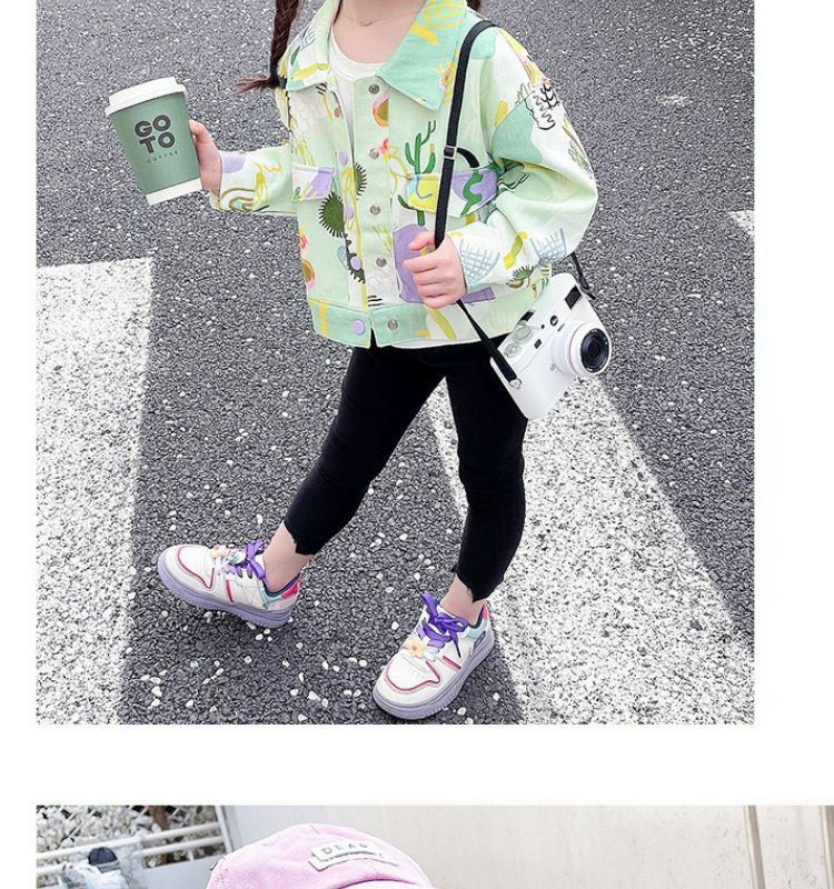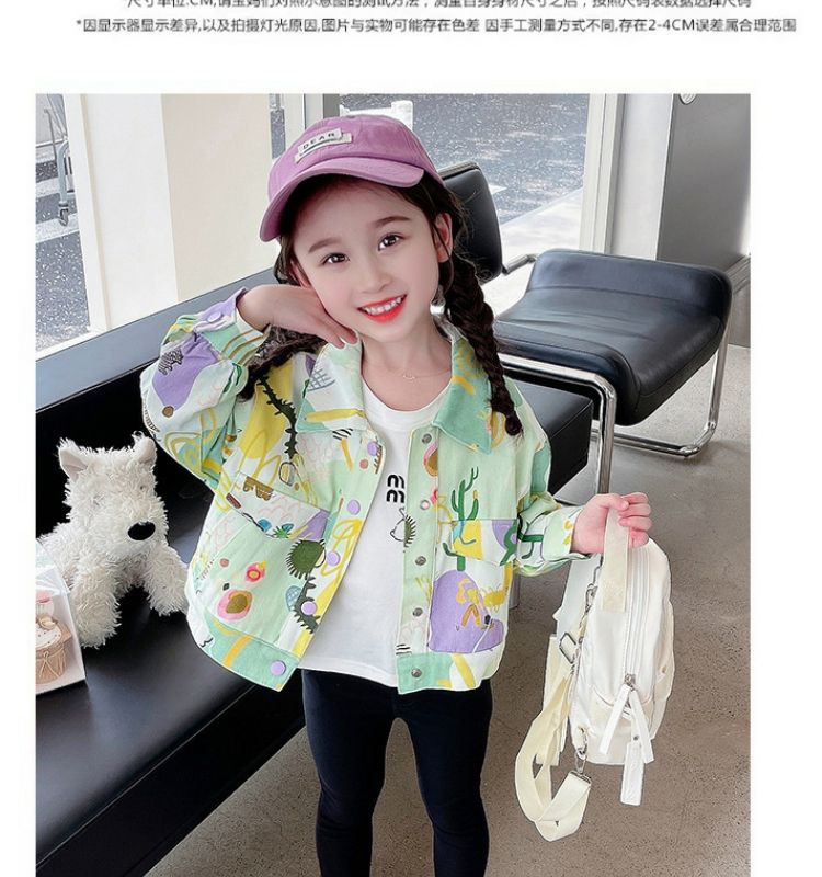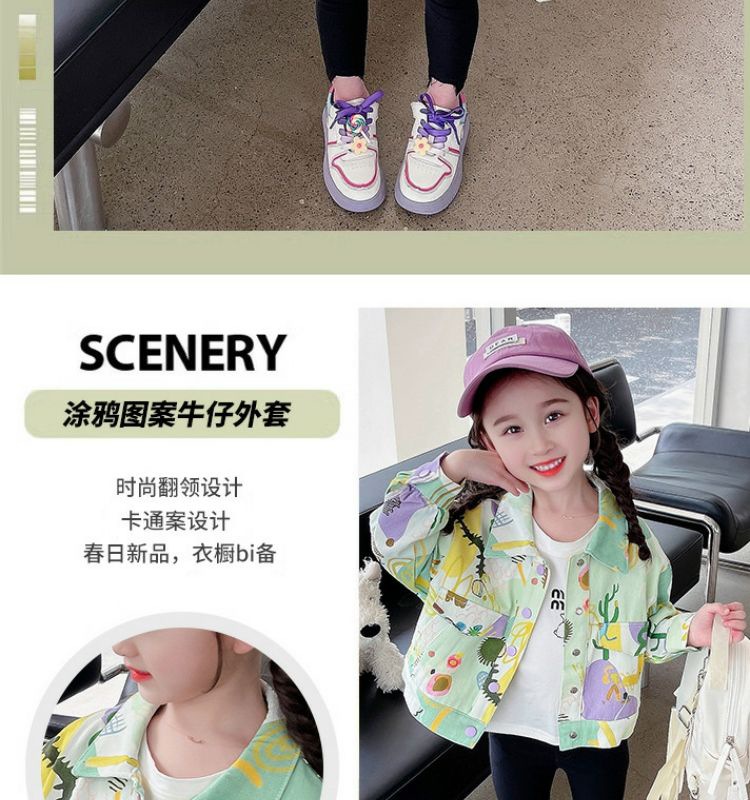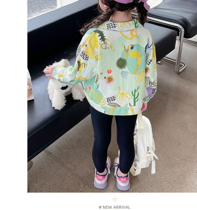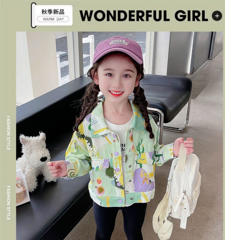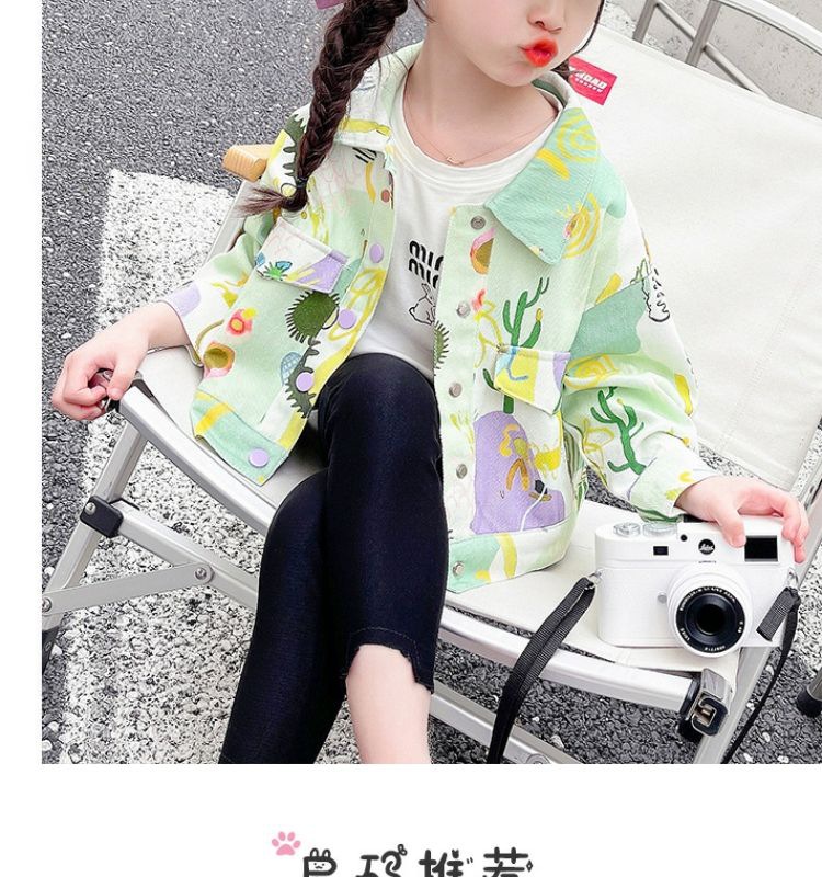 소녀 봄 코트 어린이 한국 스타일 인터넷 연예인 거리 최고 봄과 가을 어린이 낙서 코트 아기의 봄 코트스토어 가기