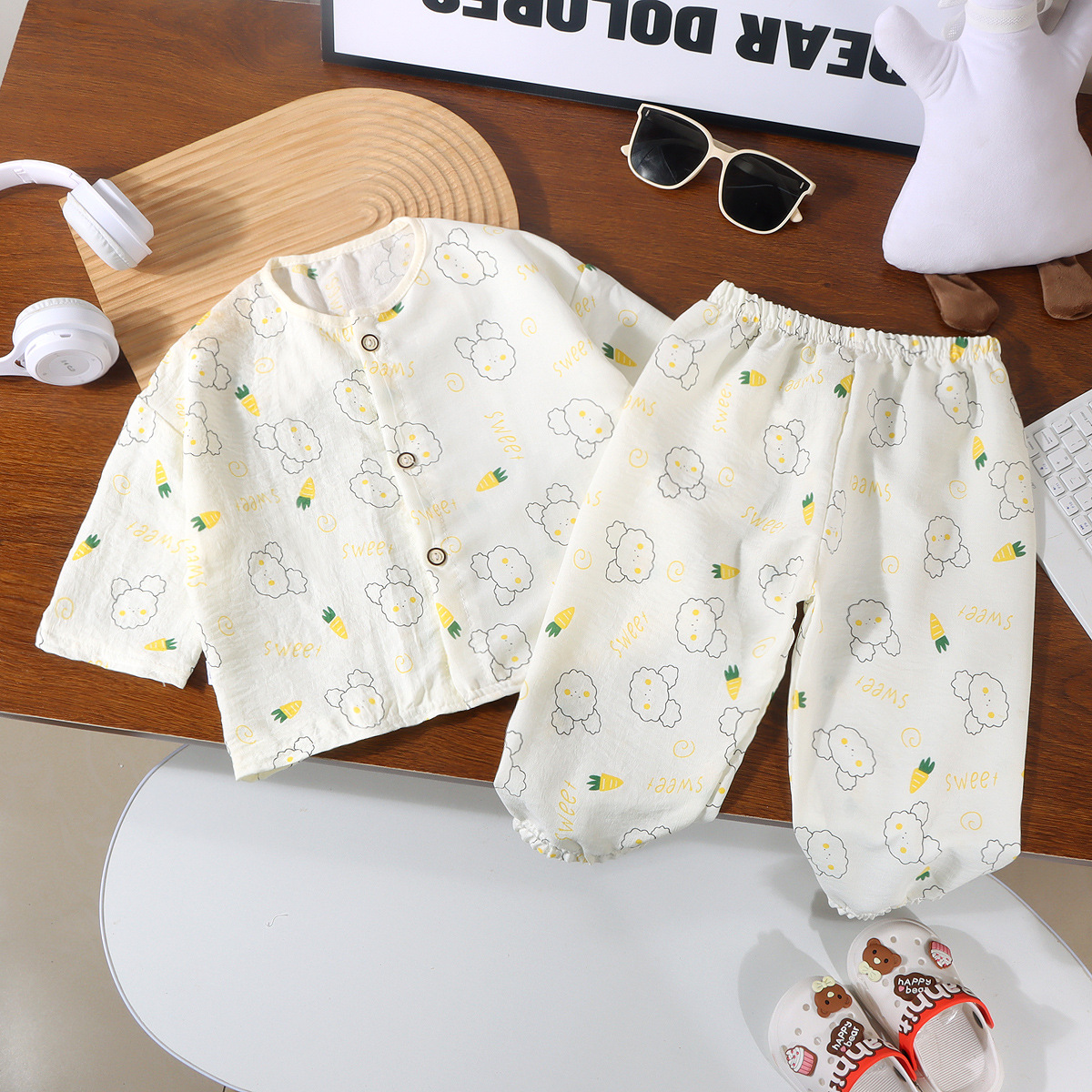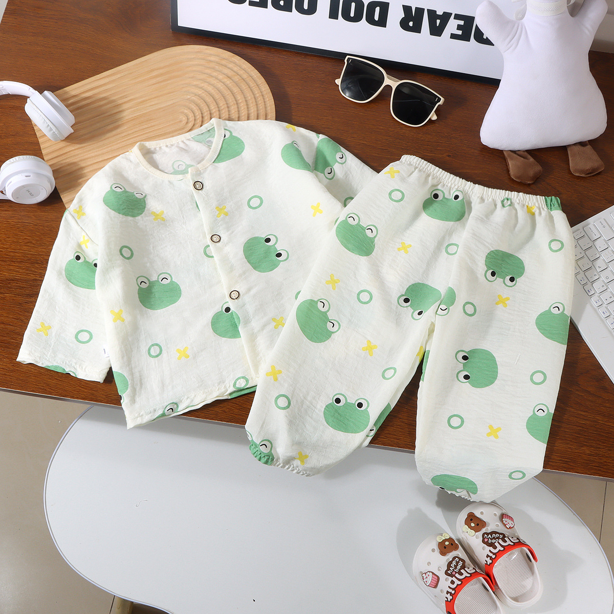 어린이 에어컨 의류 남아 여아 홈웨어 유아용 얇은 잠옷 세트 땀 흡수 만화 반팔
