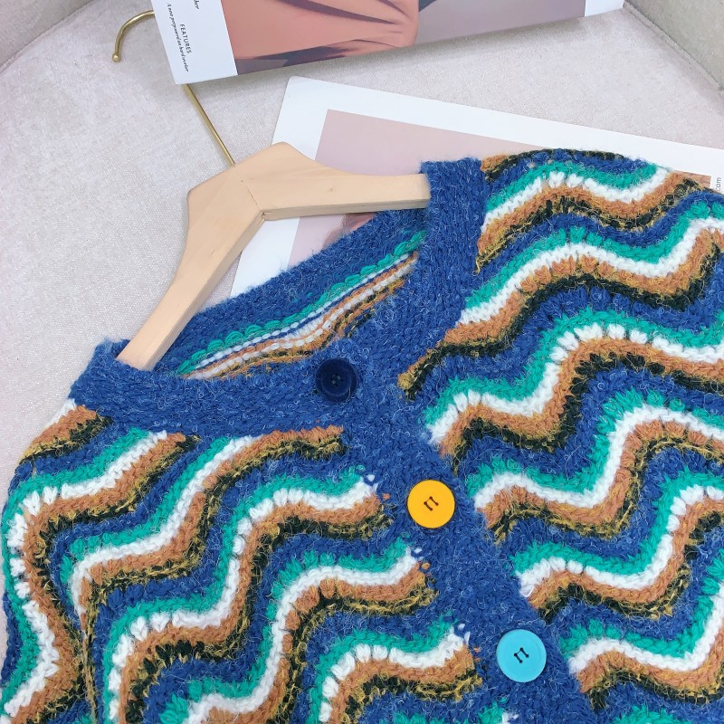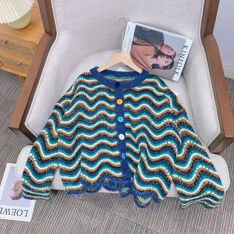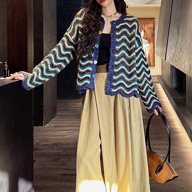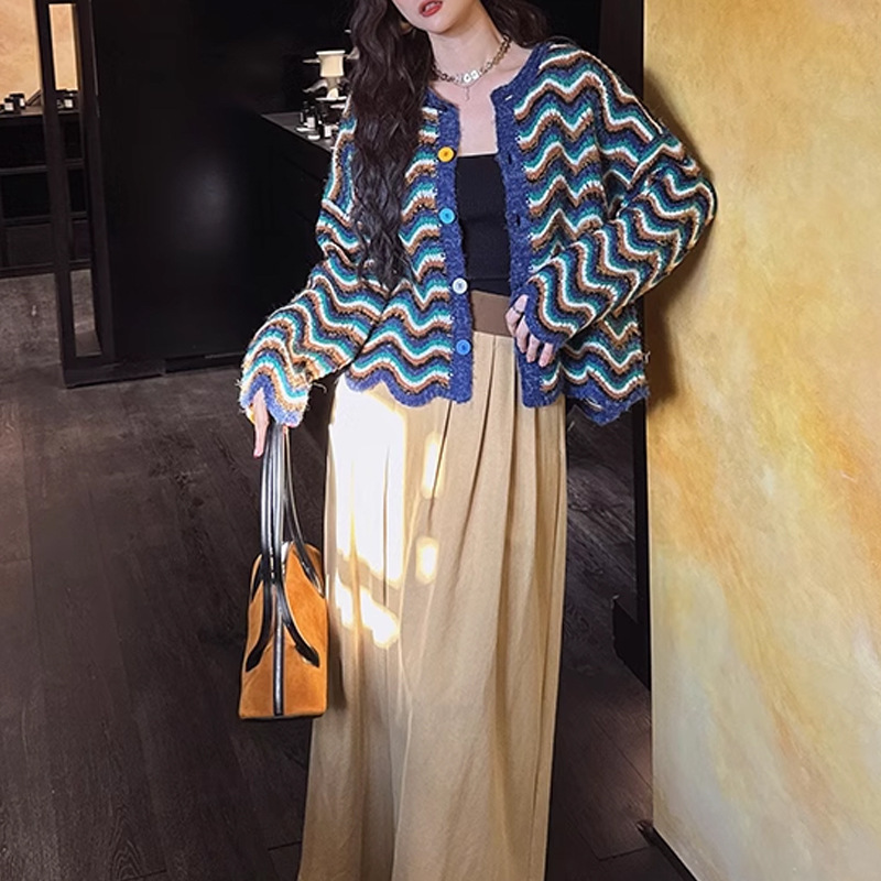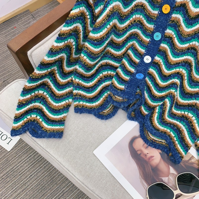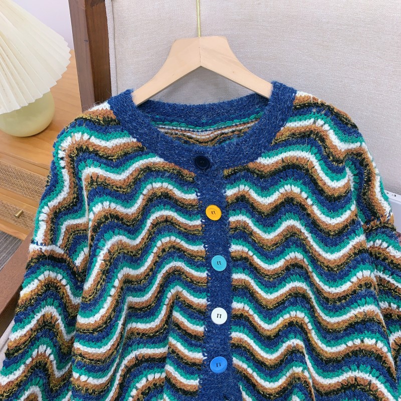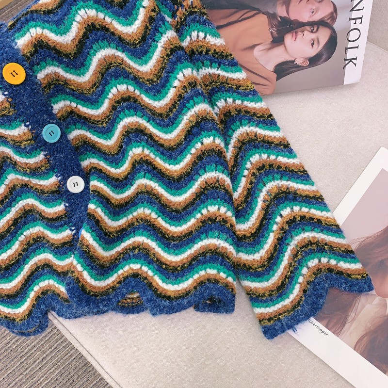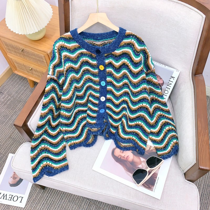 【지미안】 디자인 컬러블록 스트라이프 니트 가디건 (컬러블록 배색 스트라이프)