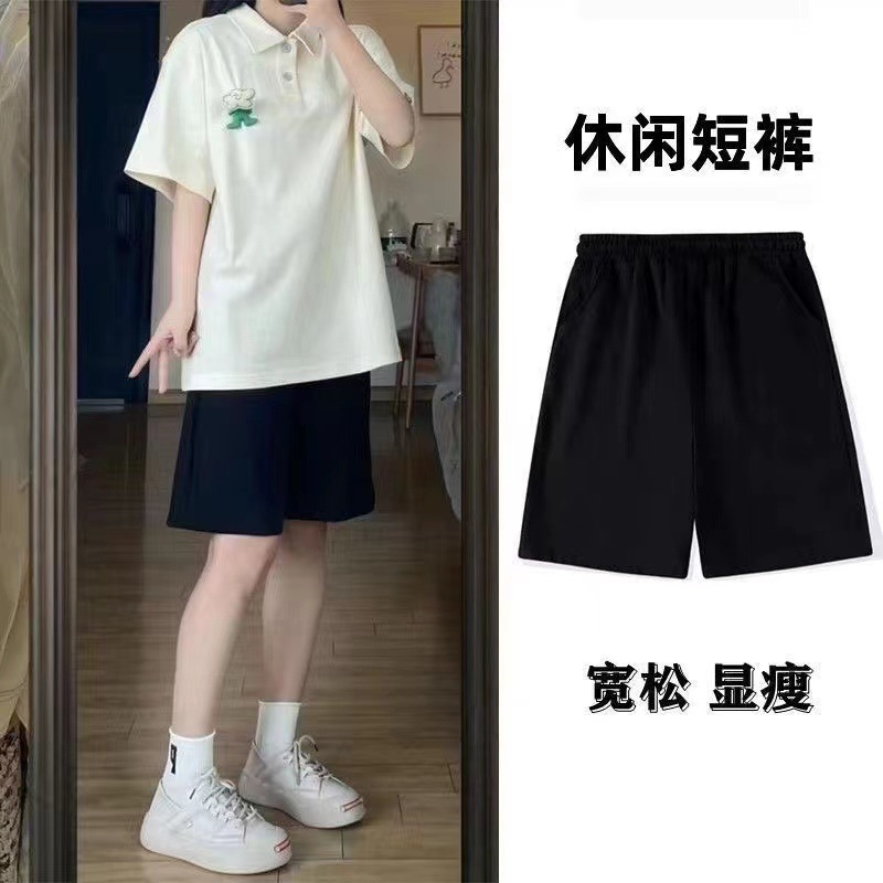 블랙 반바지 여자 여름 얇은 2025 새로운 도착 느슨한 높은 허리 스트레이트 캐주얼 와이드 다리 스포츠 바지