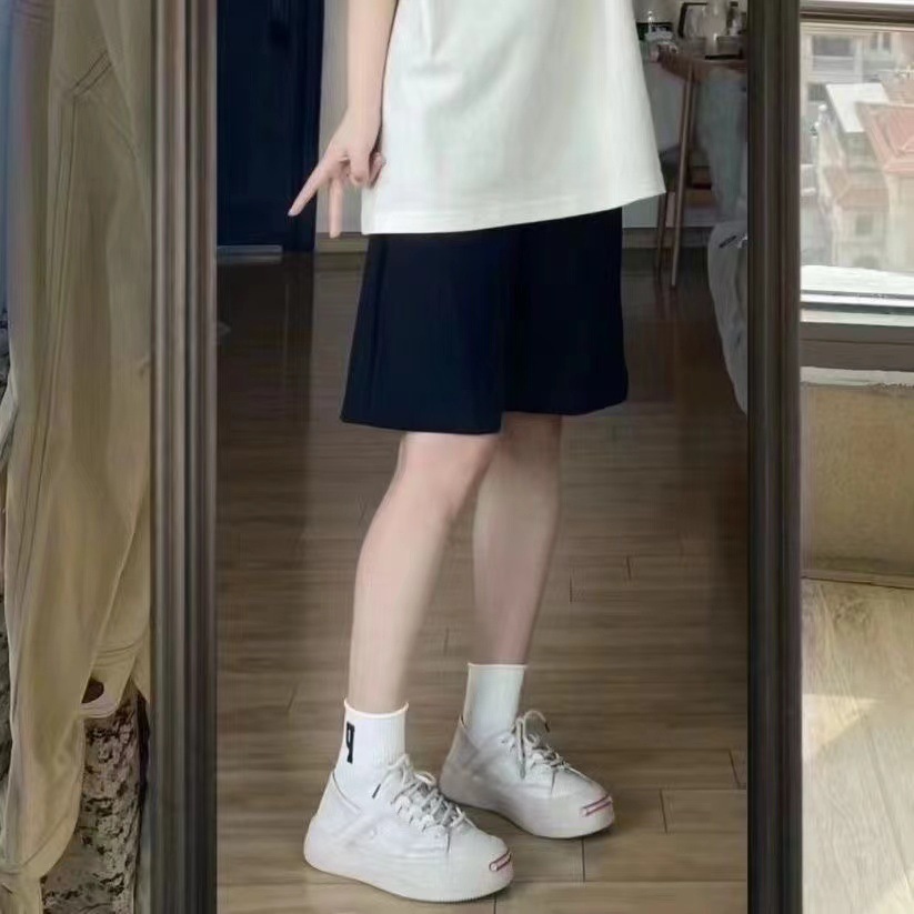 블랙 반바지 여자 여름 얇은 2025 새로운 도착 느슨한 높은 허리 스트레이트 캐주얼 와이드 다리 스포츠 바지스토어 가기