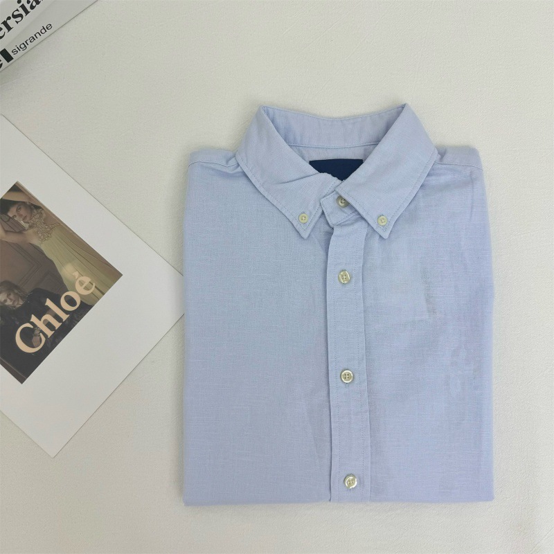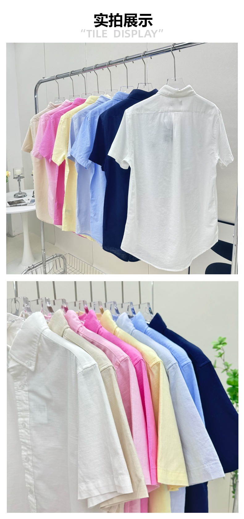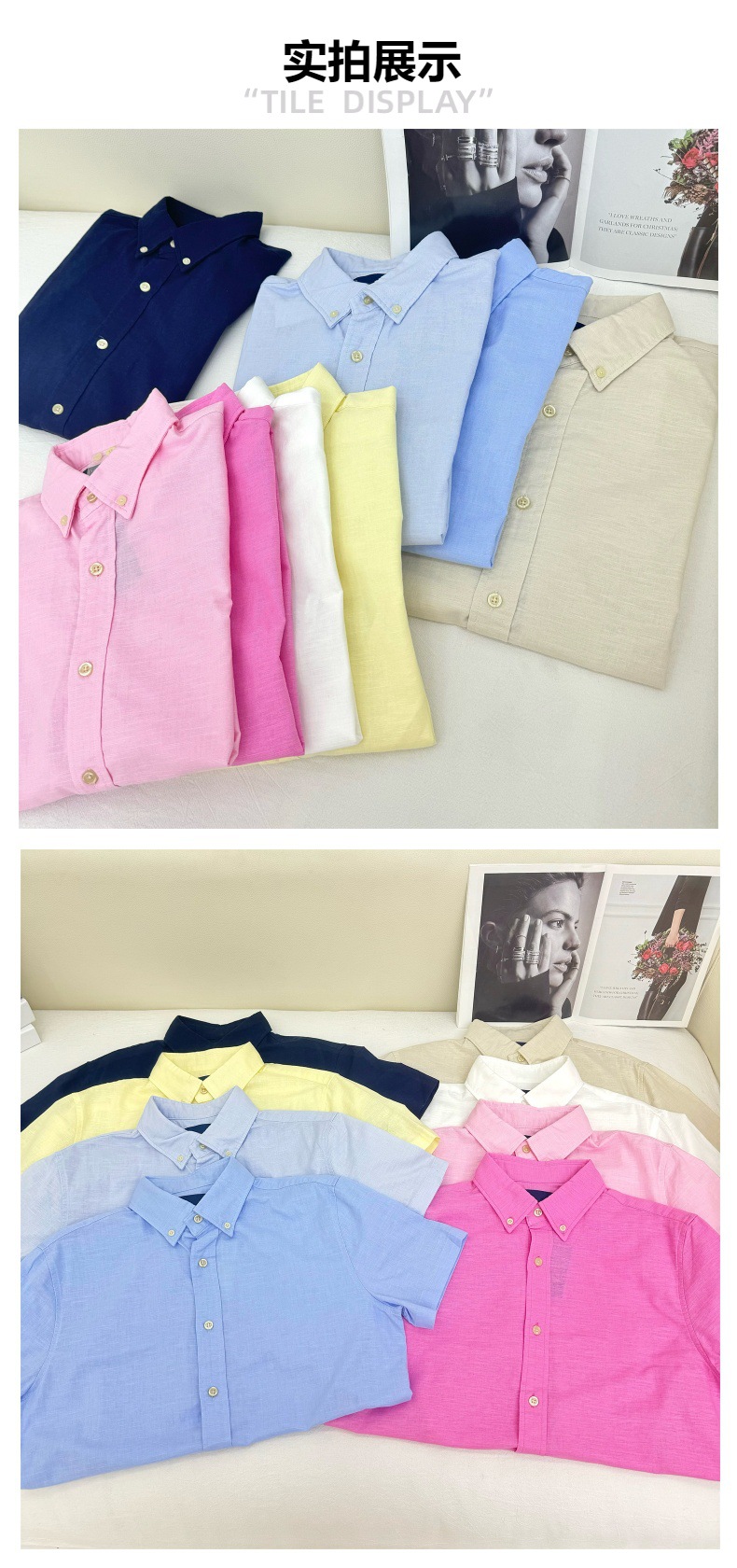 RL 랄프 포니 수놓은 클래식 린넨 반팔 셔츠 여름 남성과 여성을위한 느슨한스토어 가기