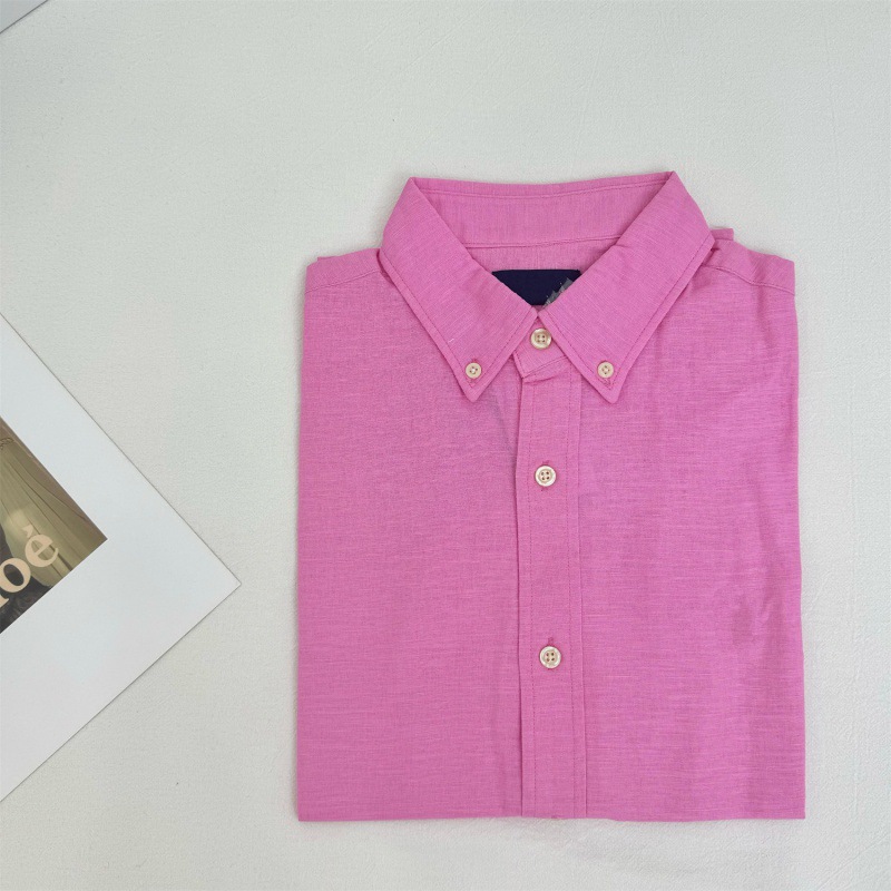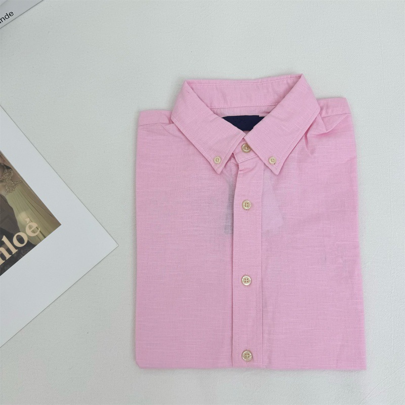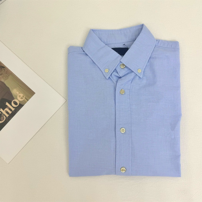 RL 랄프 포니 수놓은 클래식 린넨 반팔 셔츠 여름 남성과 여성을위한 느슨한