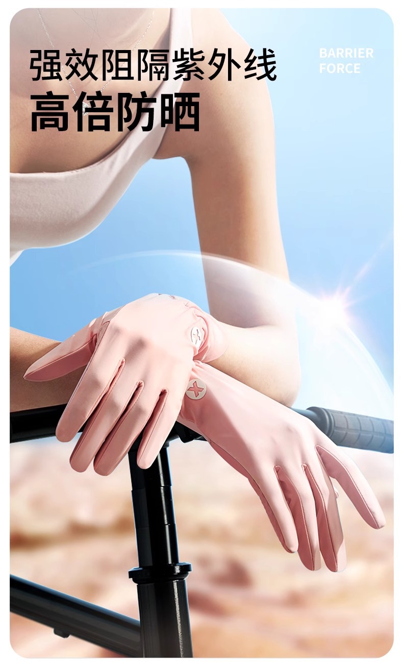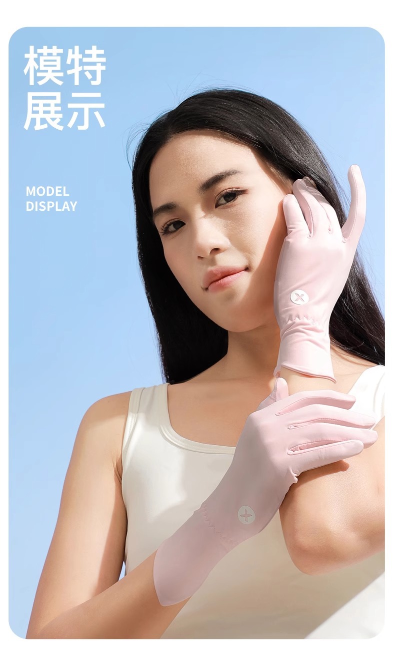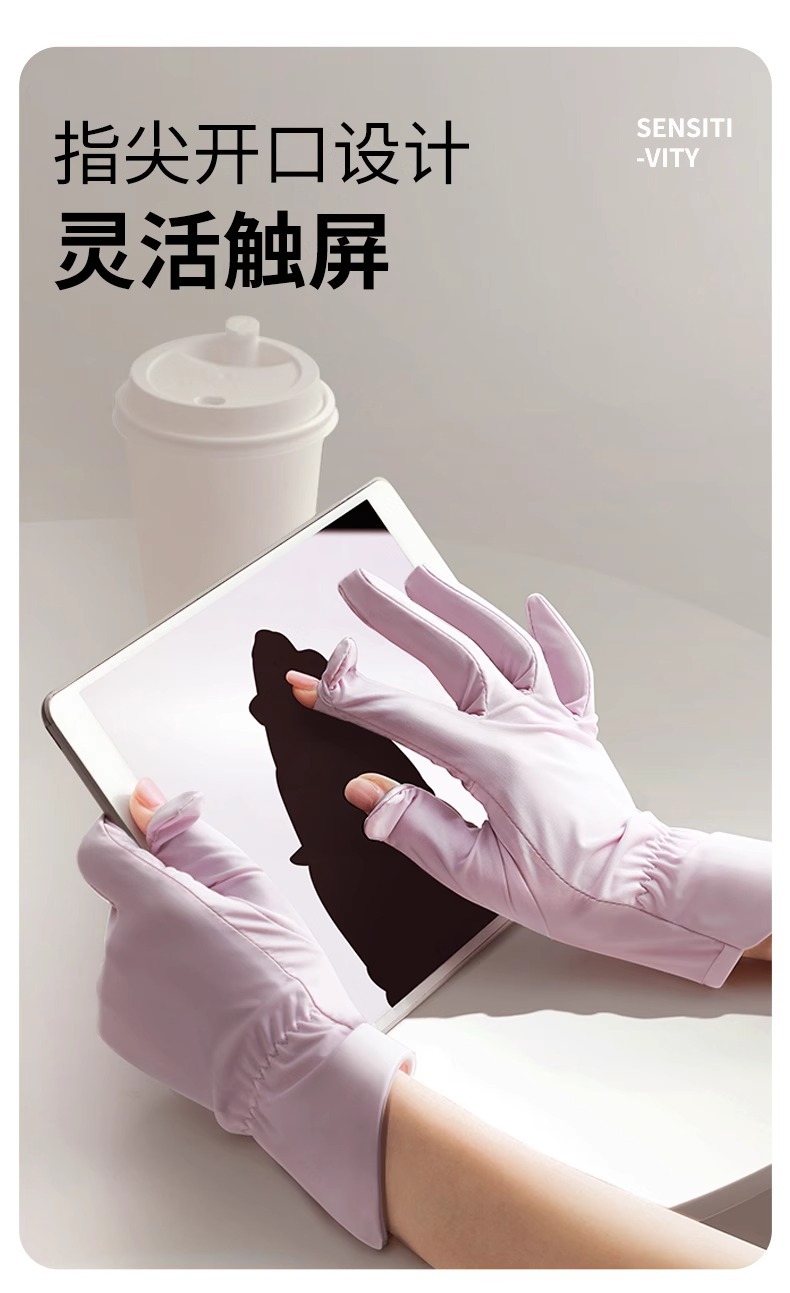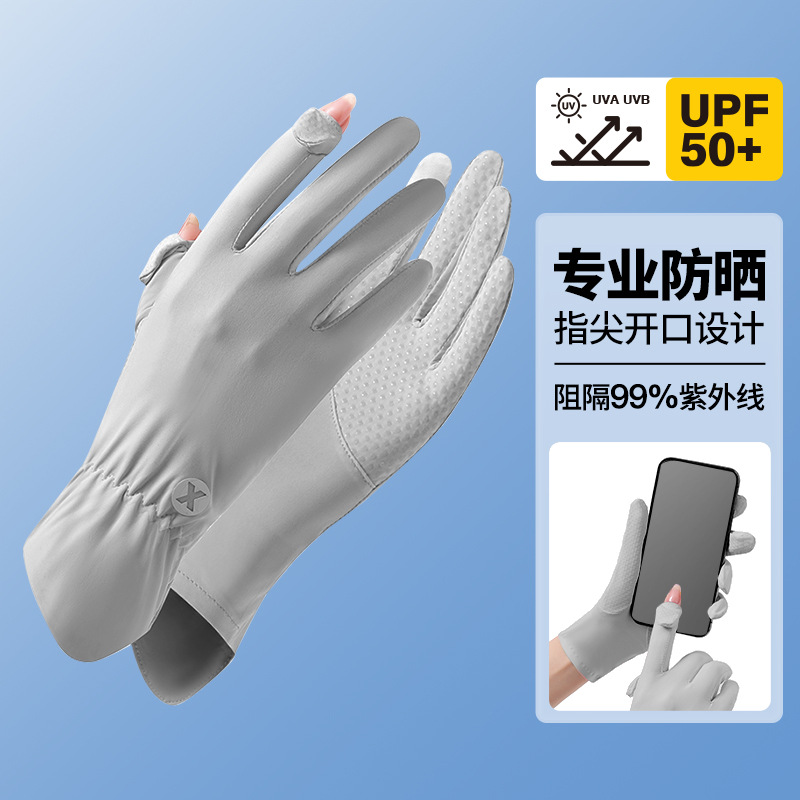 선스크린 장갑 여름 여성의 야외 자외선 방지 미끄럼 방지 두 손가락 얇은 운전 터치 스크린 쿨 아이스 실크 장갑