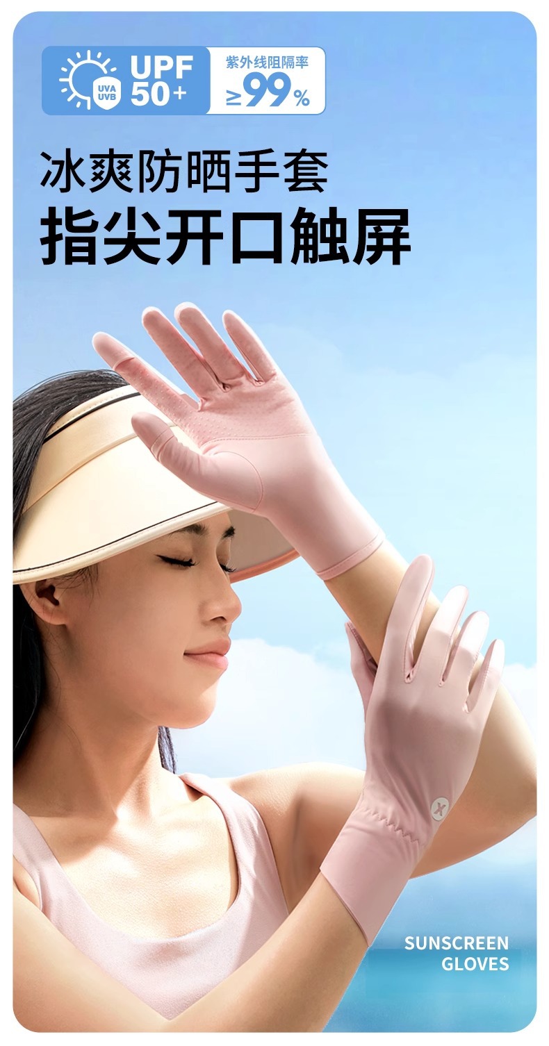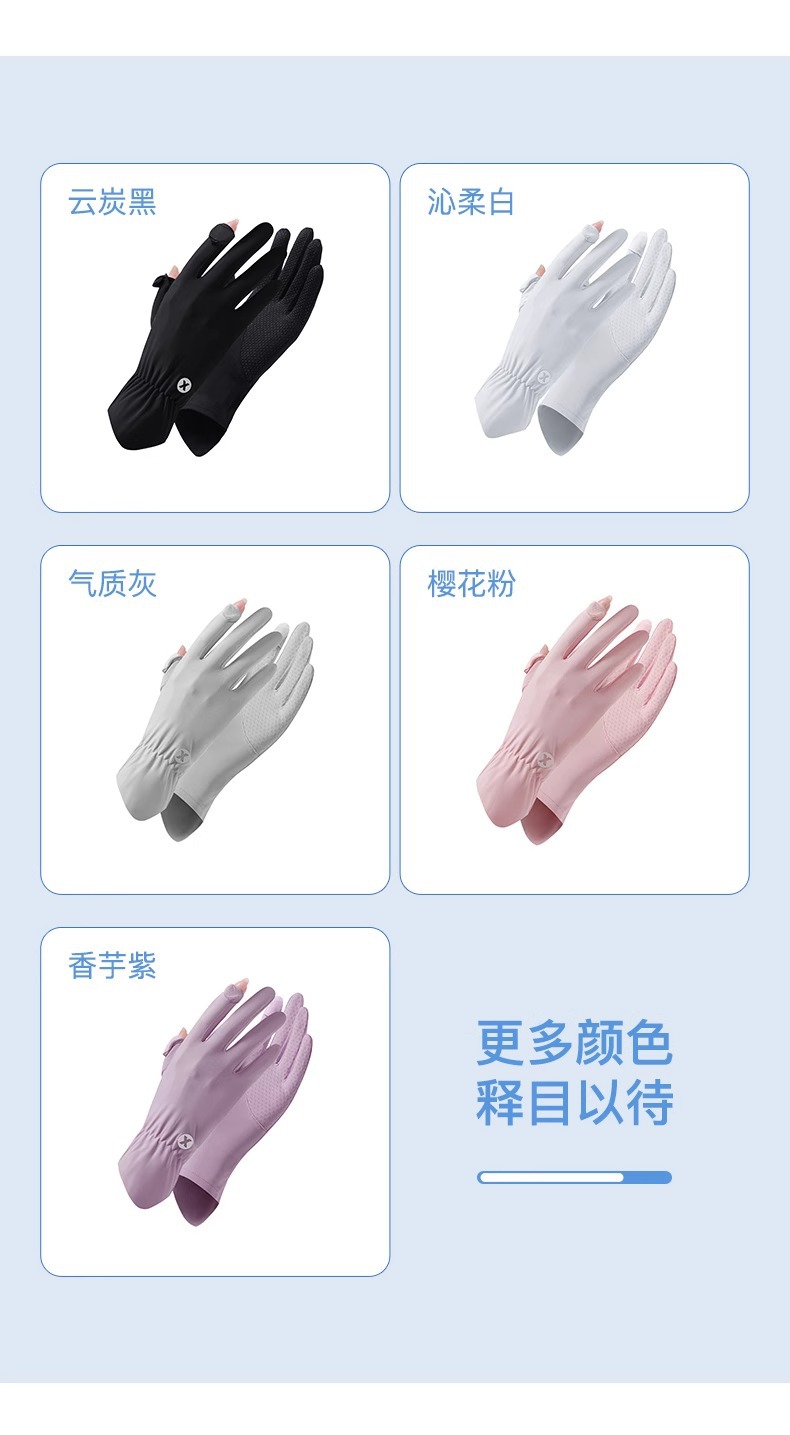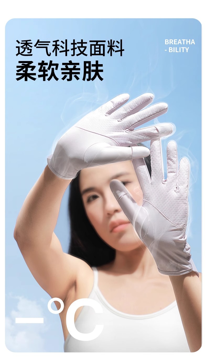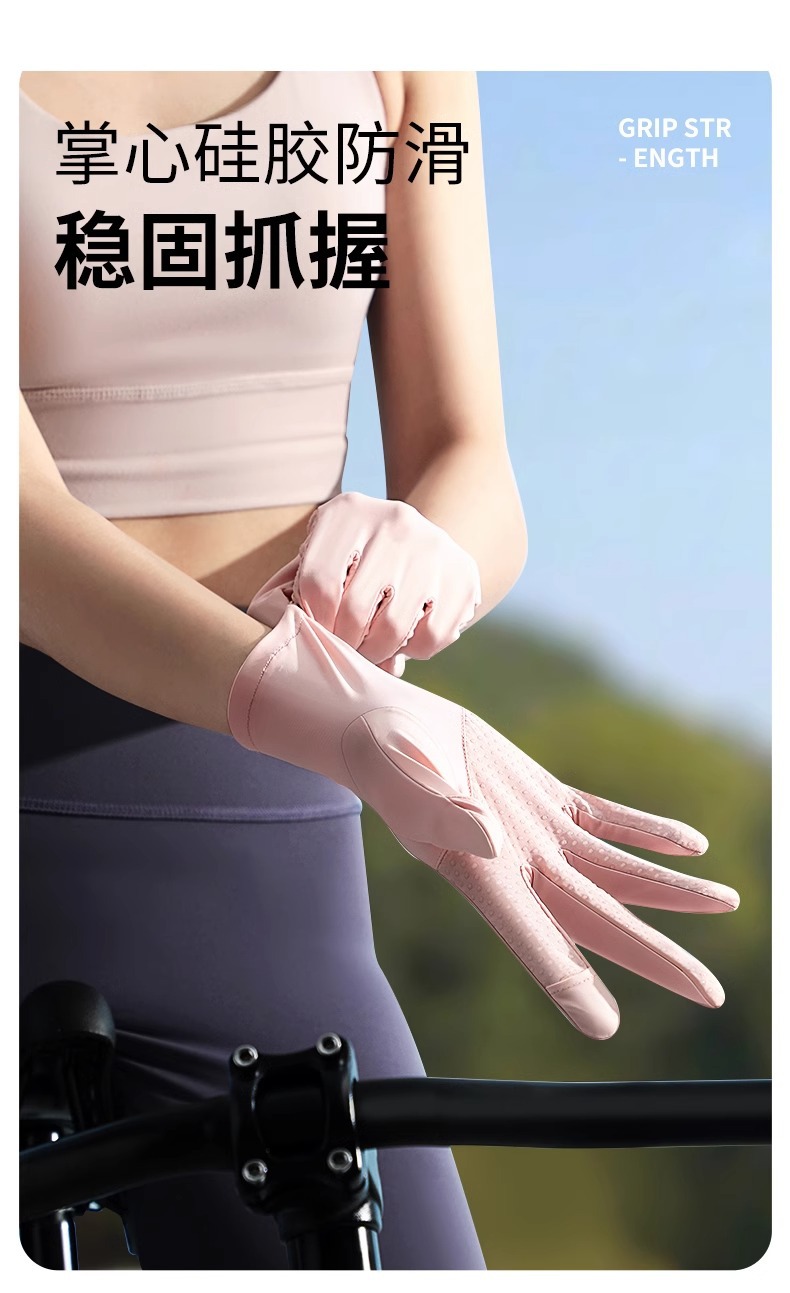 선스크린 장갑 여름 여성의 야외 자외선 방지 미끄럼 방지 두 손가락 얇은 운전 터치 스크린 쿨 아이스 실크 장갑
