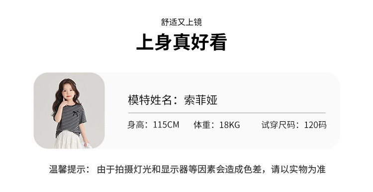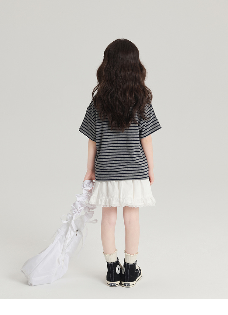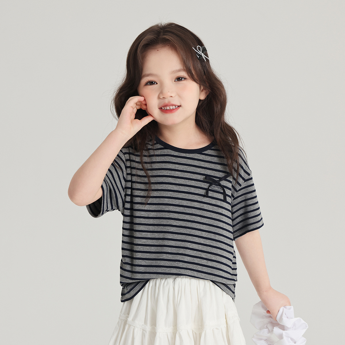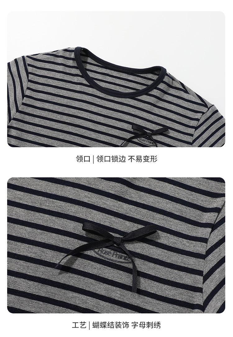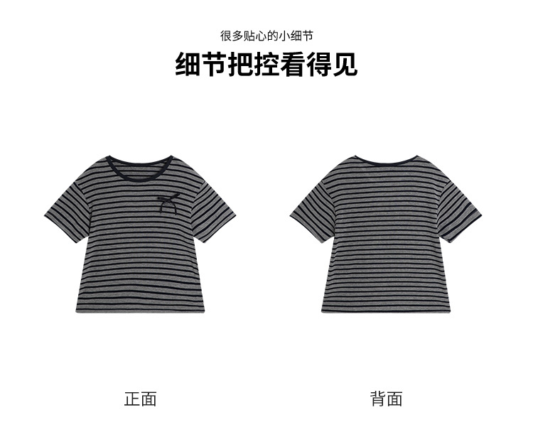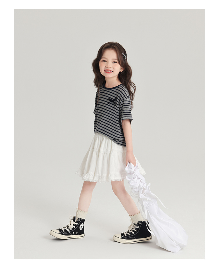 푸딩하루 아동복 티셔츠 2026 신상 여아 리본 스트라이프 반팔 티셔츠 귀엽고 다용도로 활용 가능한 라운드넥 반팔 상의